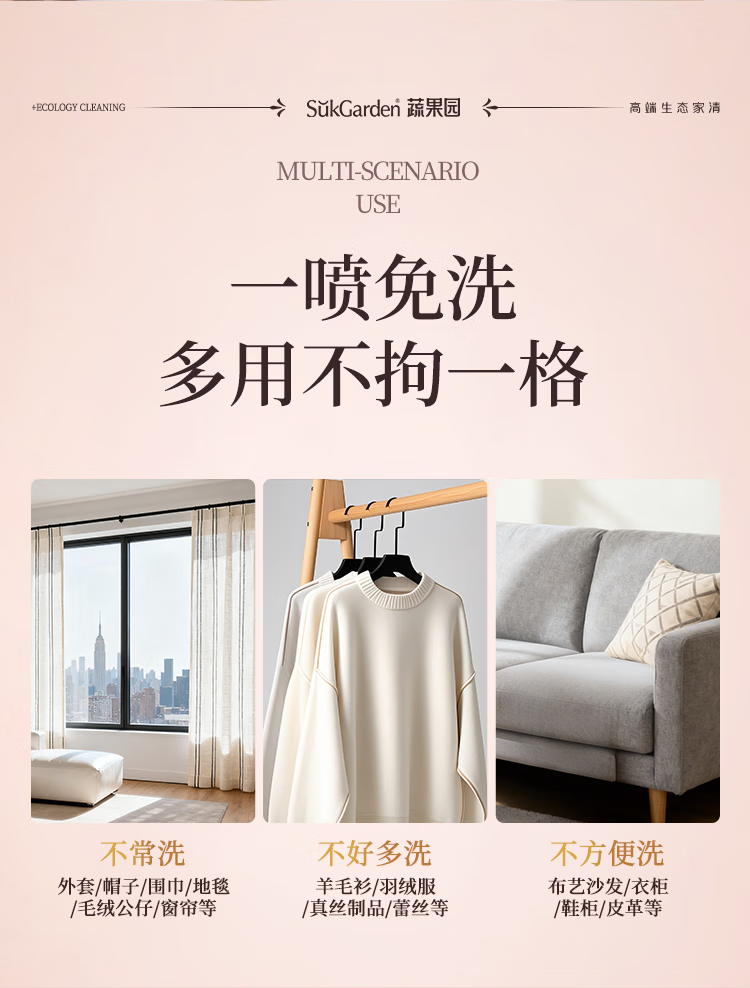 净狮(CLEALION)羽绒服清洗剂水洗蓬松衣服布艺沙发窗帘去污去油去渍温和不刺激 3瓶 600ml*3