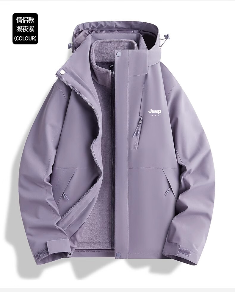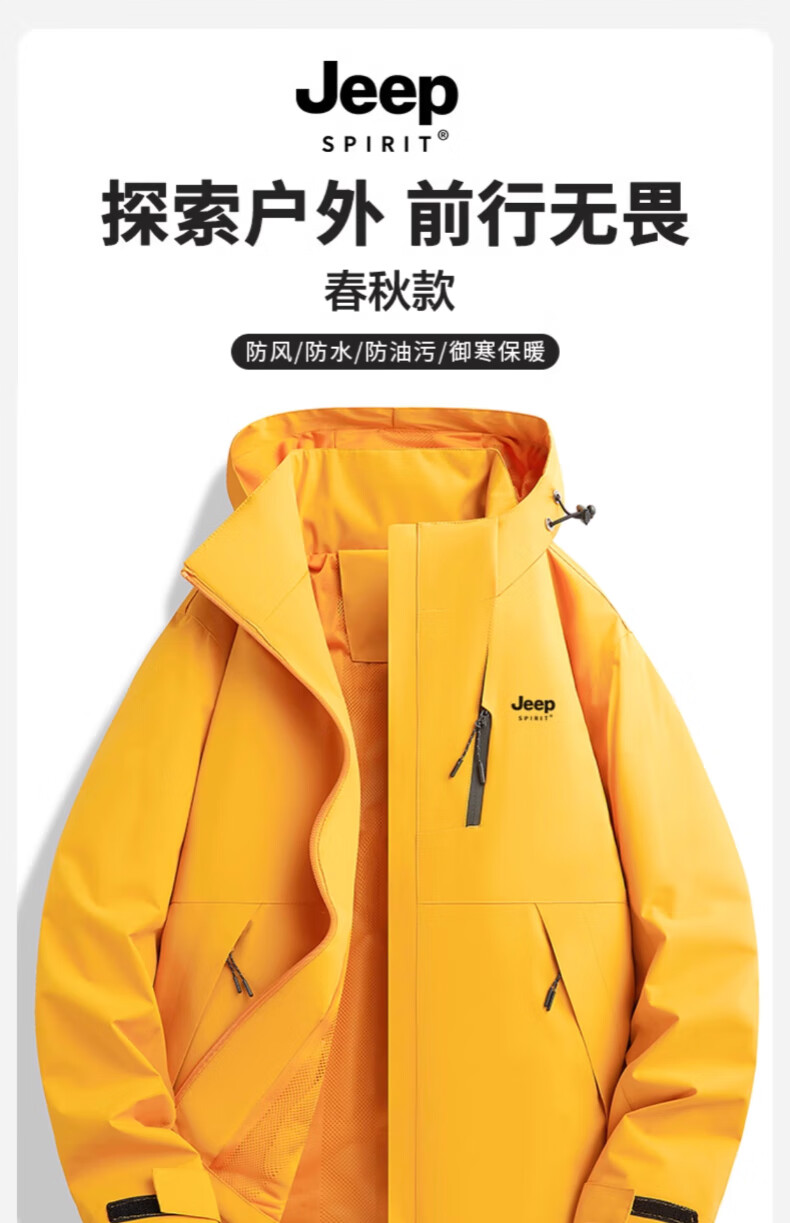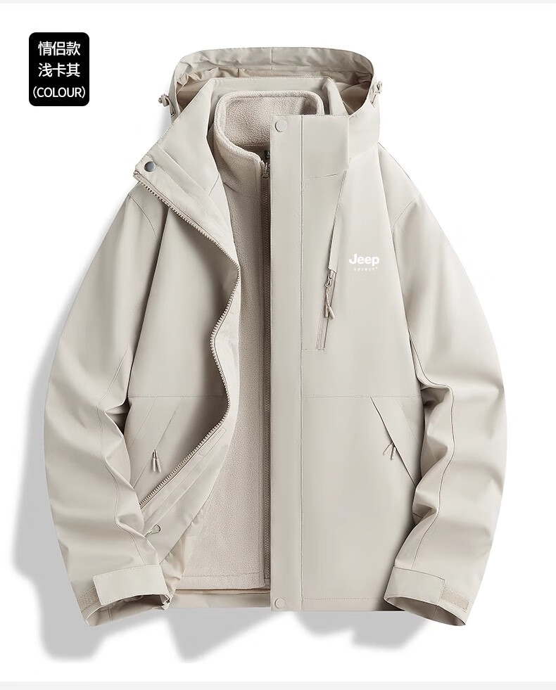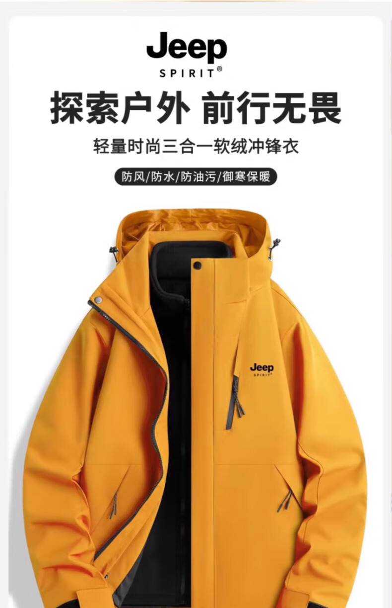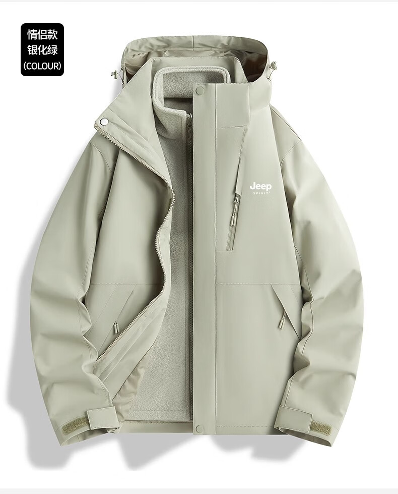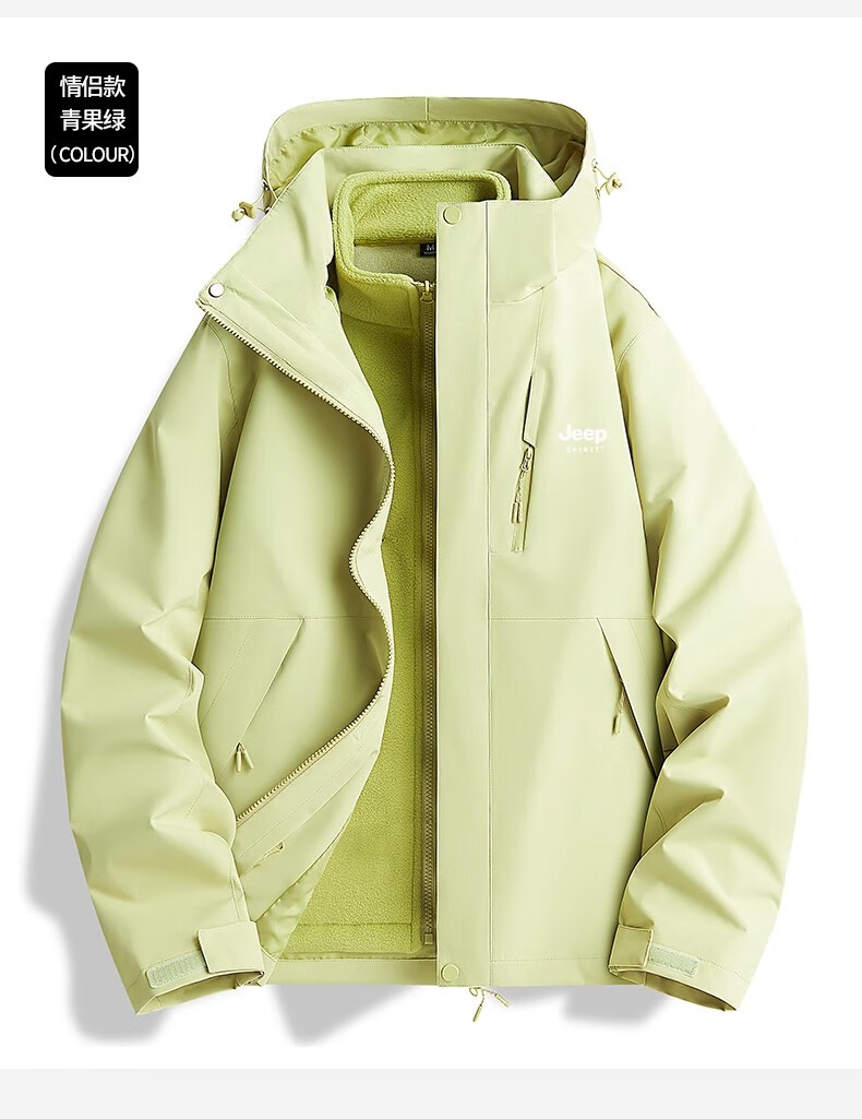JEEP SPIRIT吉普冲锋衣男女春秋新款户外软壳防风防水三合一登山服情侣外套 男女同款丨青果绿丨 可拆卸抓绒内胆 L「95-120斤」