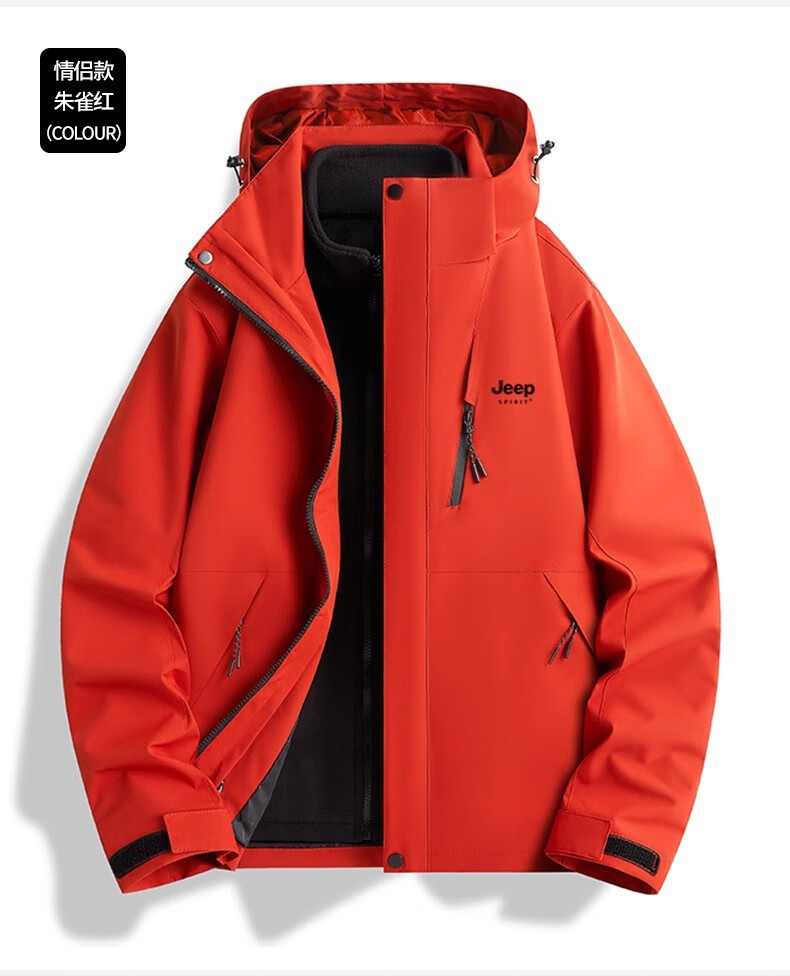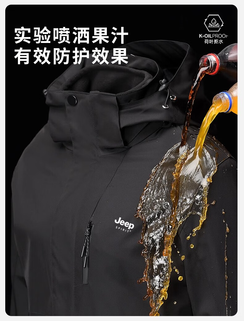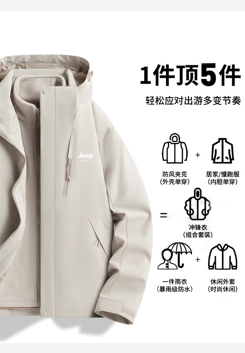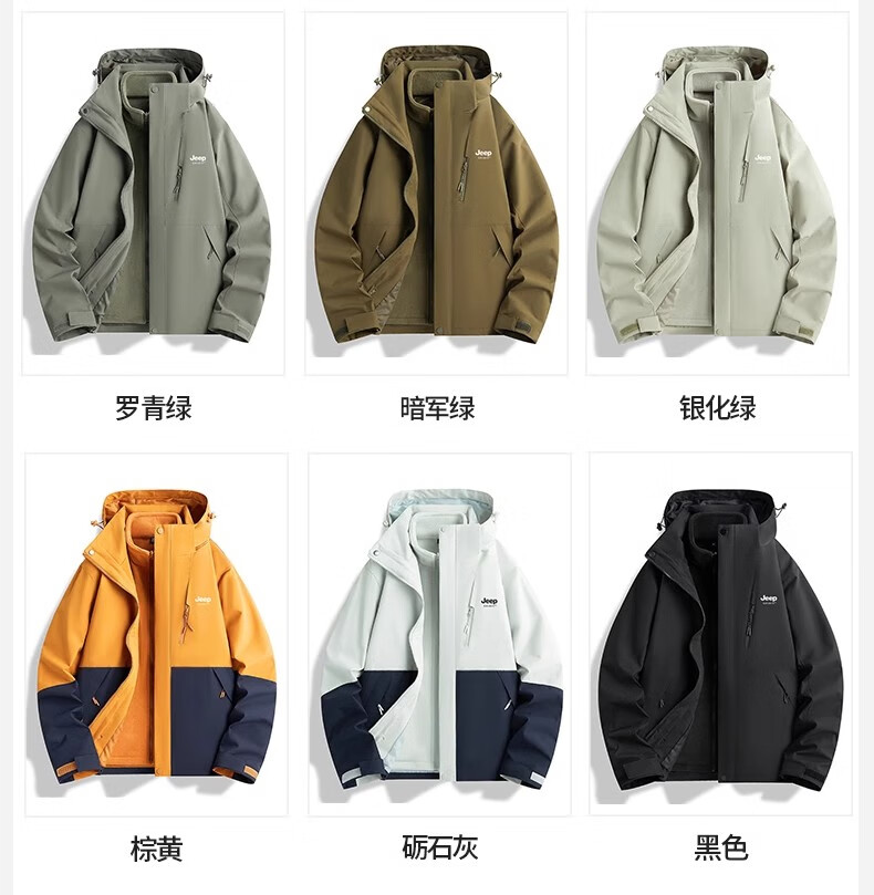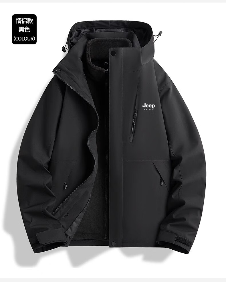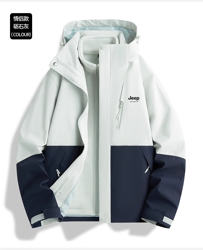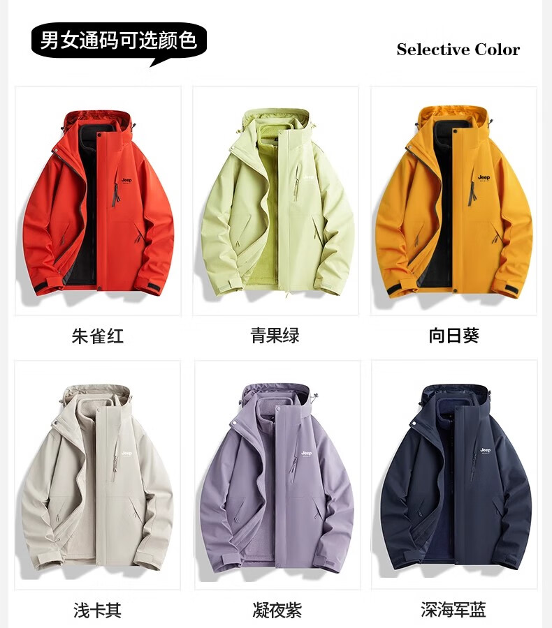 JEEP SPIRIT吉普冲锋衣男女春秋新款户外软壳防风防水三合一登山服情侣外套 男女同款丨青果绿丨 可拆卸抓绒内胆 L「95-120斤」