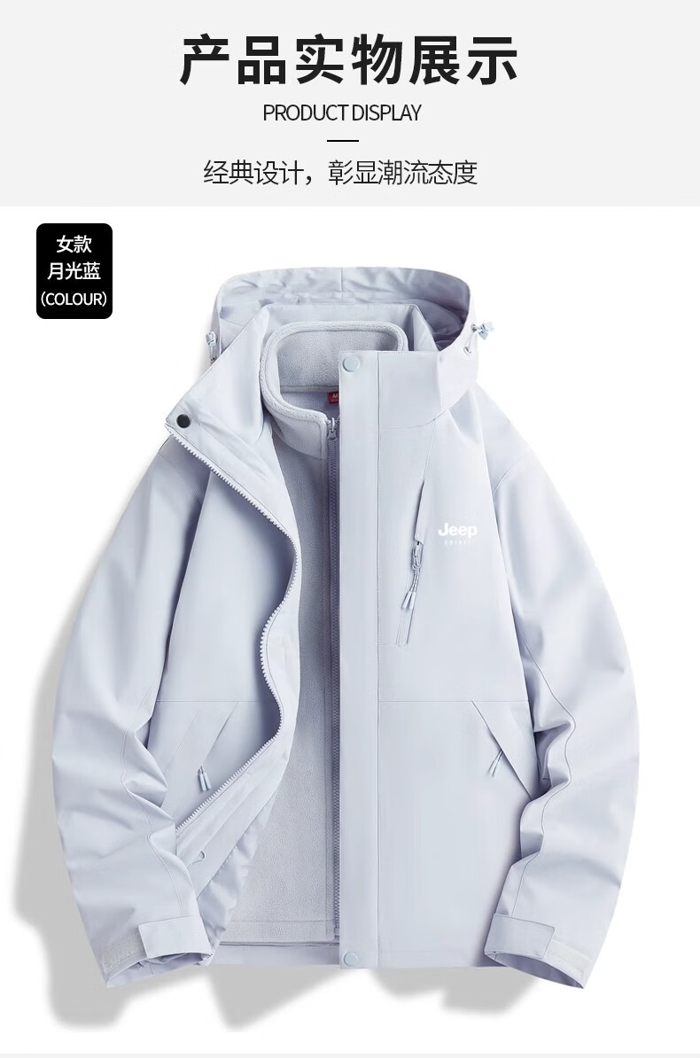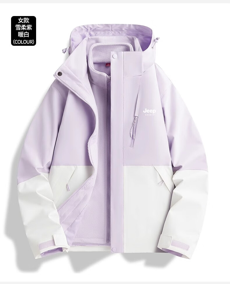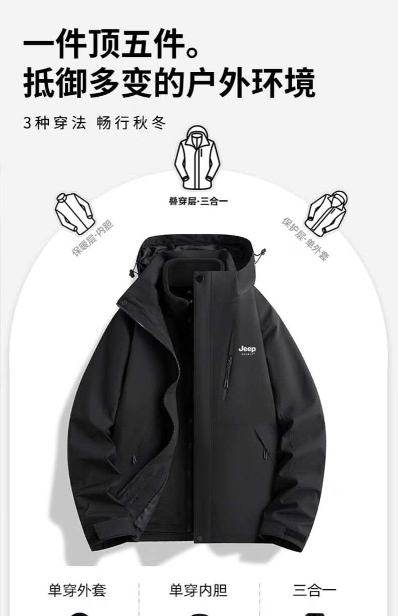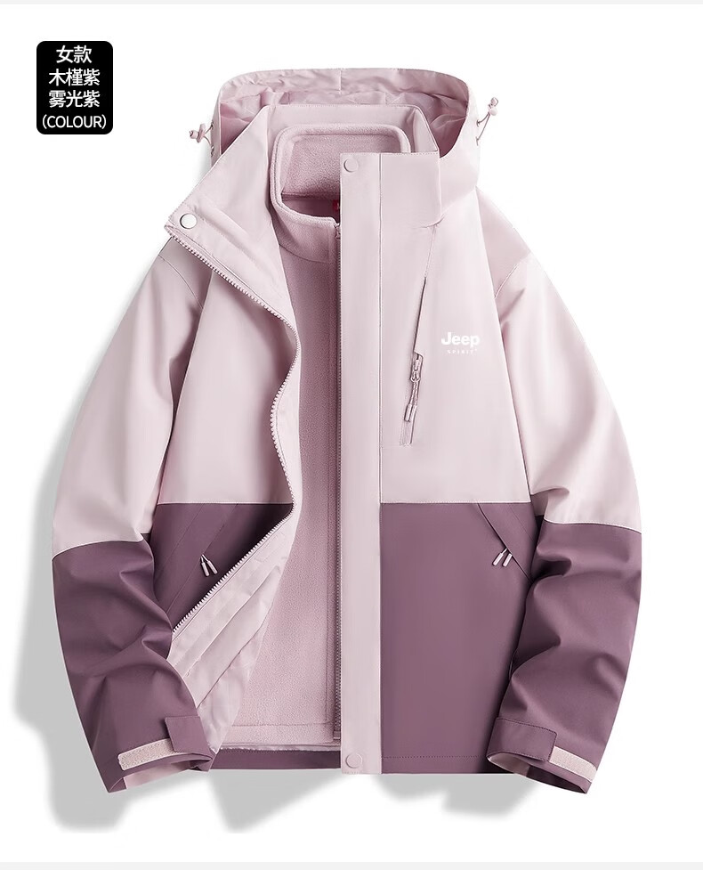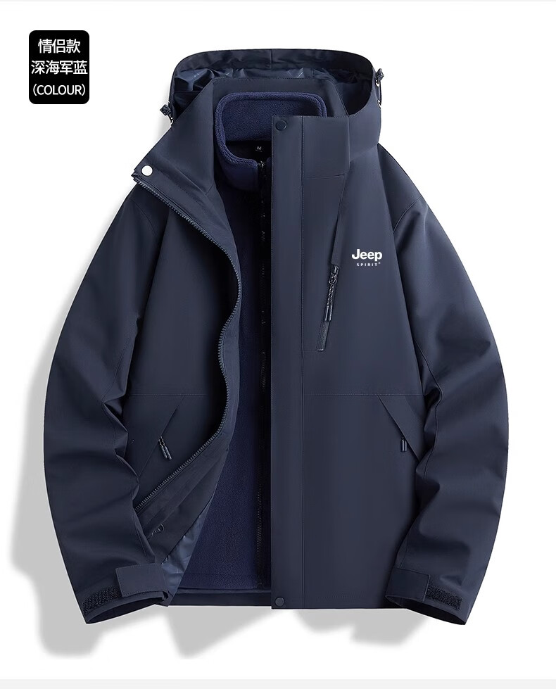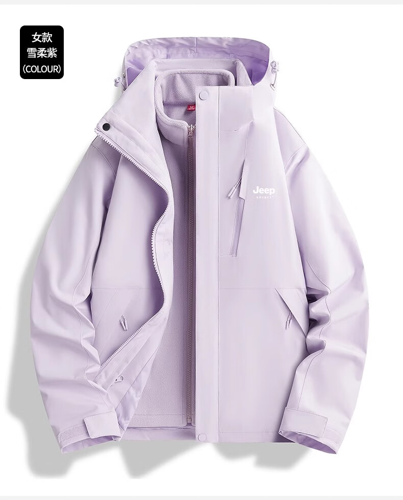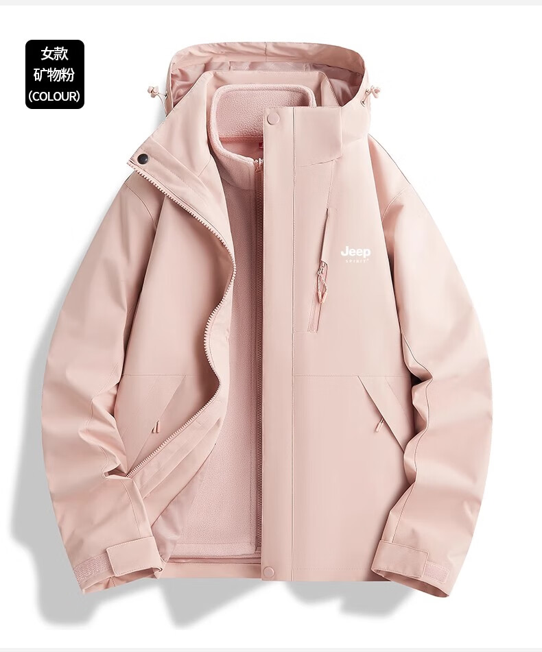 JEEP SPIRIT吉普冲锋衣男女春秋新款户外软壳防风防水三合一登山服情侣外套 男女同款丨青果绿丨 可拆卸抓绒内胆 L「95-120斤」