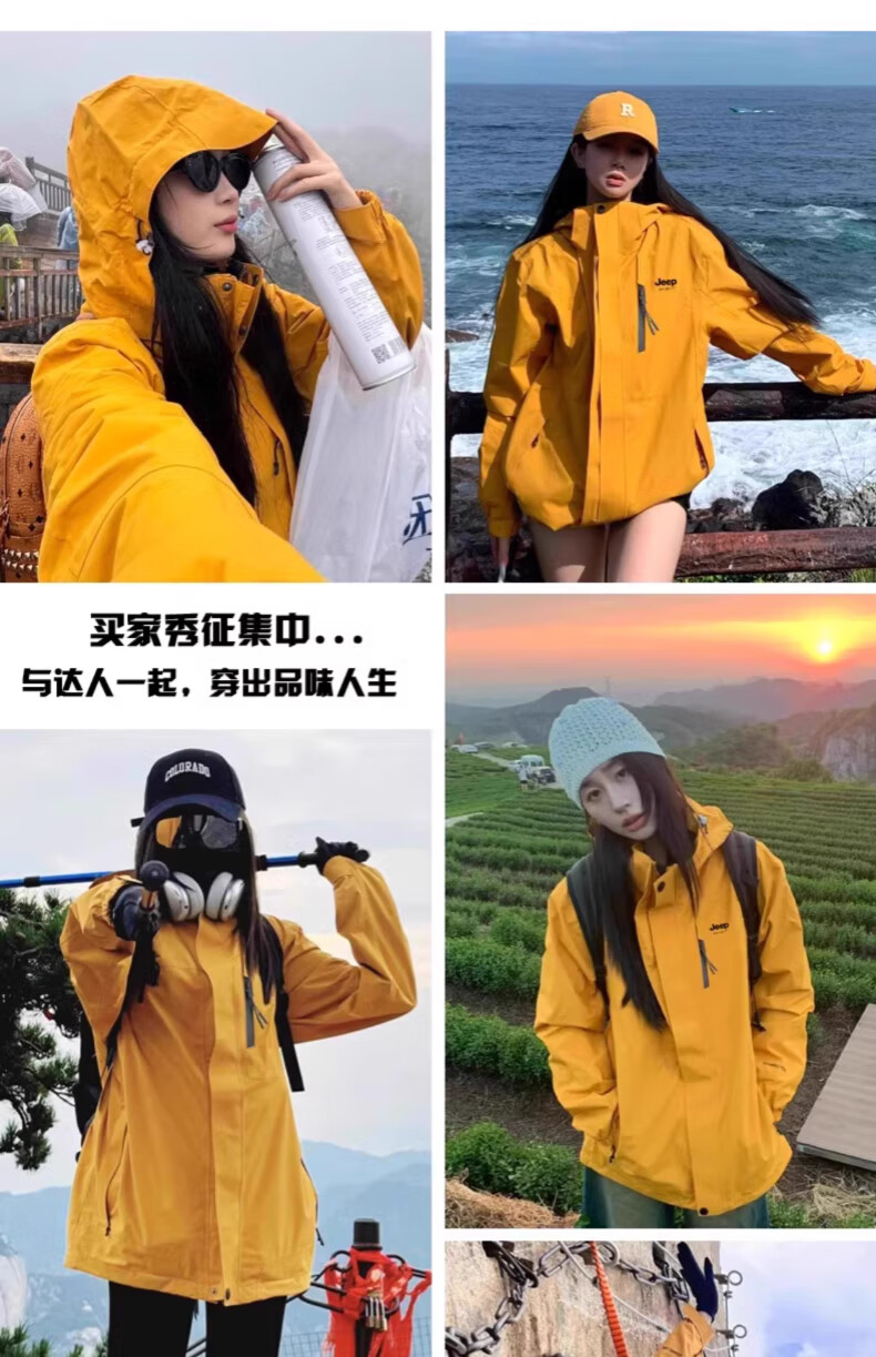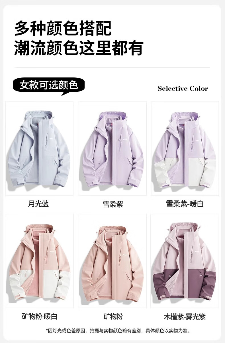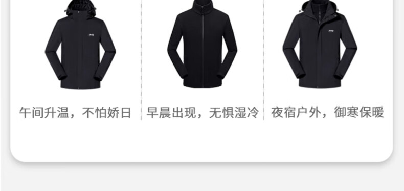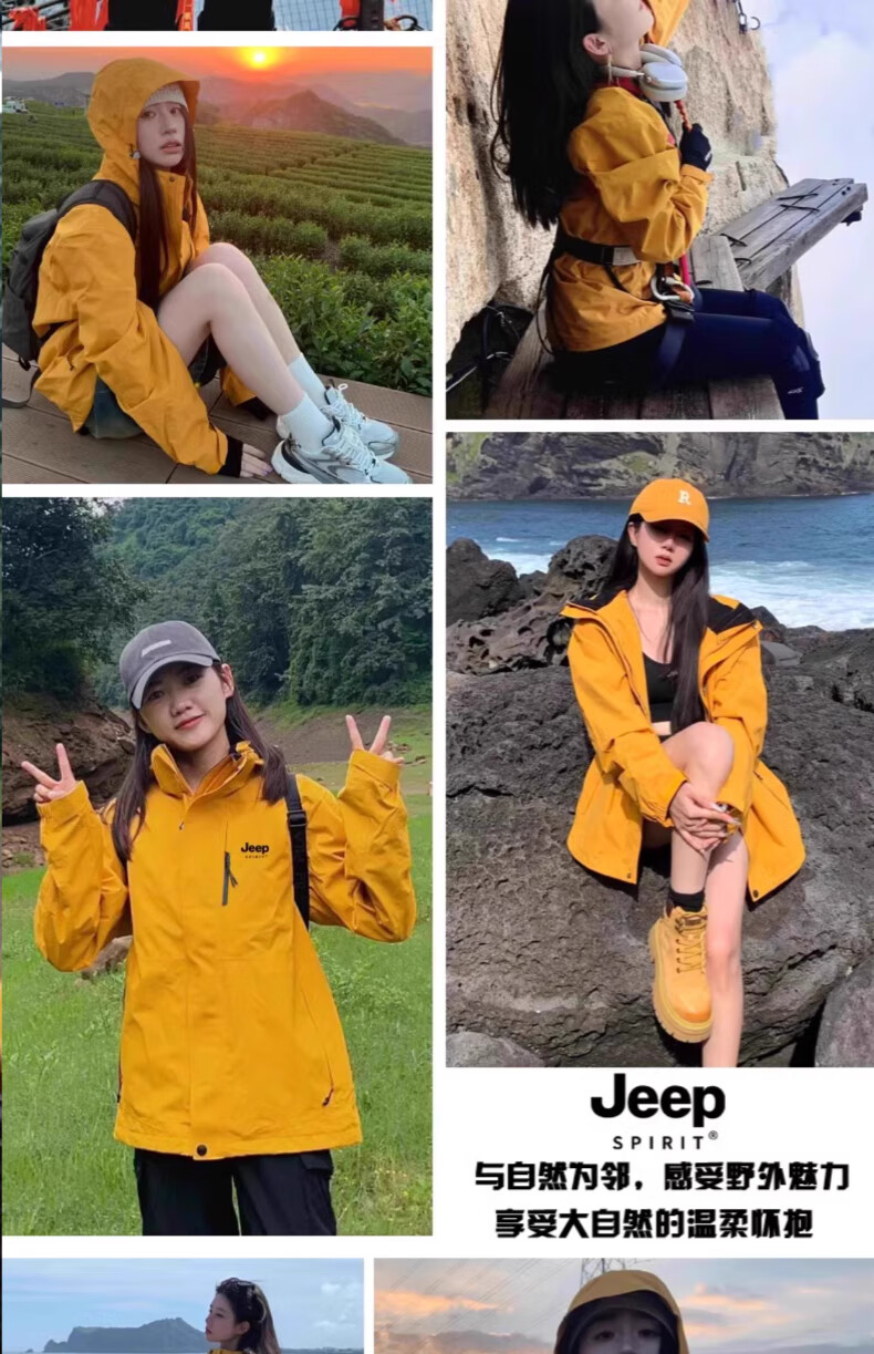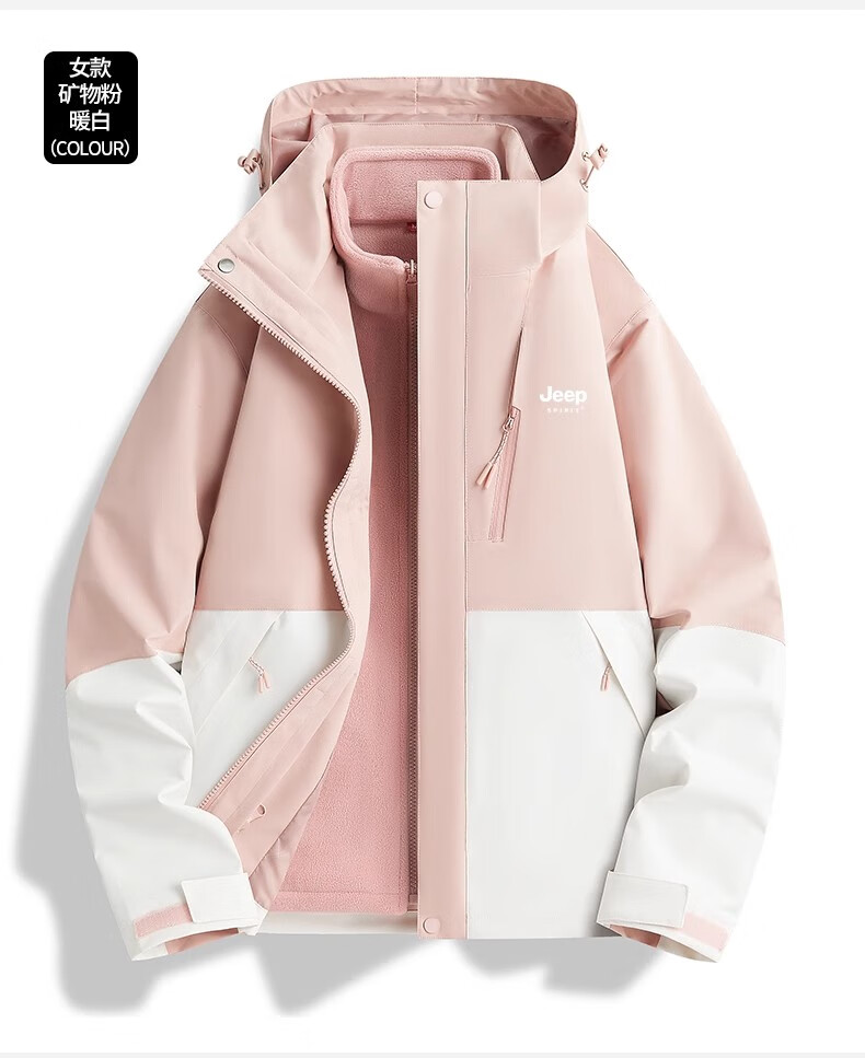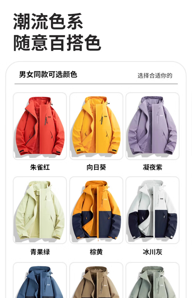 JEEP SPIRIT吉普冲锋衣男女春秋新款户外软壳防风防水三合一登山服情侣外套 男女同款丨青果绿丨 可拆卸抓绒内胆 L「95-120斤」