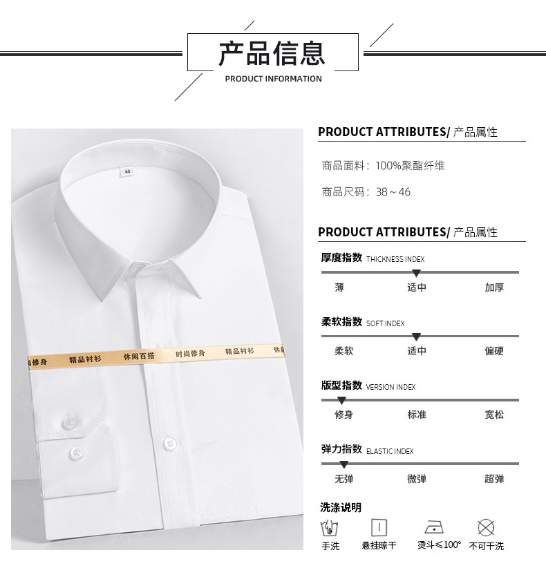卡柏奇商务衬衫男长袖配西装衫男式职业工装衬衣证件照白衬衫 白色长袖无袋男款 36