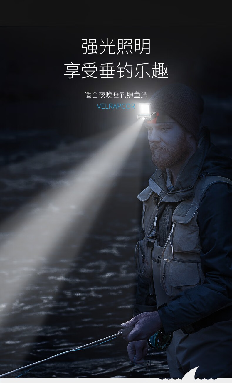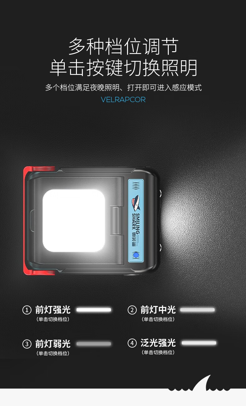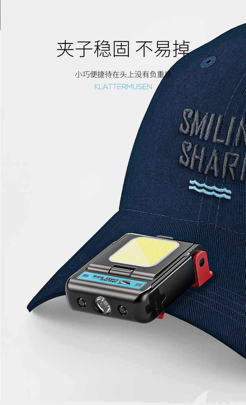 微笑鲨猫头鹰感应头灯夜钓鱼专用充电强光超亮防水上饵夹帽灯帽檐头戴式 标准版【送头灯带挥手感应】