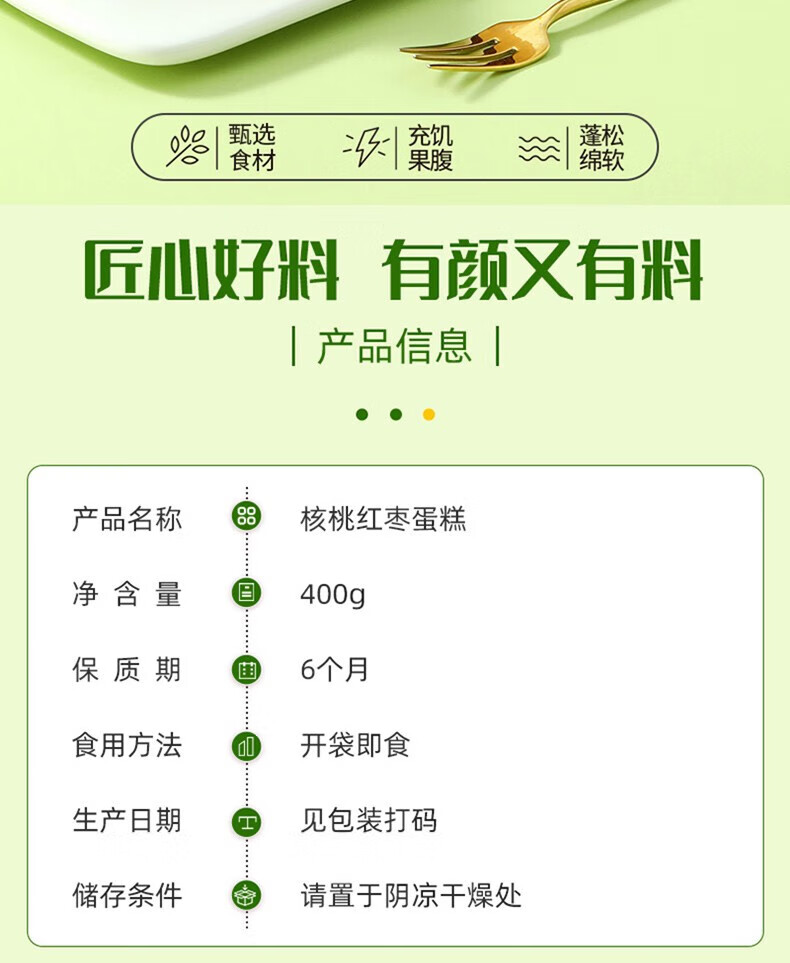 味滋源 核桃红枣蛋糕 红枣面包 营养早餐 传统糕点休闲零食 核桃红枣蛋糕 400g 2箱