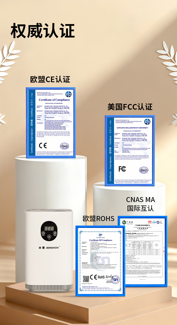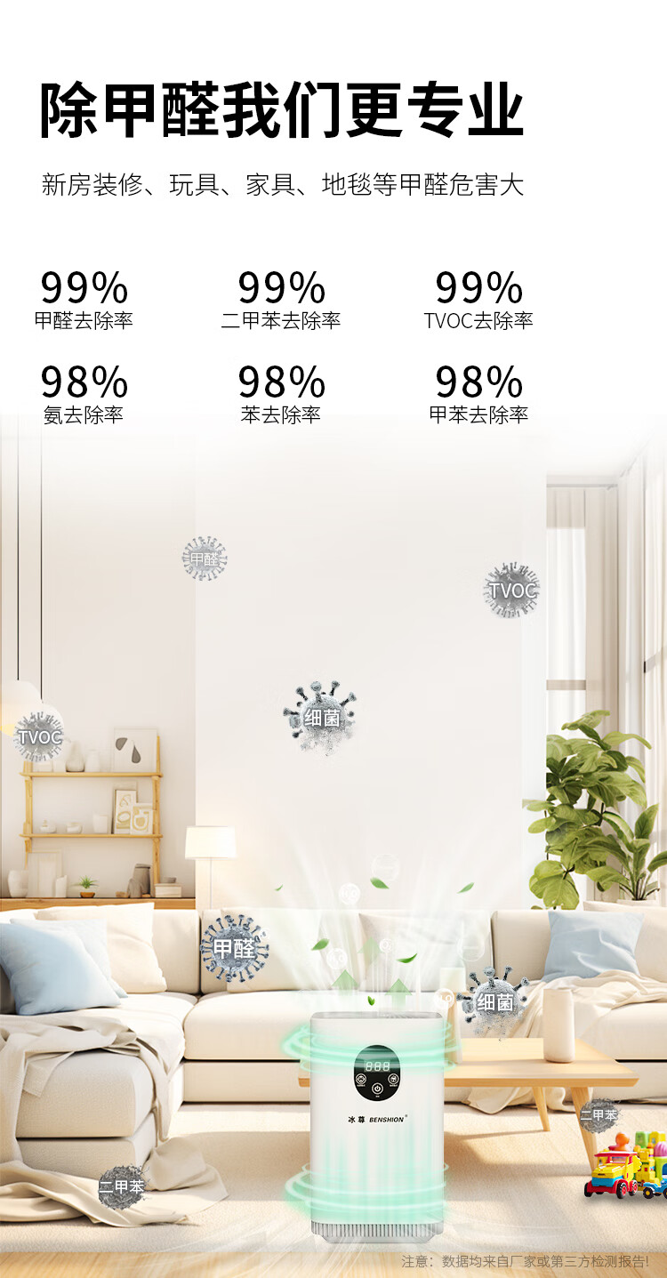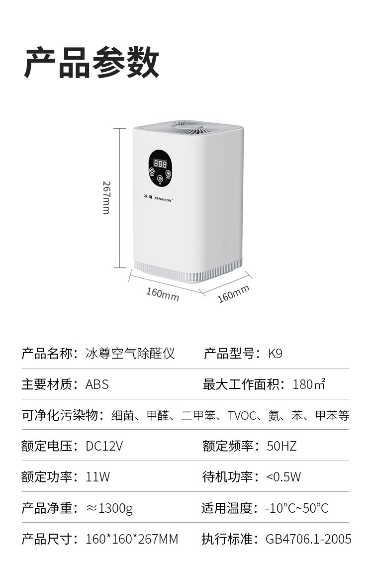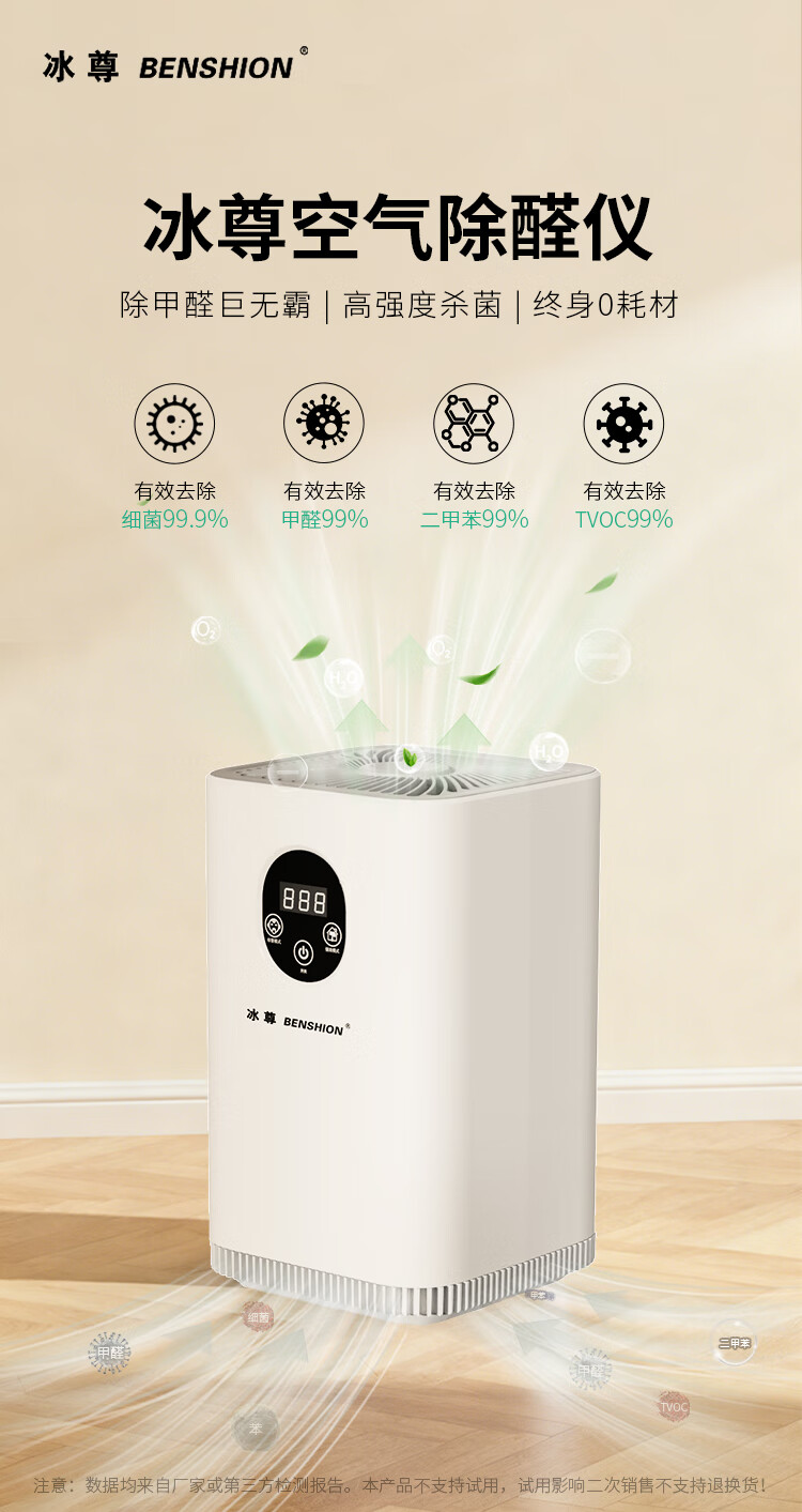 冰尊(BENSHION)空气除醛仪净化器家用除甲醛去除率99%除菌率99.9%终身0耗材TVOC去除率99% 机器标配
