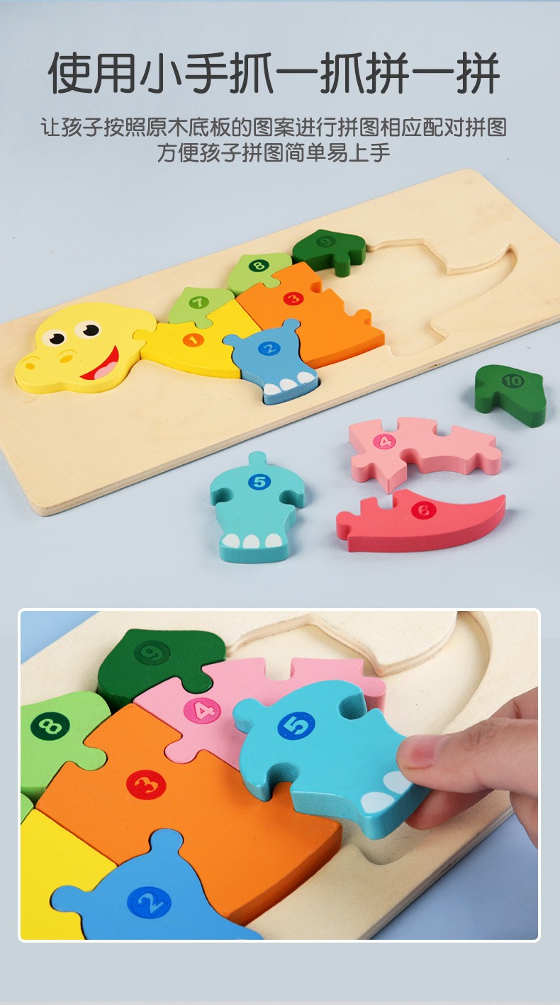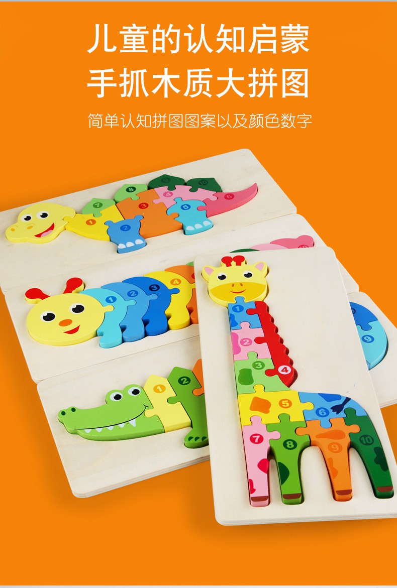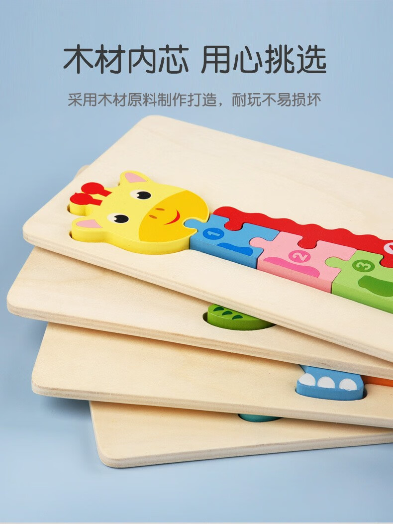 星展 木质立体交通动物人物早教认知拼图拼板玩具儿童拼装积木玩具 木质立体拼板 兔子