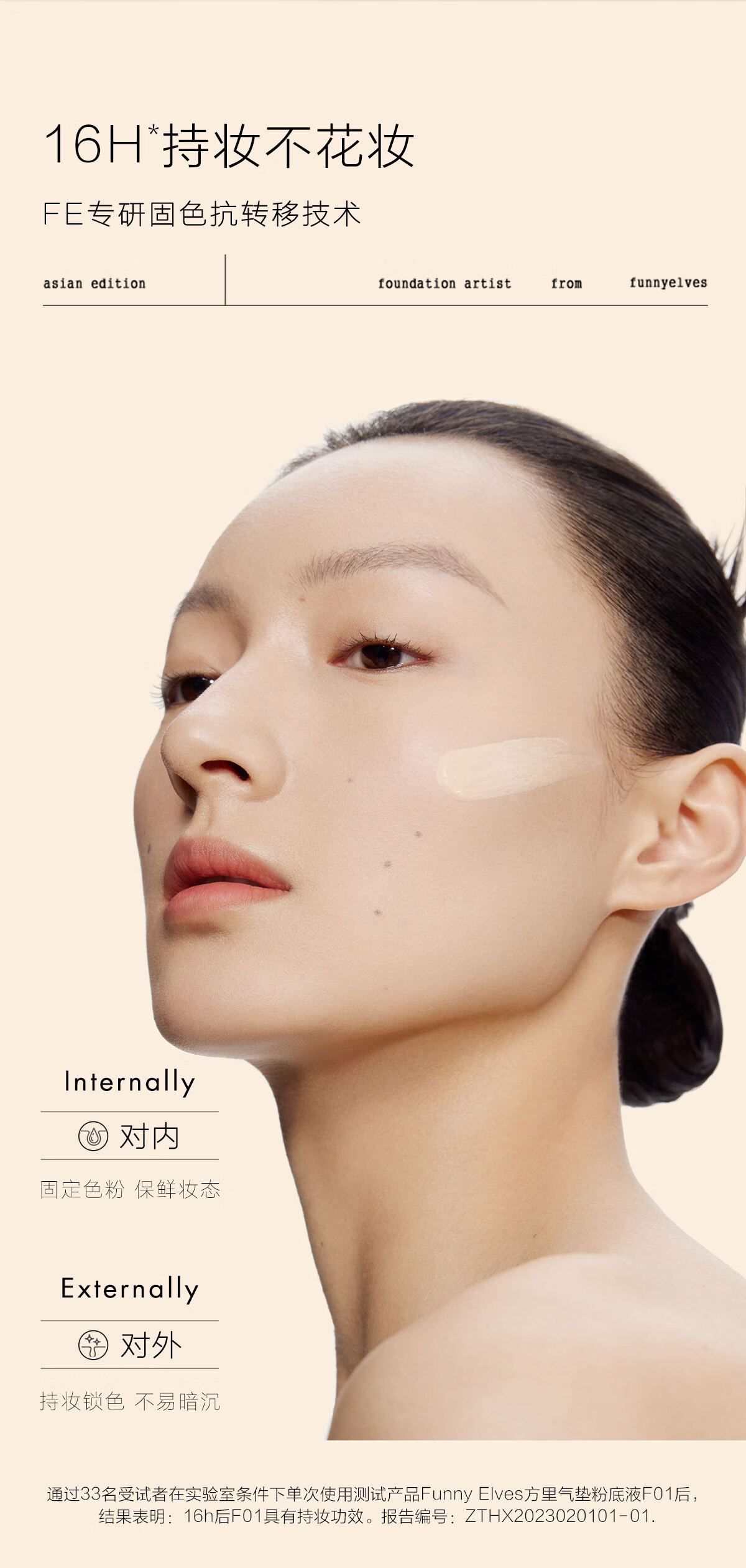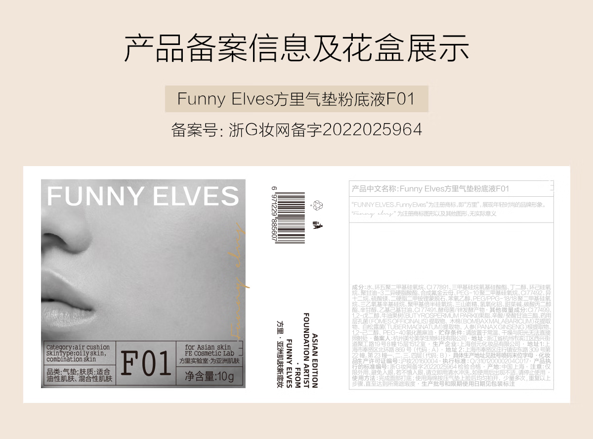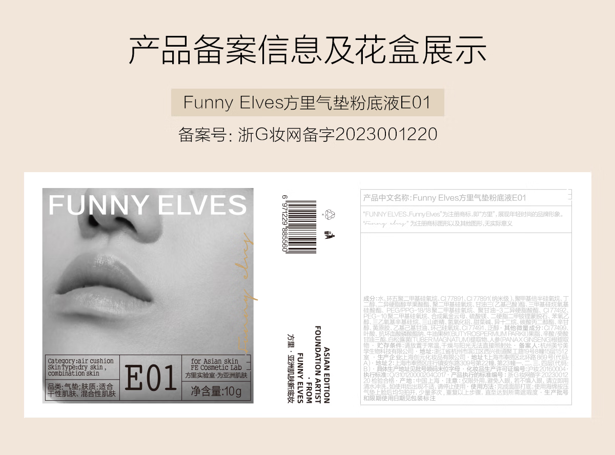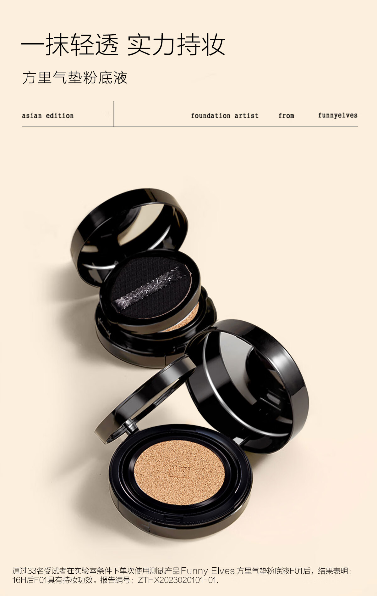 方里(FUNNY ELVES)气垫粉底液 定妆补妆粉底液持久不脱妆 干皮象牙白 10g E01