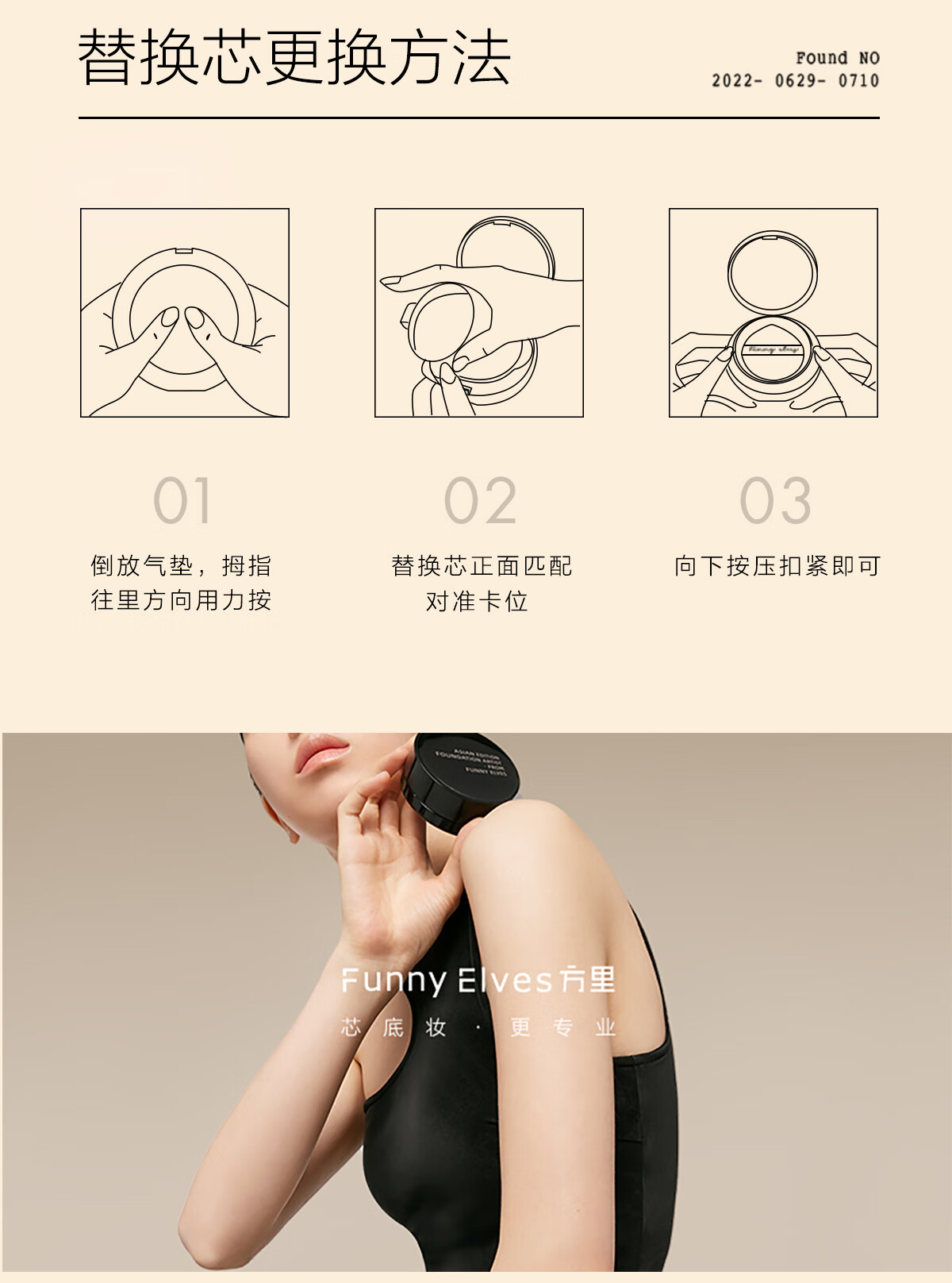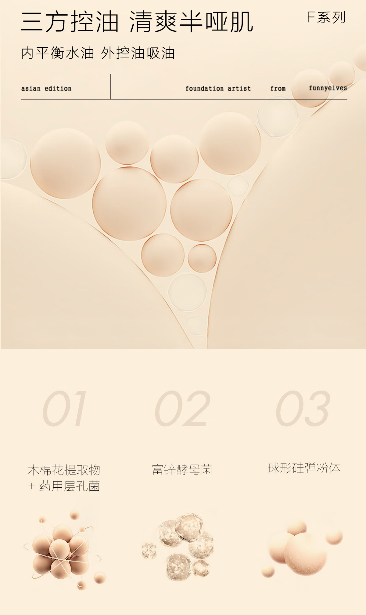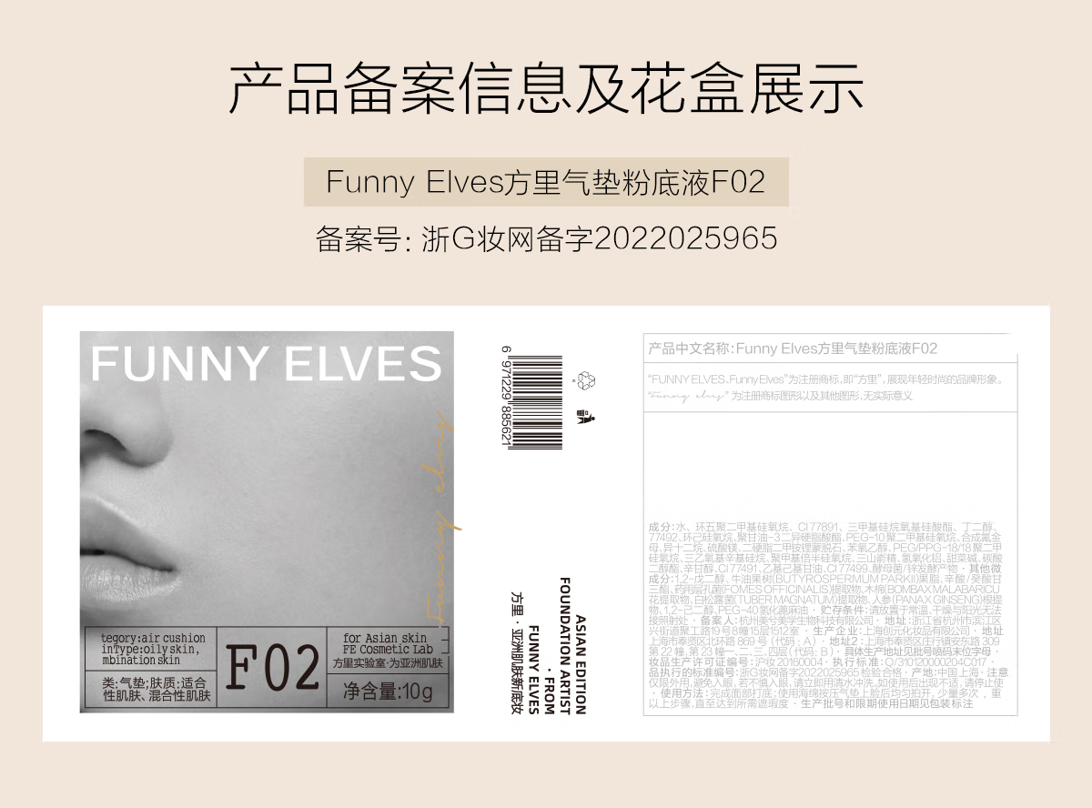 方里(FUNNY ELVES)气垫粉底液 定妆补妆粉底液持久不脱妆 干皮象牙白 10g E01