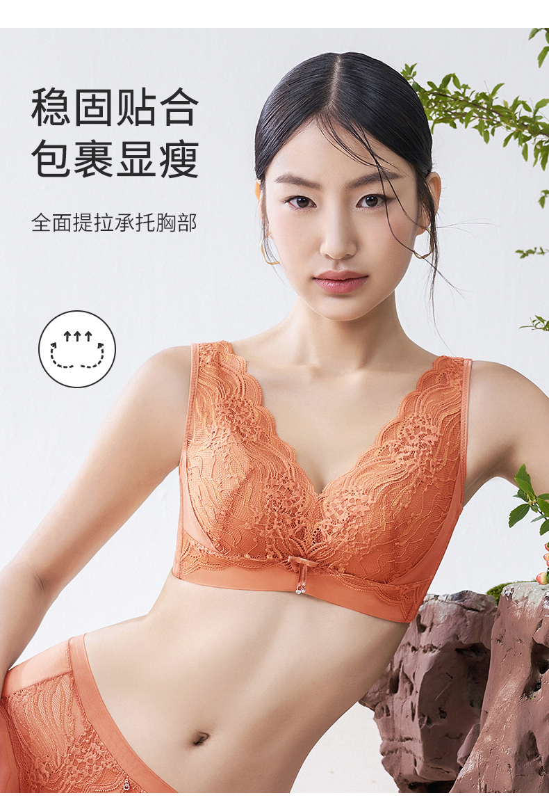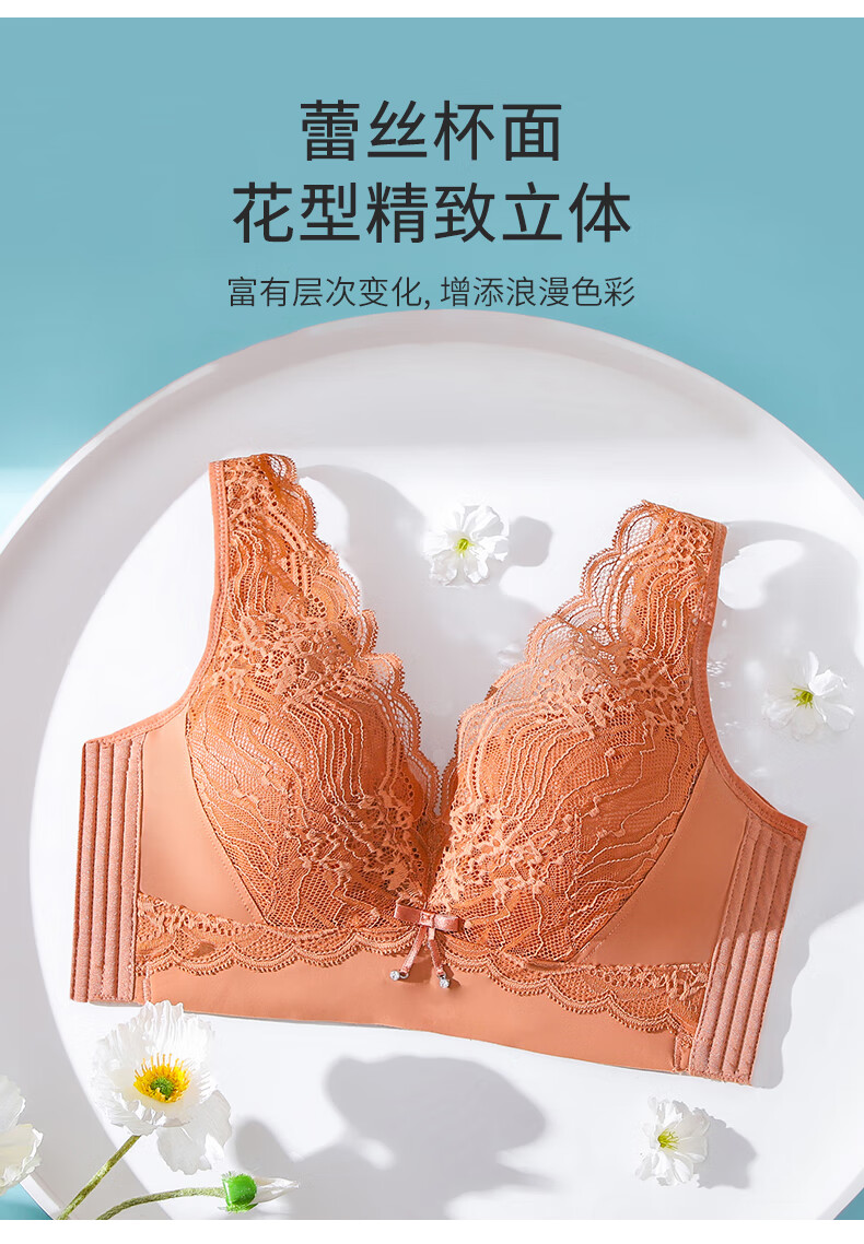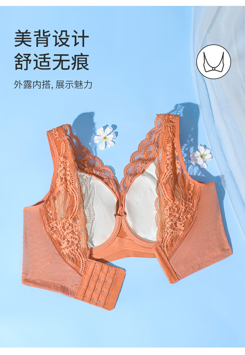 爱戴大胸显小文胸薄款防下垂全包容收副乳美背内衣女士大码调整型胸罩 7853-珊瑚橙 (超薄杯约0.1CM) 80E