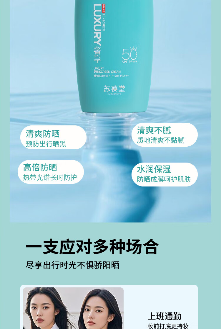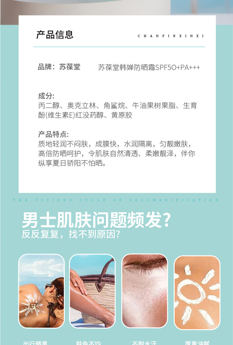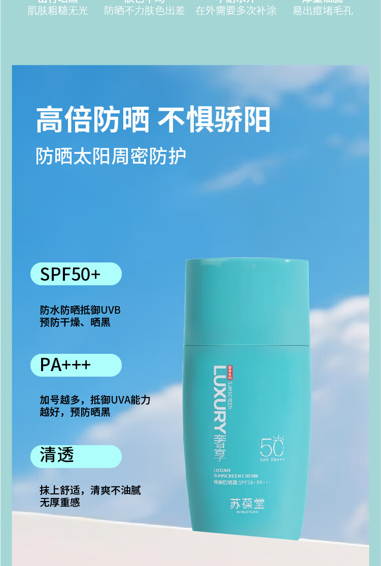 苏葆堂男士防晒霜SPF50+PA+++ 清爽不黏腻 干油皮适用不易脱妆 【超值热卖】防晒霜*2+赠面膜1盒