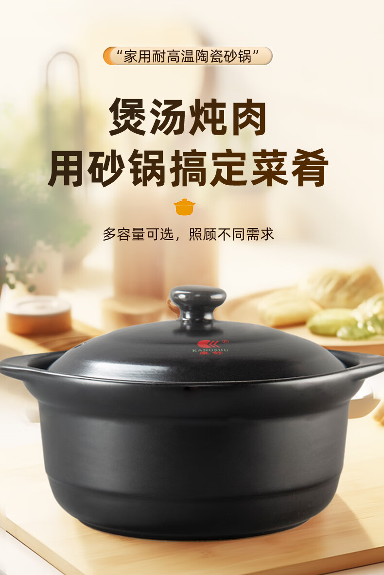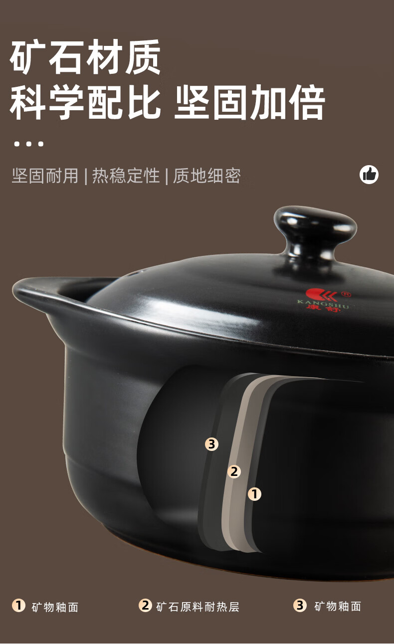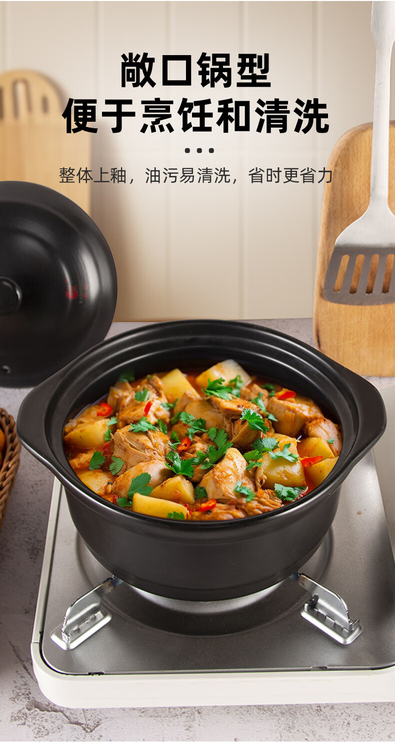 中式家用黑砂锅宽口大容量煲汤炖锅耐高温干烧不裂防糊底沙锅 1L 1点3l9黑瓷煲适合1-2人3L