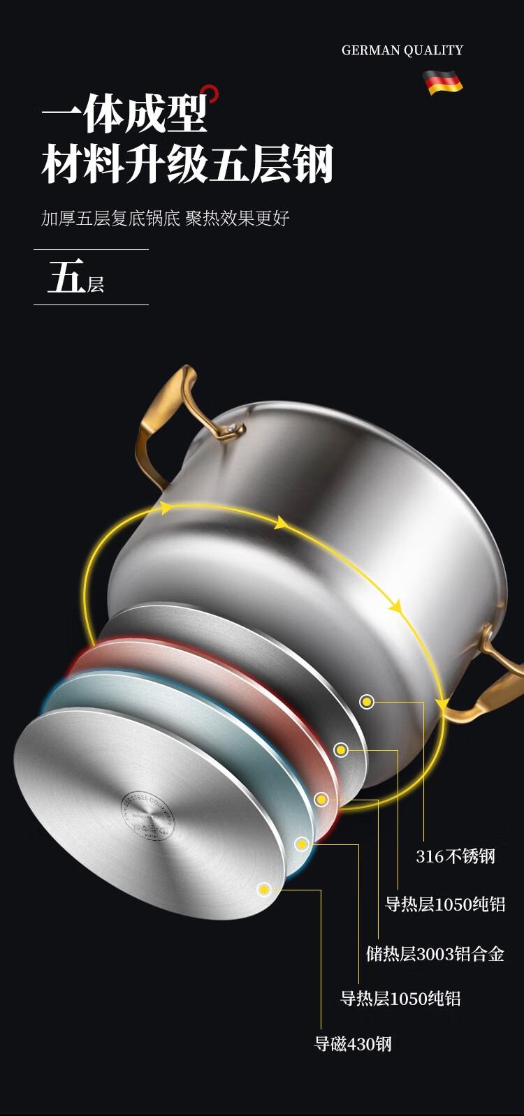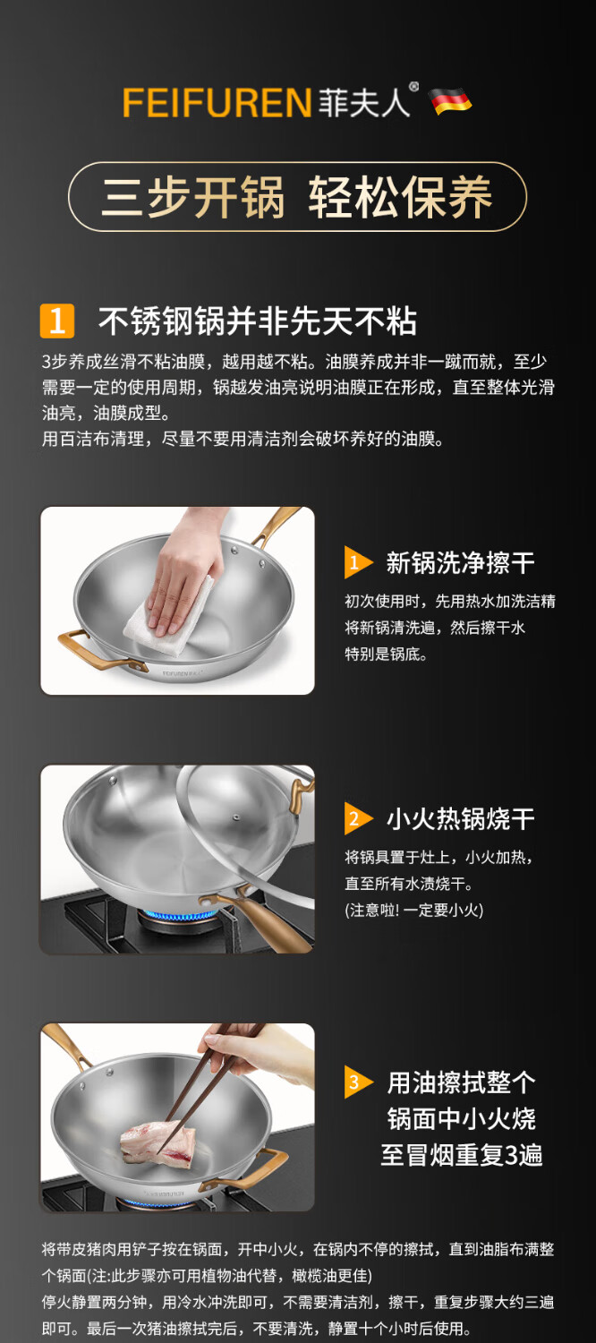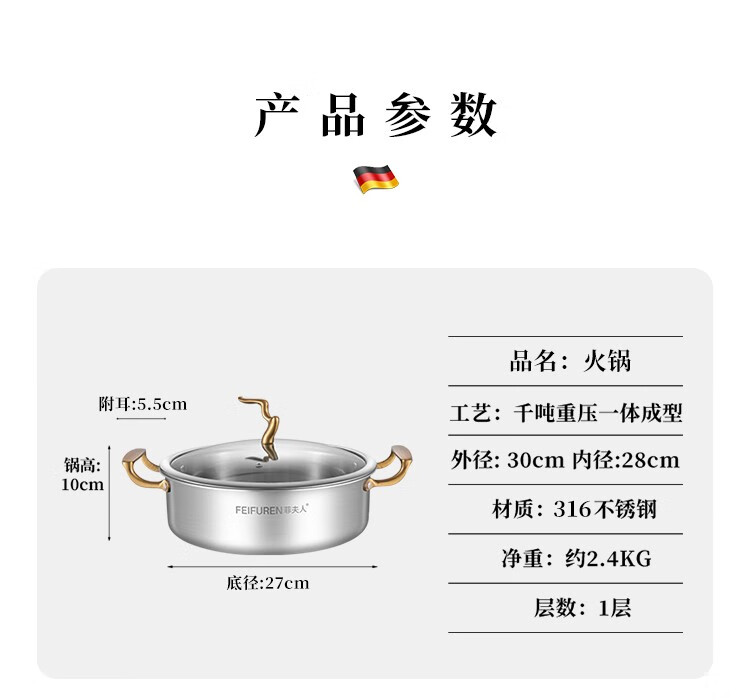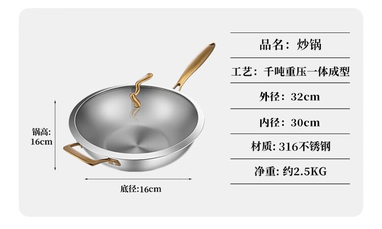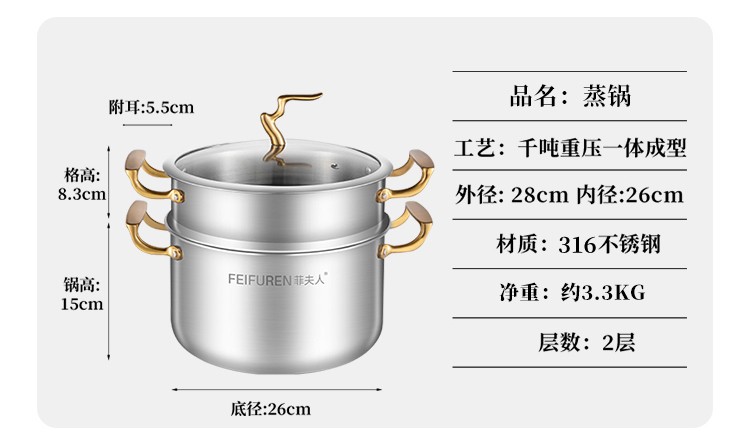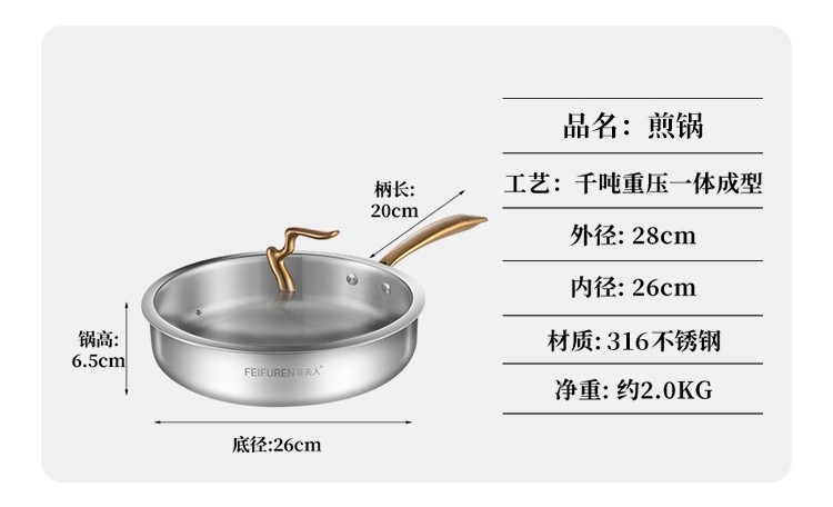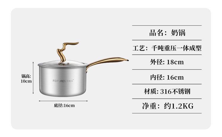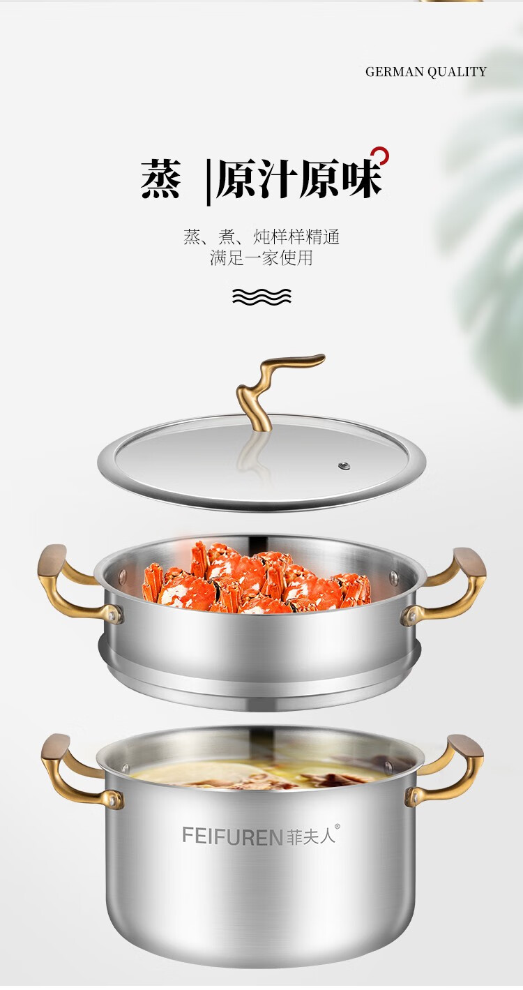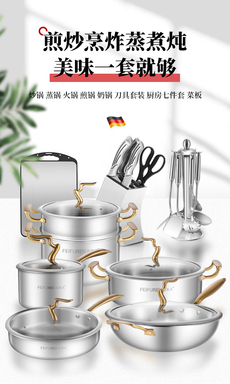 菲夫人(FEIFUREN)锅具套装全套家用316不锈钢煎炒锅汤锅煎锅奶锅厨具组合炉灶通用 炒煎蒸奶火锅+刀具勺铲菜板 8件套