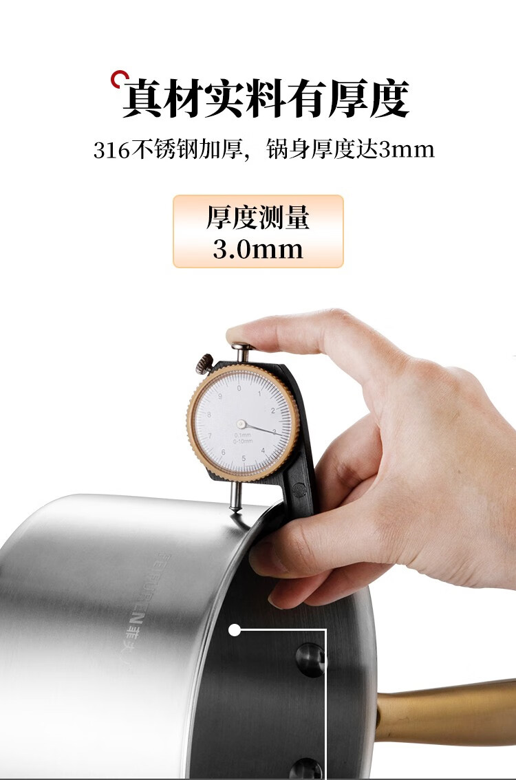 胖东来同款泼油锅316不锈钢加长柄热油专用神器厨房浇油烧油家用 316钢L带刻度梨花木柄 300cm