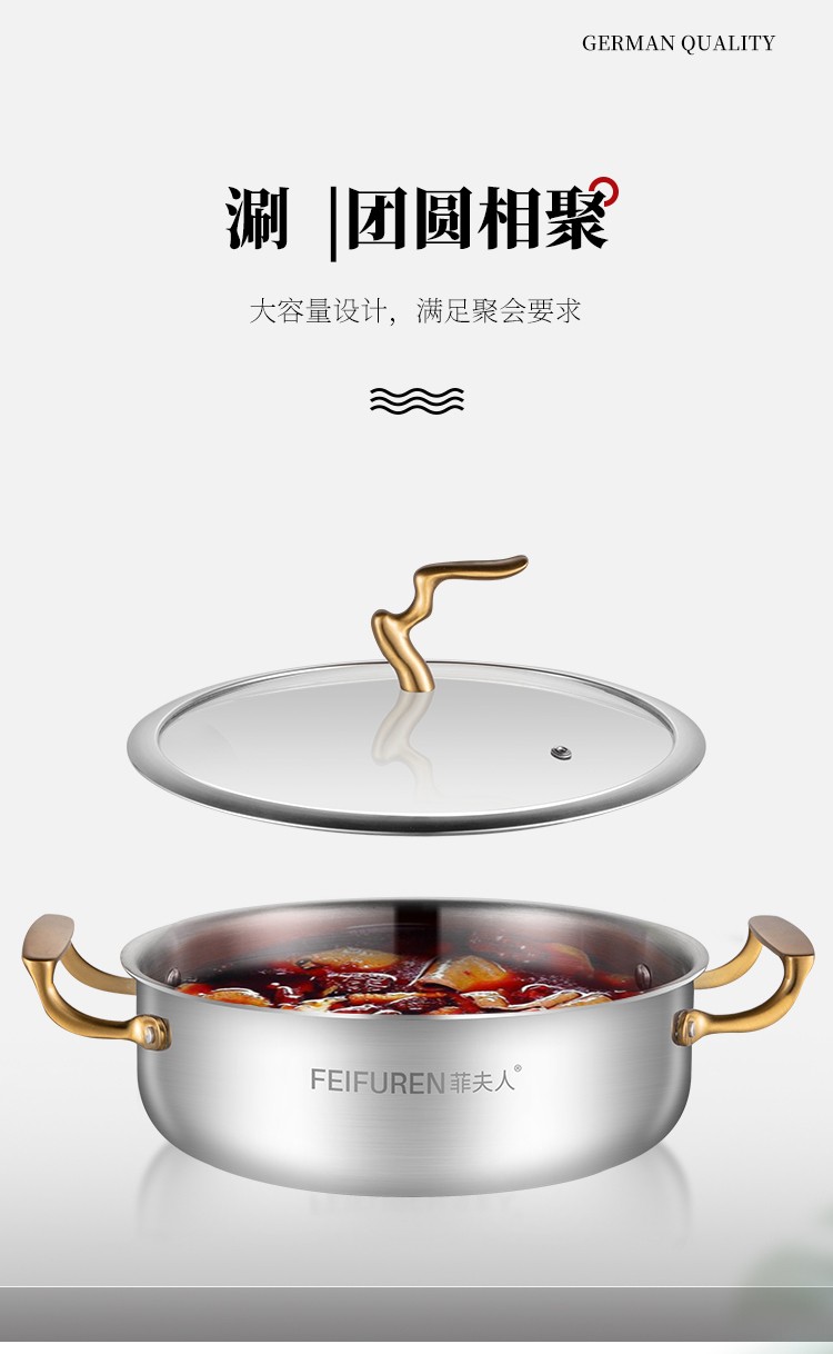 日禾盛唐火锅家用电磁炉锅火锅锅盆不锈钢涮锅大容量大号加厚众耐用 加厚清汤锅【送汤勺+漏勺】- 34cm