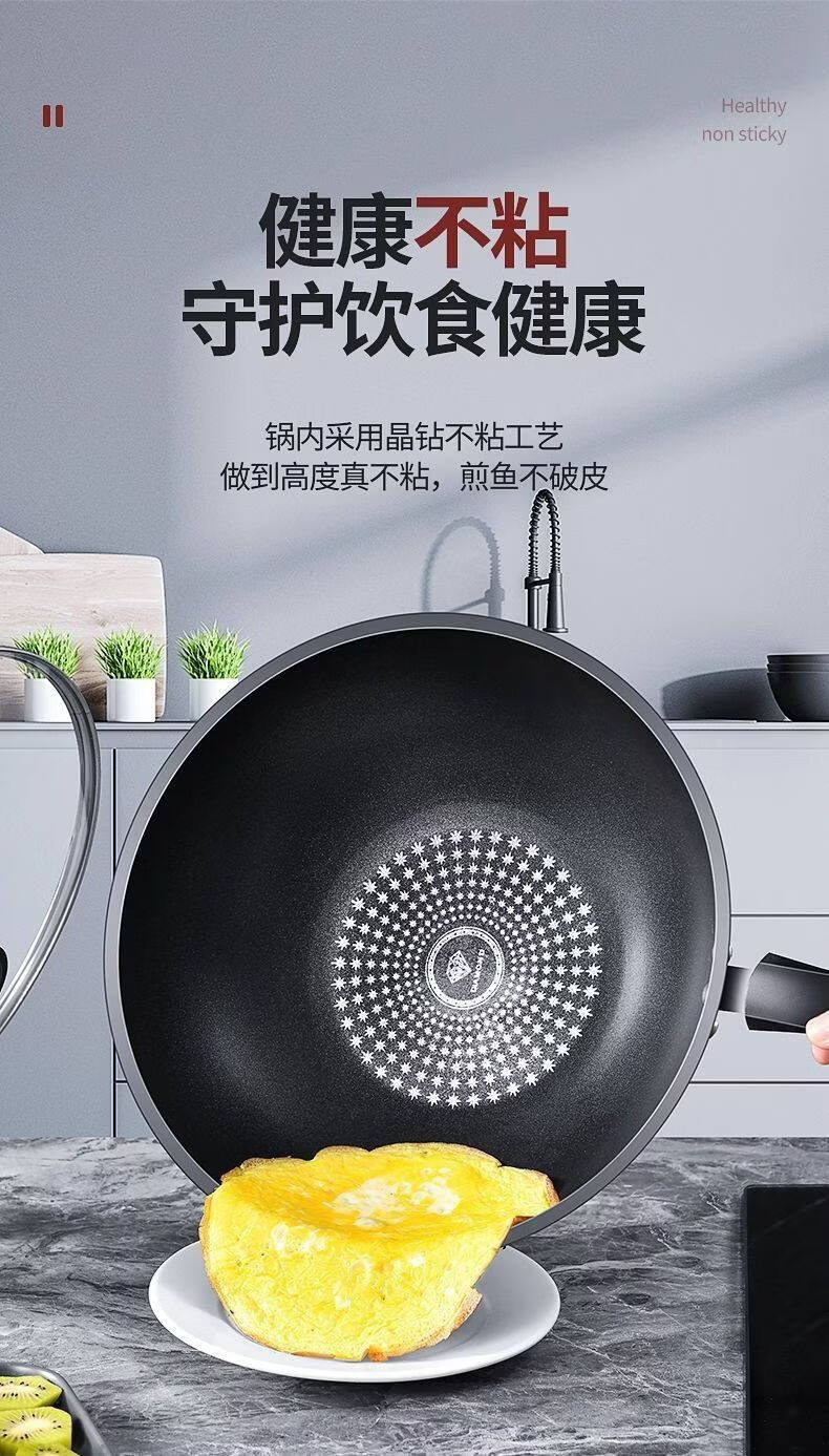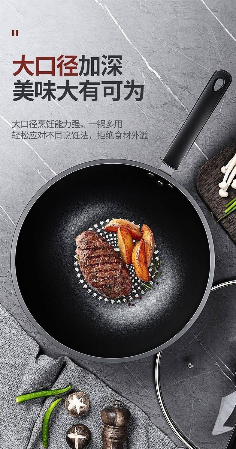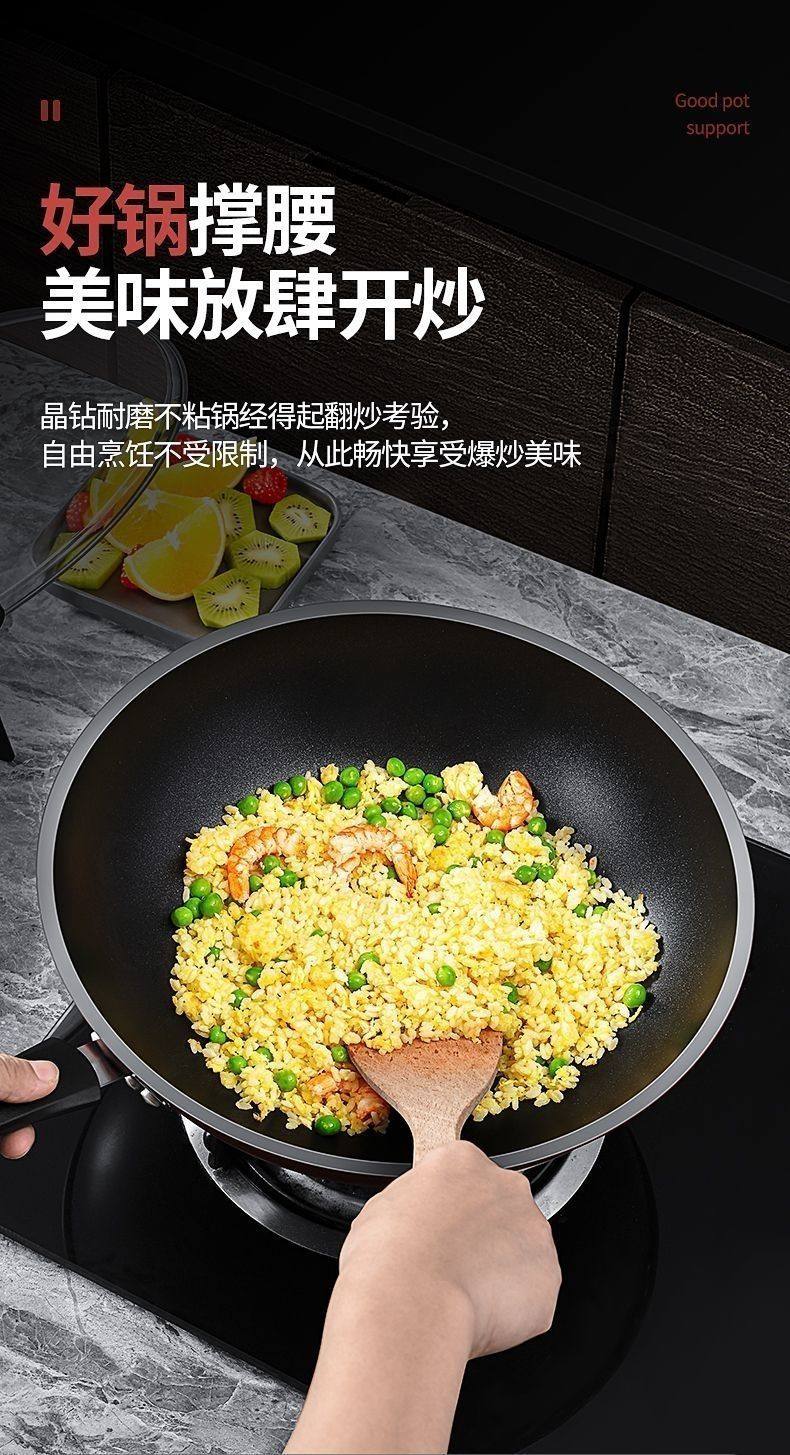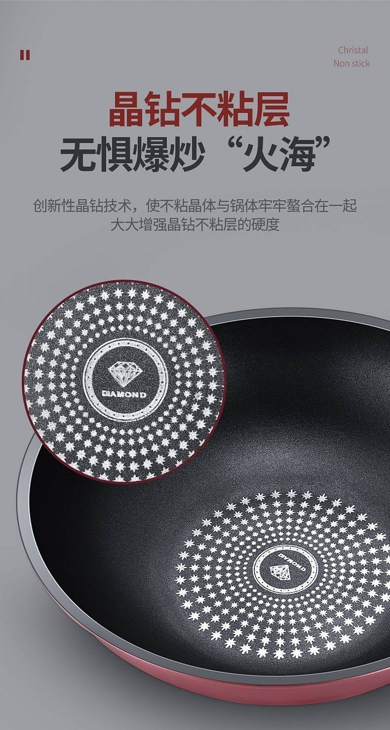 胖东来同款晶钻不沾炒锅多功能炒锅不沾锅不锈钢铁锅瓦斯炉平底锅 限时特惠钻石炒锅无盖 28cm