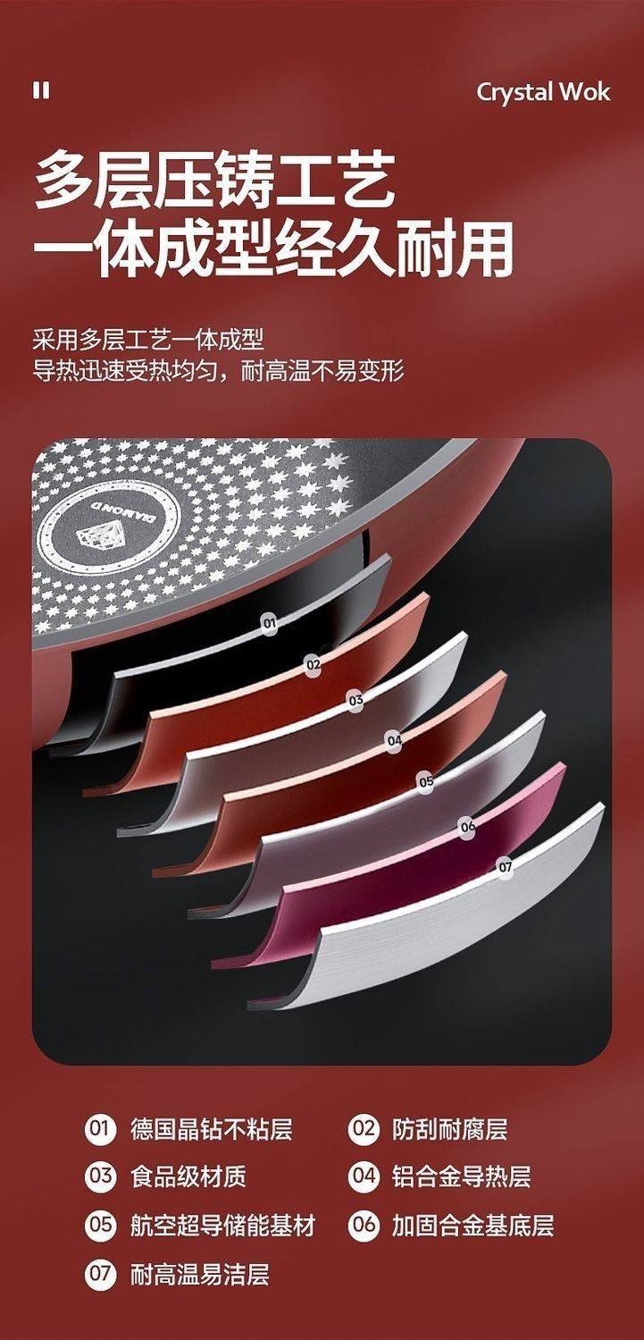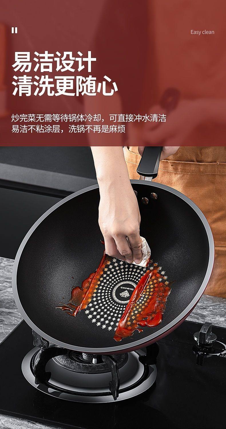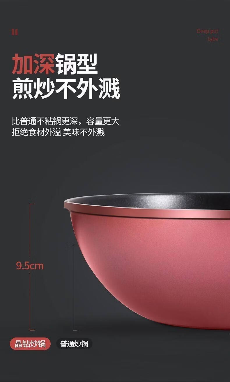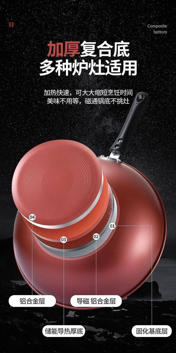 胖东来同款晶钻不沾炒锅多功能炒锅不沾锅不锈钢铁锅瓦斯炉平底锅 限时特惠钻石炒锅无盖 28cm