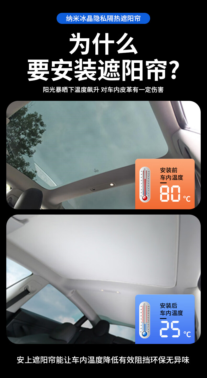 珂雅适用极狐考拉/考拉s专用全景天窗遮阳帘防晒隔热遮阳挡天幕前挡 纳米冰晶*天窗遮阳挡-不塌陷-暴晒不发烫-黑色 23-25款考拉/考拉S专用款