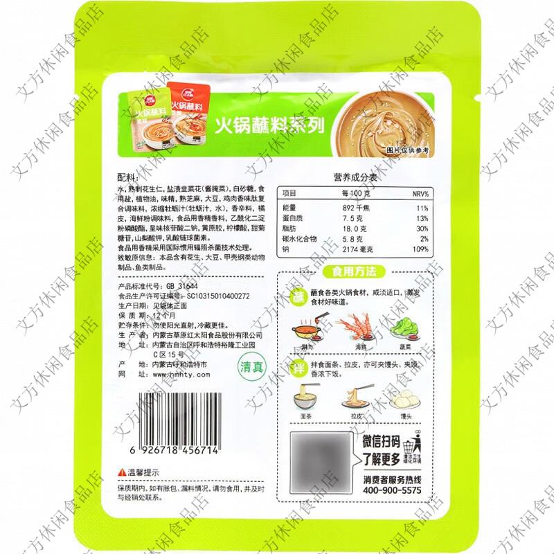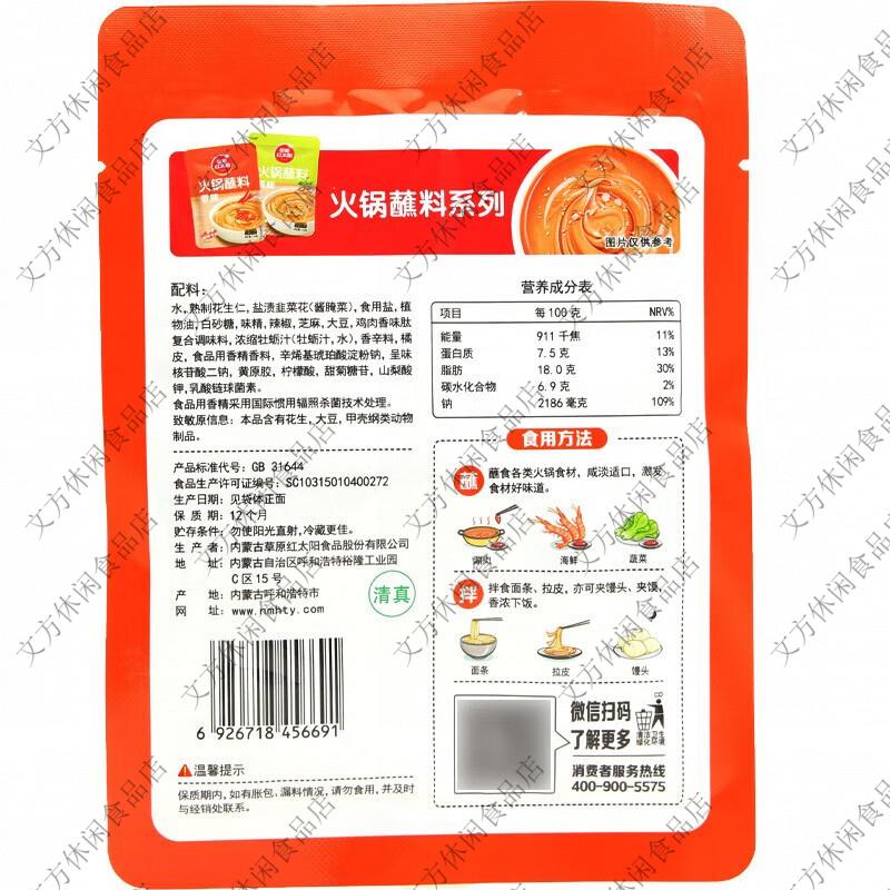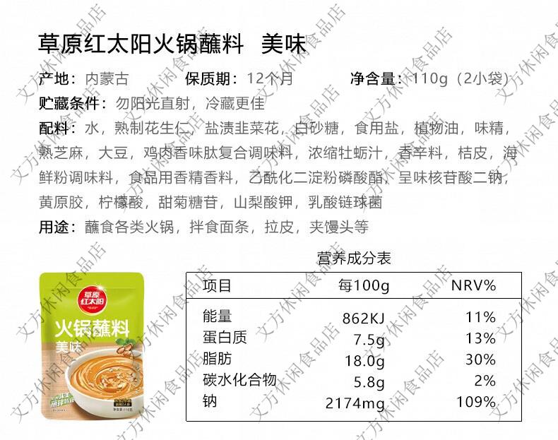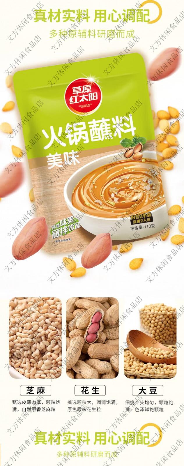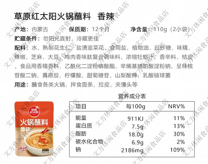 草原红太阳火锅蘸料110g原味香辣家用麻酱涮羊肉拌面酱料小包装 火锅蘸料美味110g