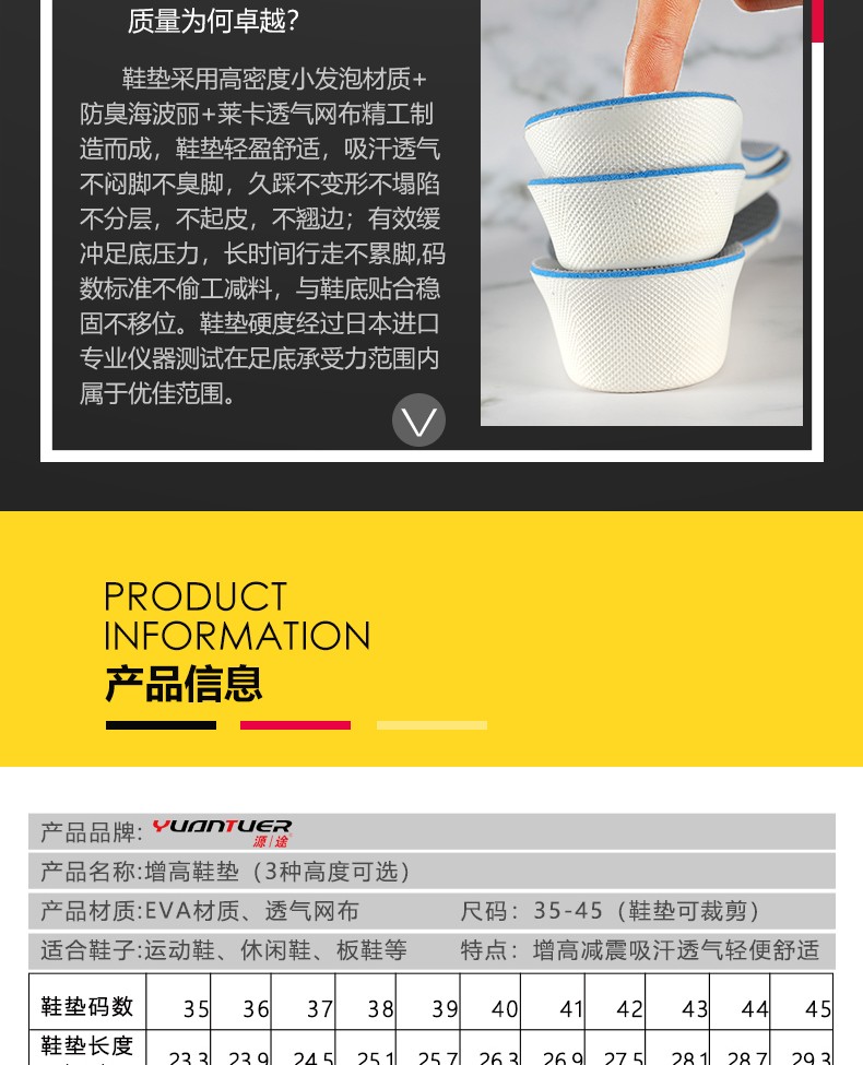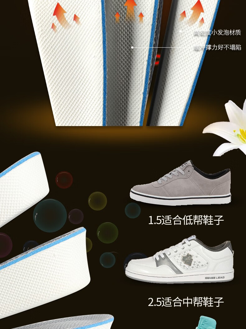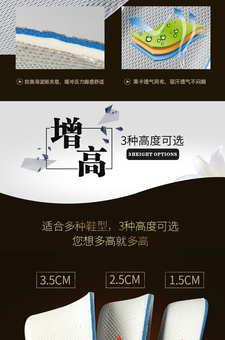 源途增高鞋垫透气吸汗隐形增高鞋垫减震舒适内增高垫 灰色3.5CM【带缓震吸汗夹层】 44码 【41-44 可裁剪大小】