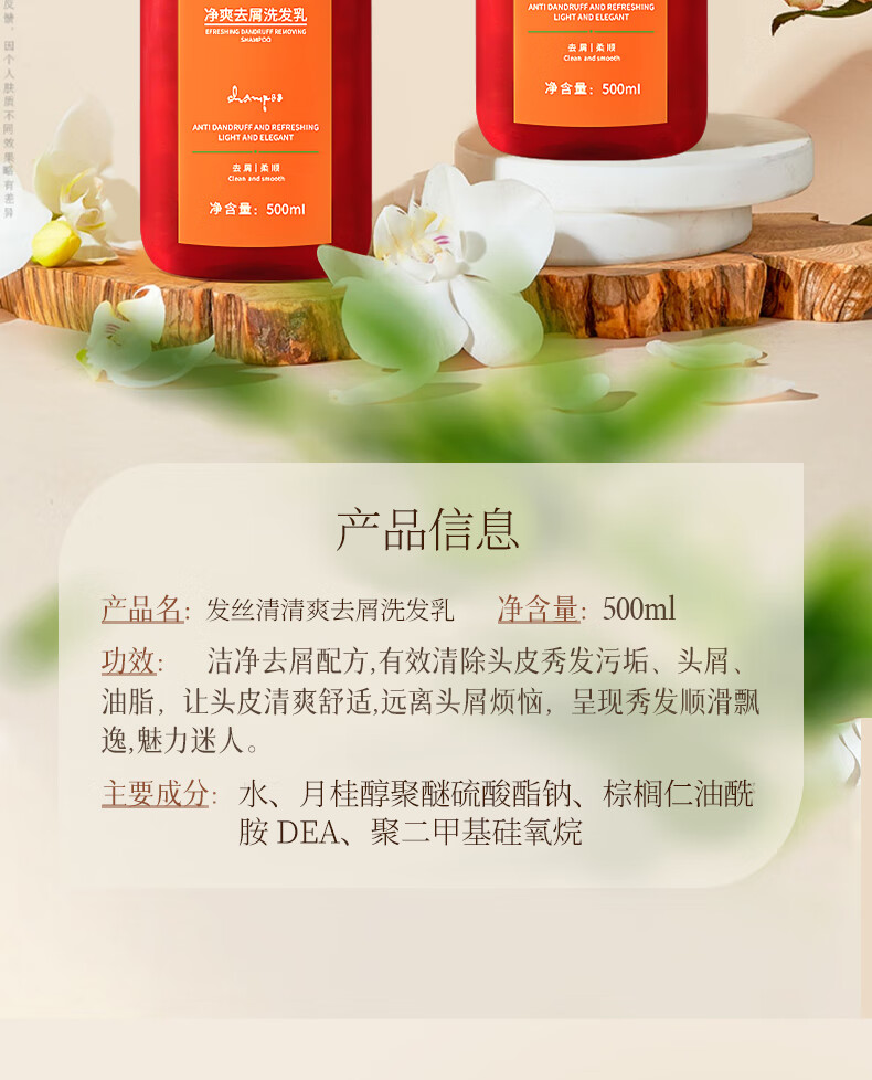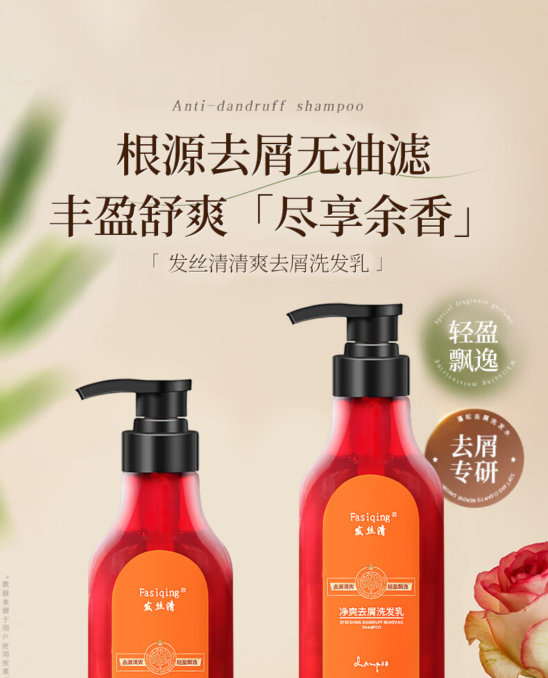 发丝清控油蓬松舒缓止痒柔顺飘逸舒爽不干涩男女士去屑止痒洗发露 净爽去屑洗发露500ml*2瓶