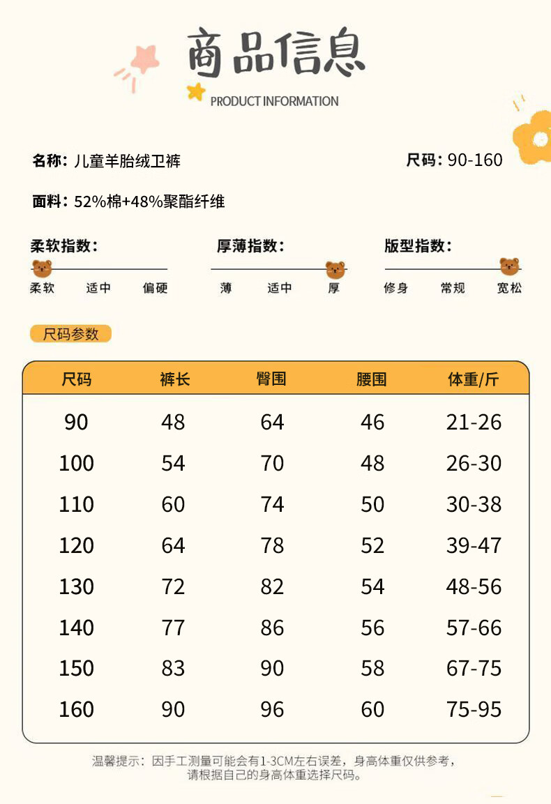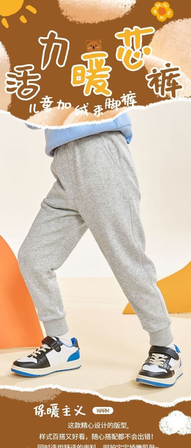 真维斯(Jeanswest)真维斯儿童羊胎绒裤子2026新款男女童保暖运动裤中大童冬季一体绒 【男童】摇粒绒裤子 款式颜色随机 110