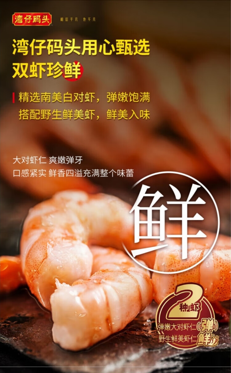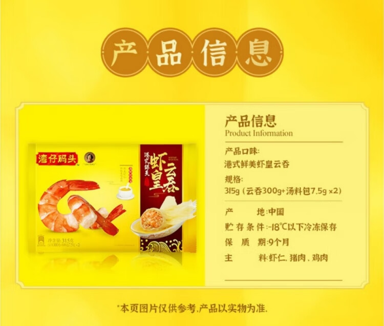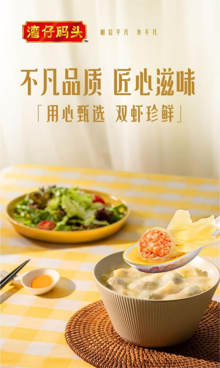 湾仔码头 【年货送礼】速冻馄饨 早餐速食 生鲜食品 港式鲜美大虾皇云吞315g*5袋