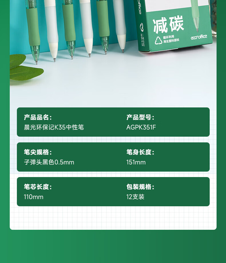 晨光(M&G)环保中性笔K35 黑色商务签字笔子弹头考试刷题笔黑笔按动 0.5mm黑【4支】+晨光笔芯10支
