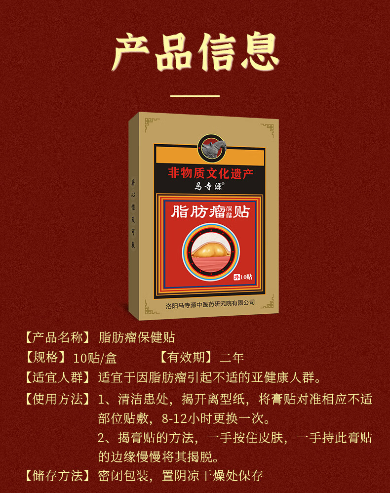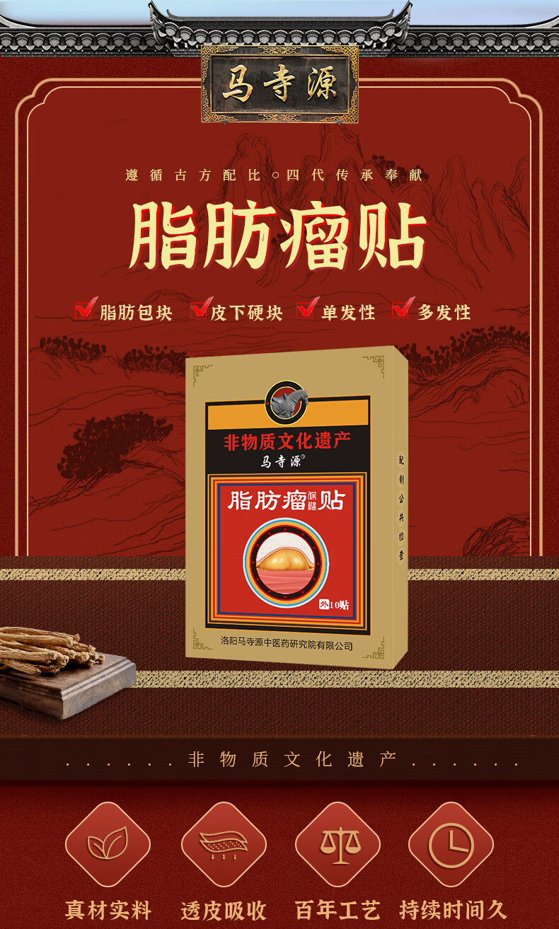马寺源脂肪瘤贴皮下脂肪包块纤维瘤粉瘤肿块囊肿硬块消瘤膏贴舒缓贴 买五发八