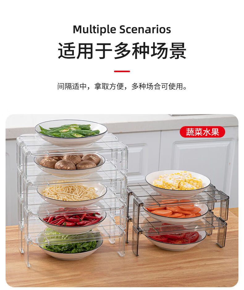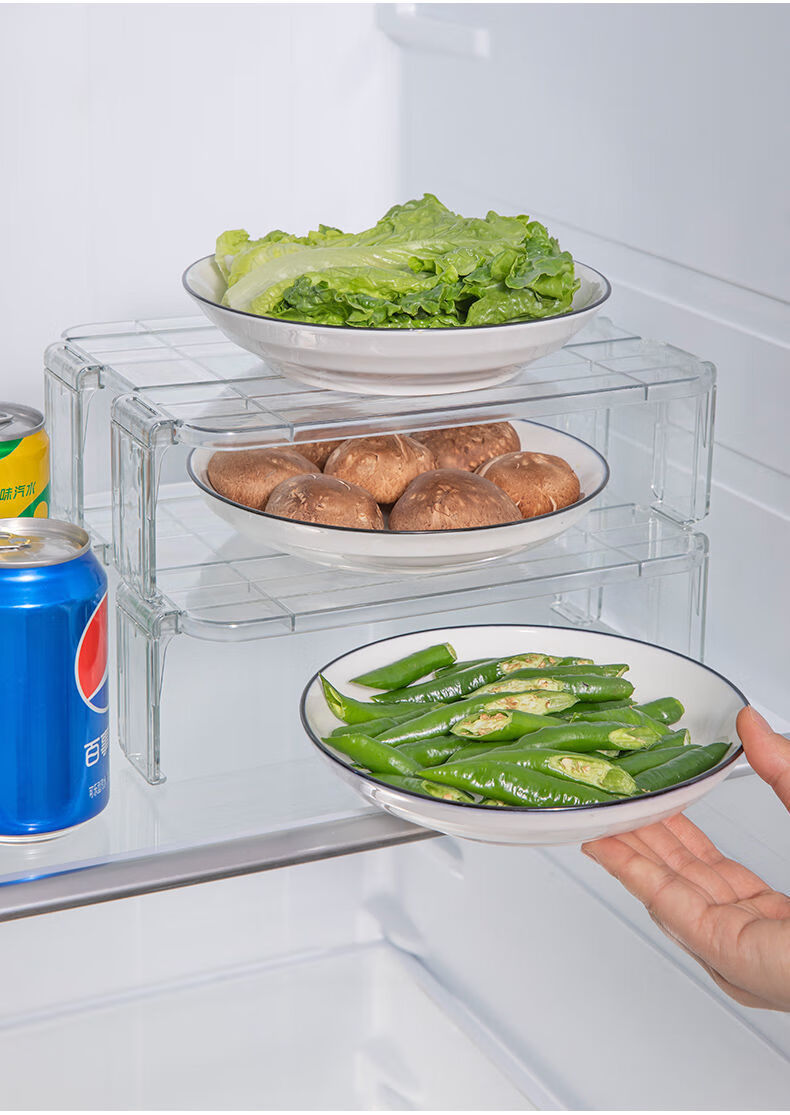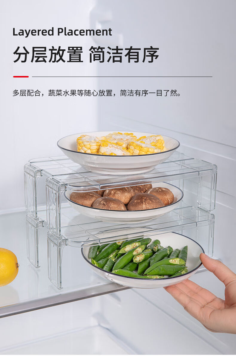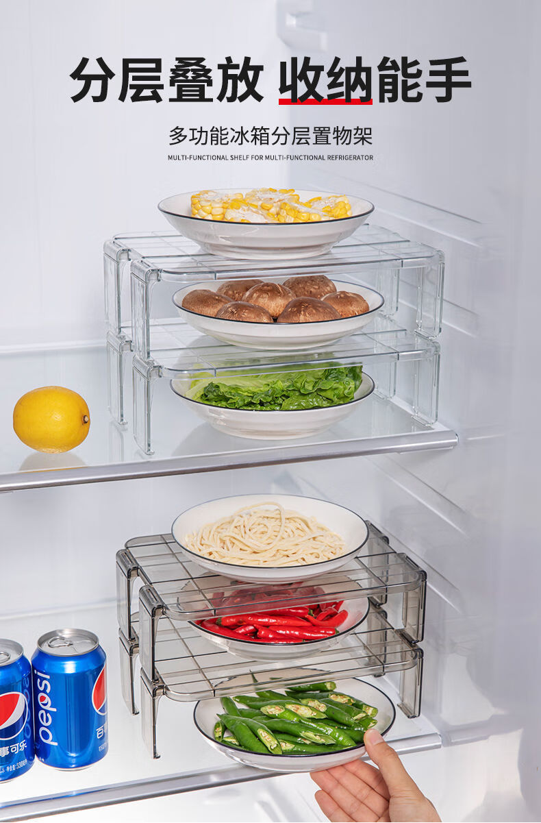 RSRDDY冰箱分层置物架2个装内部隔层放菜盘子支架剩菜分隔多功能收纳架 中号透明2个装