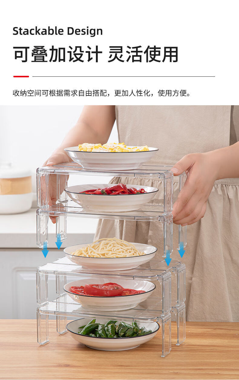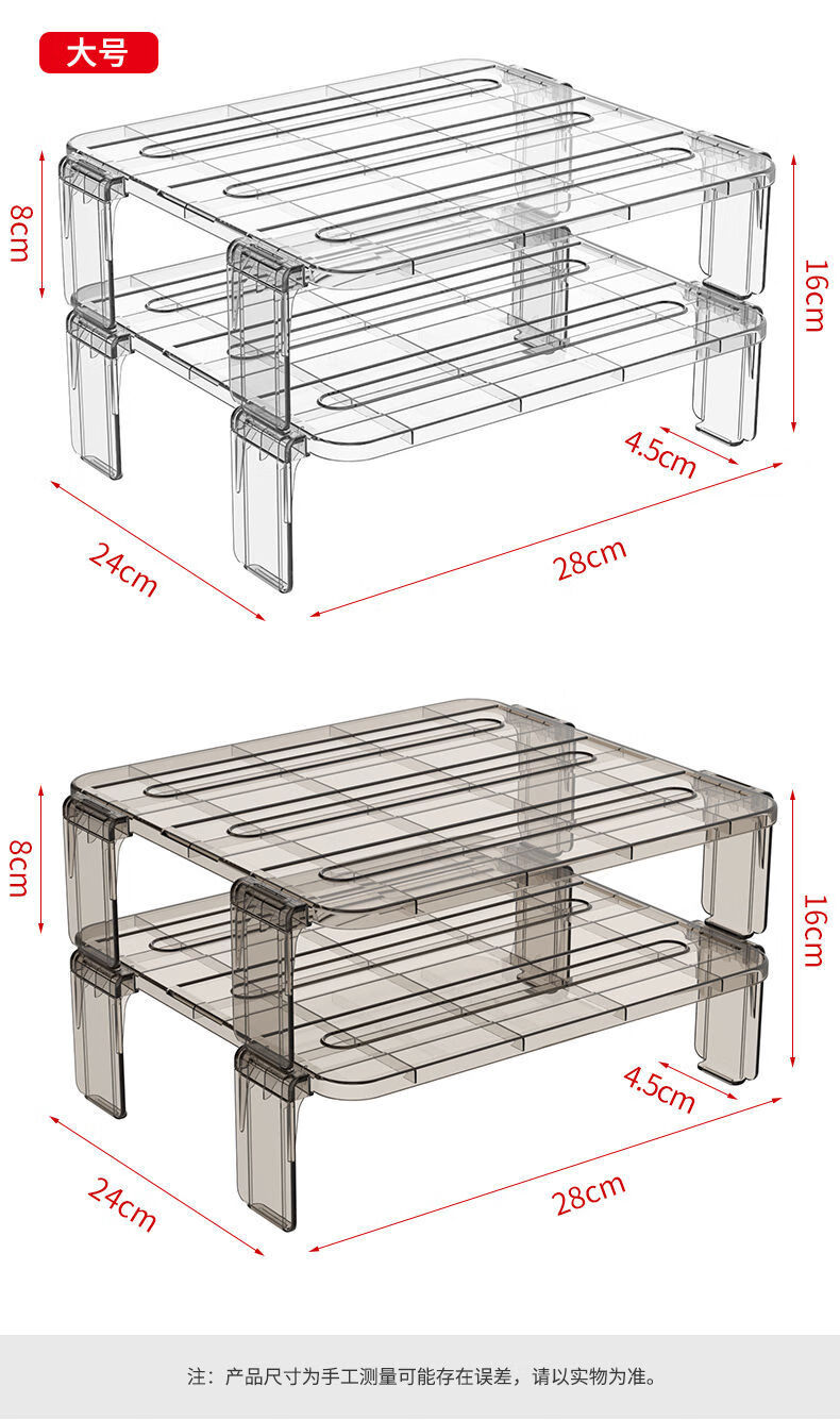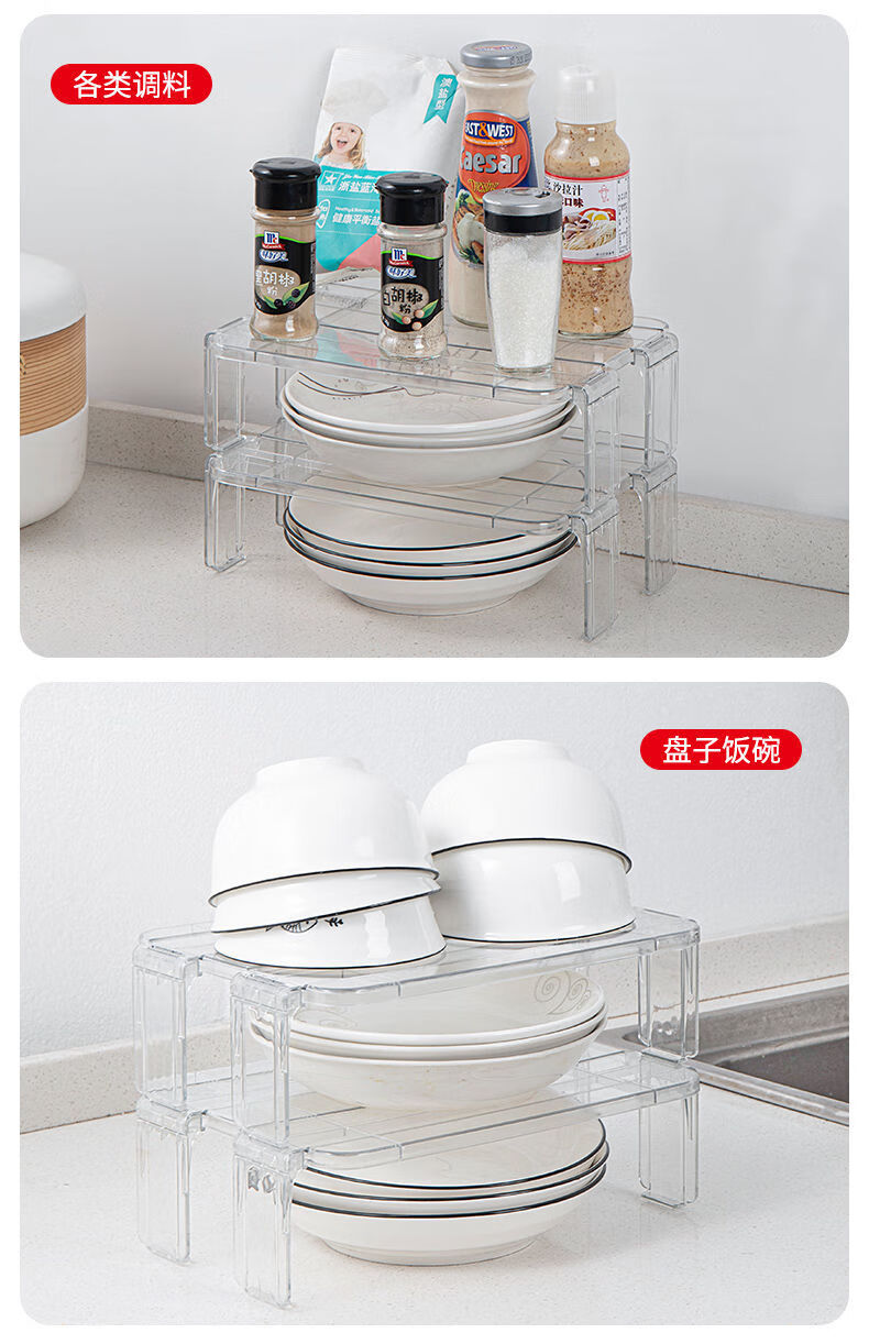 RSRDDY冰箱分层置物架2个装内部隔层放菜盘子支架剩菜分隔多功能收纳架 中号透明2个装
