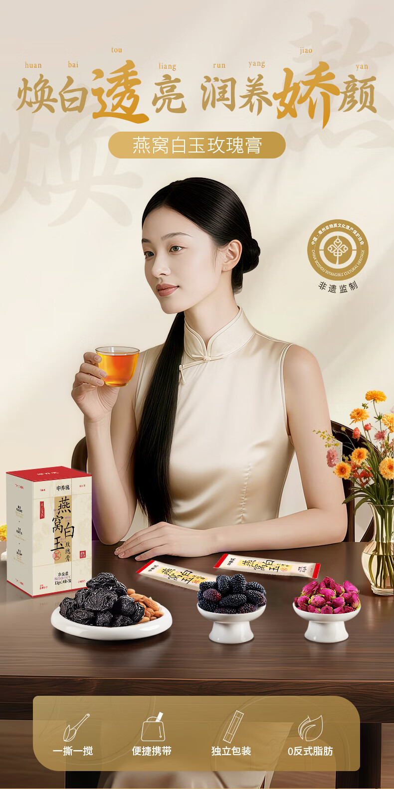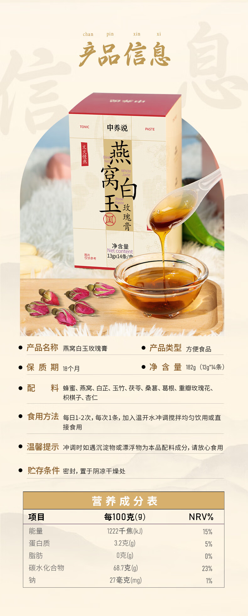 中养说燕窝白玉玫瑰膏白芷茯苓美白养颜滋补气血无添加营养品13g*14支 【拍2件 到手28支 第二件0元】