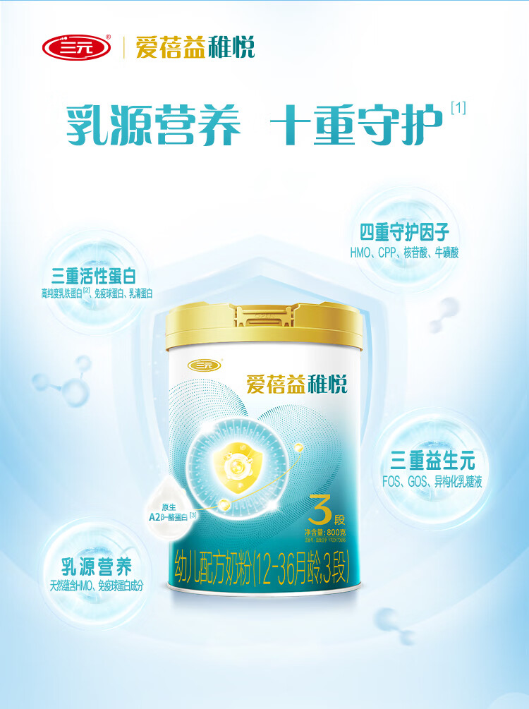 三元爱蓓益稚悦幼儿奶粉箱装3段800g*6罐A2奶源
