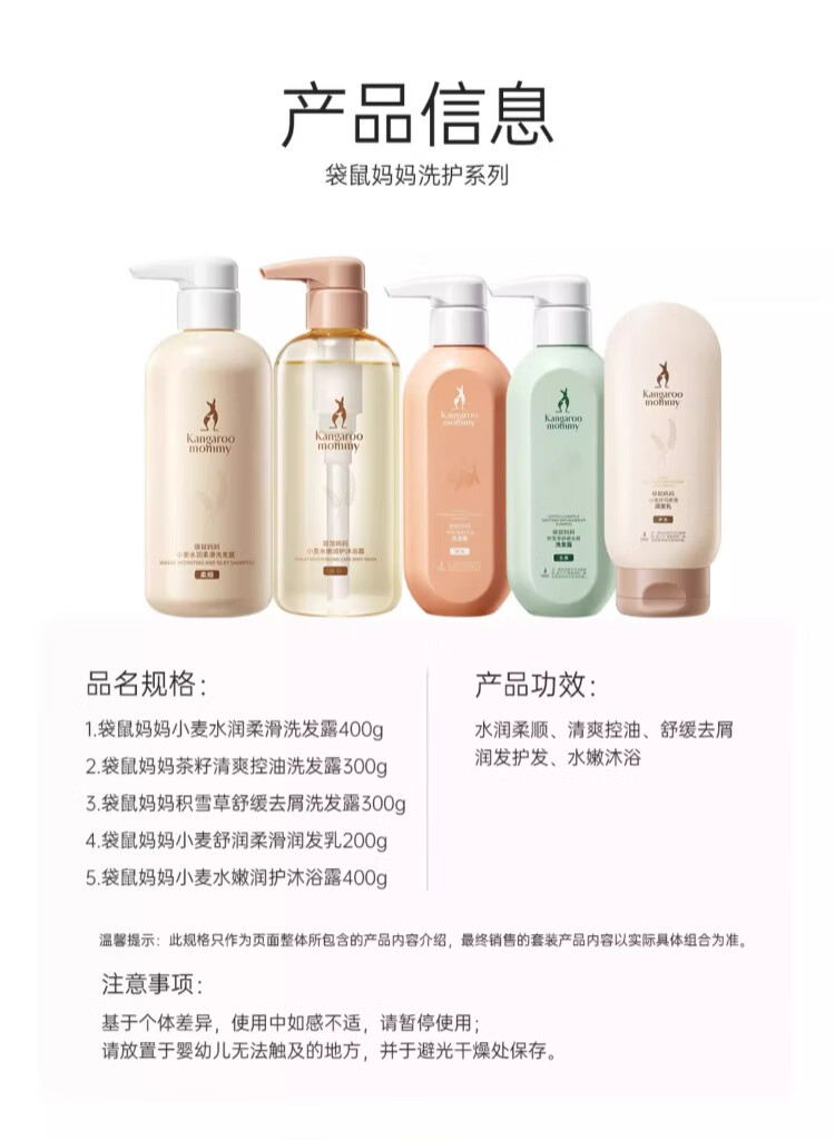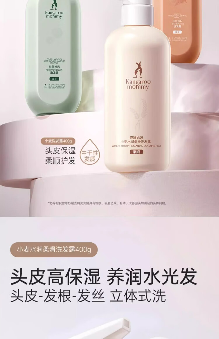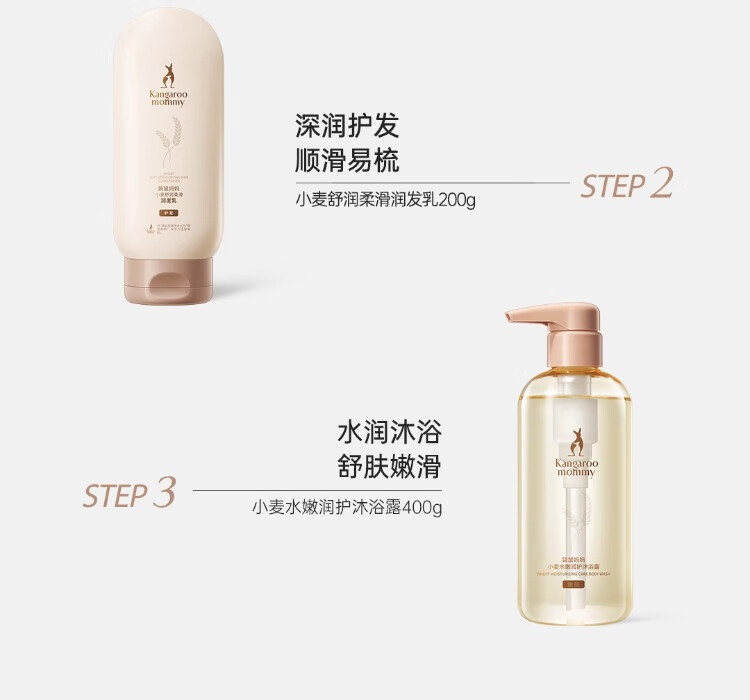 袋鼠妈妈准孕妇专用洗发水沐浴露小麦控油补水保湿蓬松止痒洗护套装 【洗沐健齿】小麦洗护2件套+蓝莓牙膏