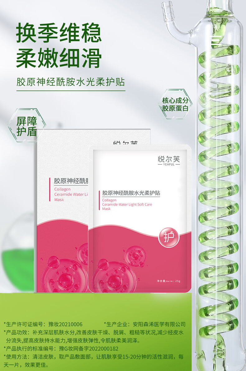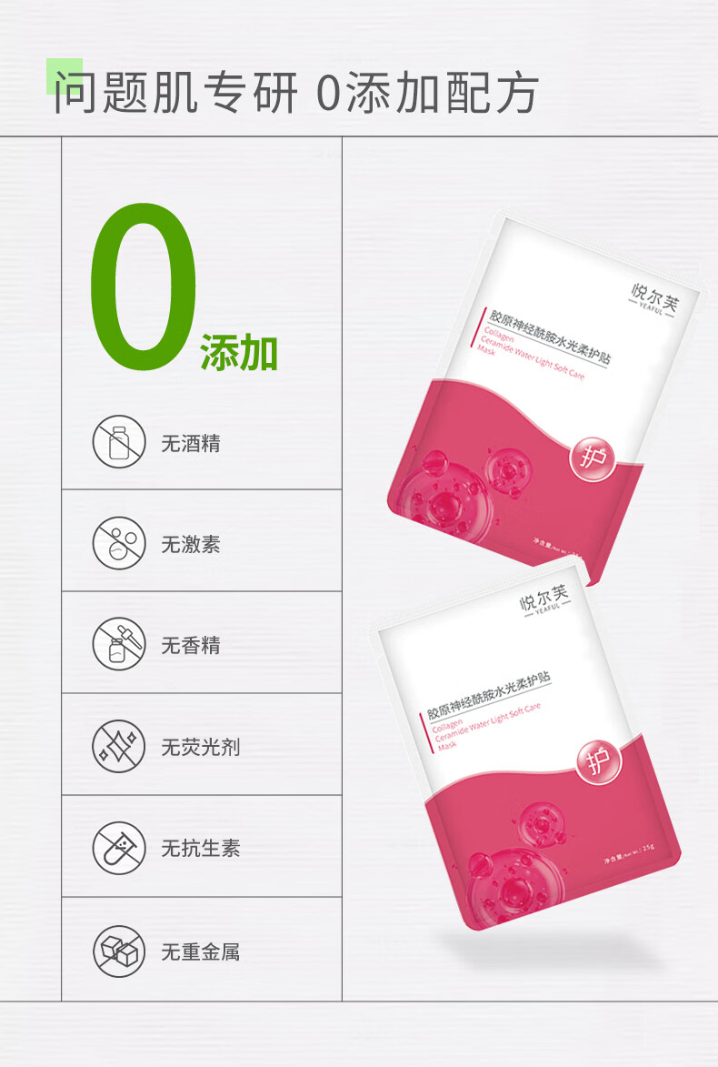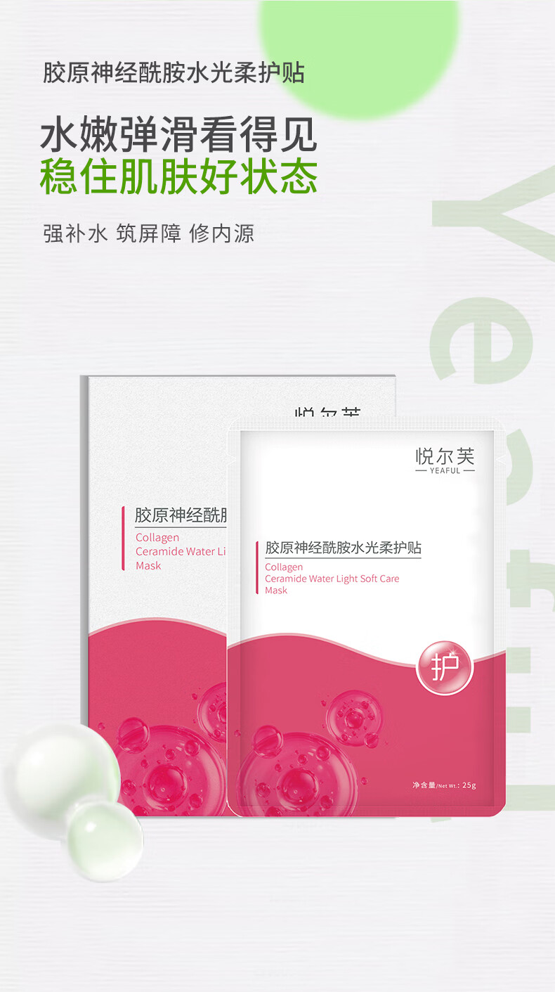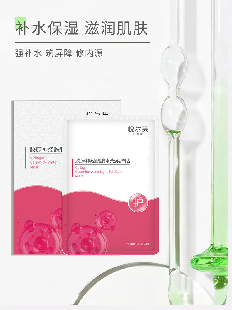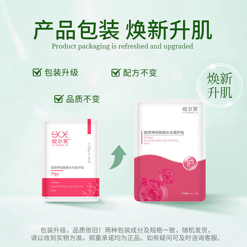 悦尔芙胶原蛋白神经酰胺舒护焕亮水光面膜补水保湿面膜换季敏敏肌修复 拯救问题肌修护粉膜5片/一盒装 拯救问题肌修护粉膜