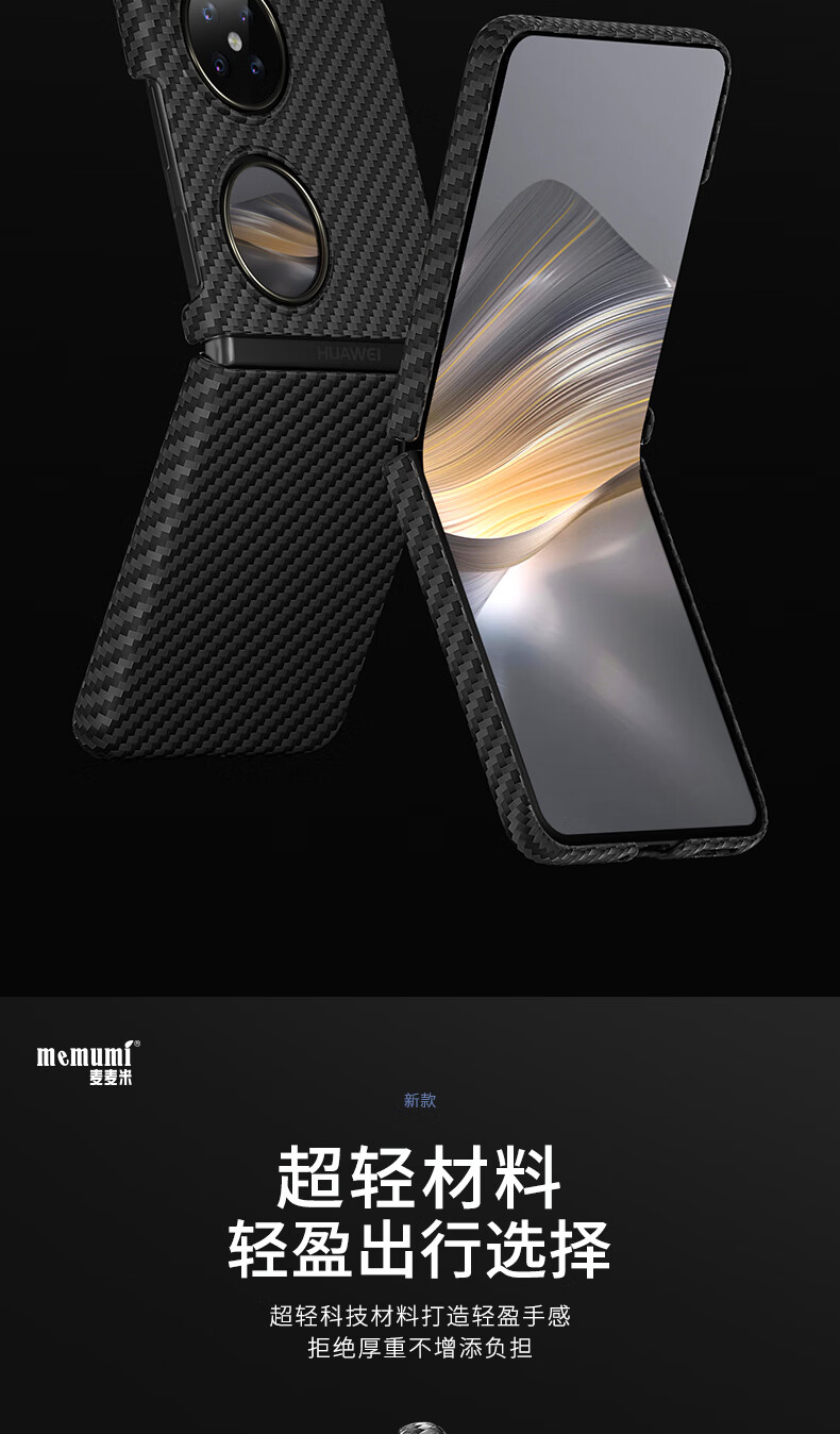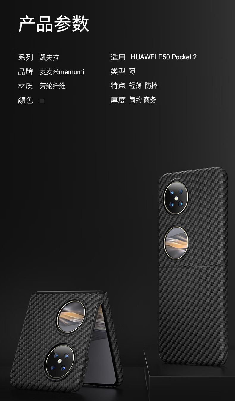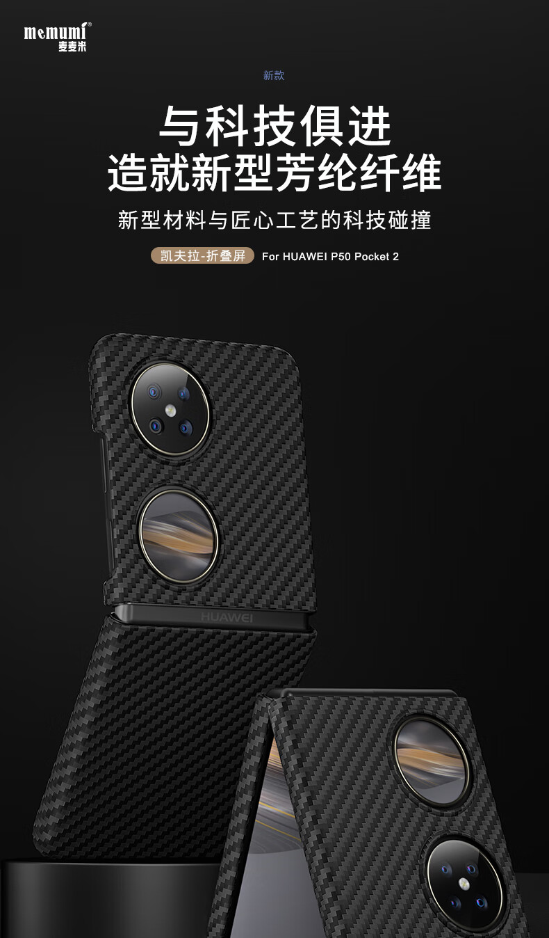 麦麦米适用华为pocket2手机壳 Pocket 2折叠屏凯夫拉芳纶纤维保护套轻奢精孔防摔壳 华为pocket2丨黑色轻奢凯夫拉