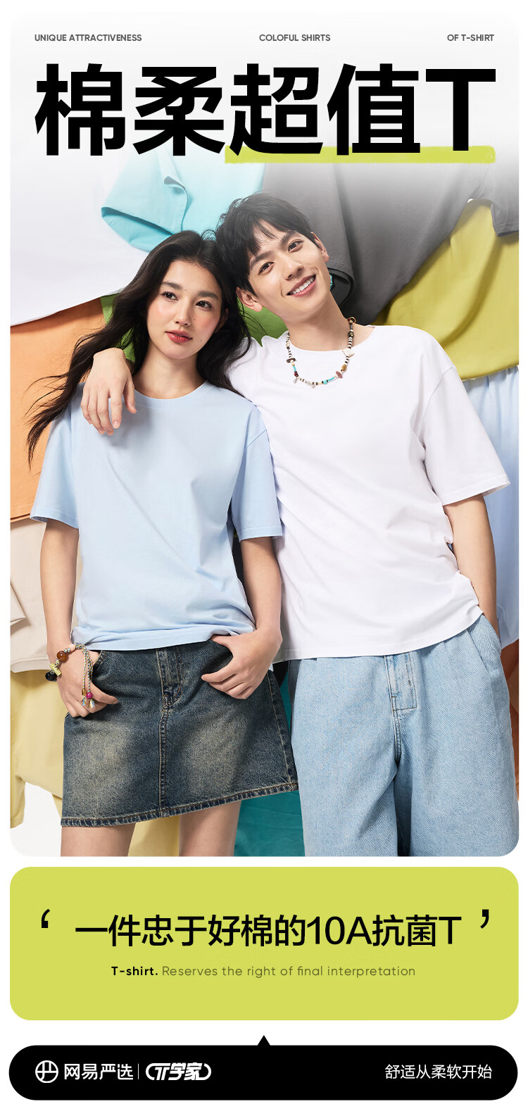 网易严选26新品10A抗菌纯棉短袖T恤新疆棉内搭圆领男女同款 短袖款-经典白 棉柔T3.0升级 XL