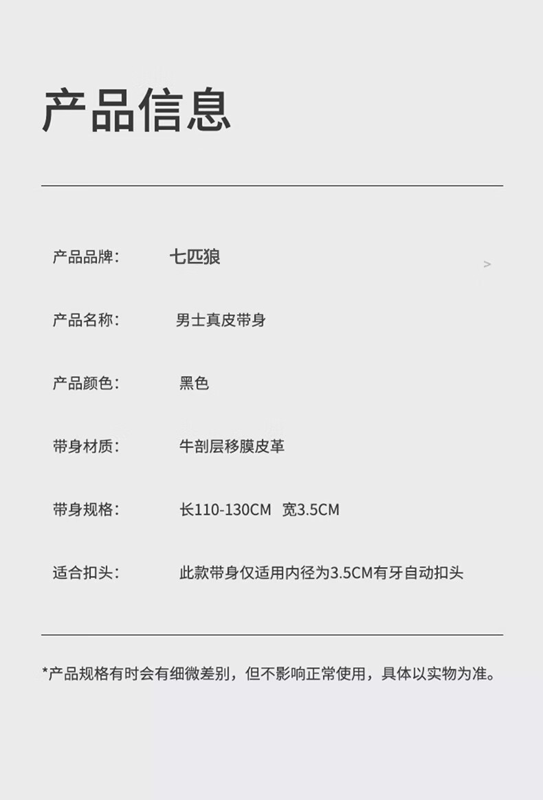 七匹狼520男士真520不带头自动扣牛皮单独腰带无扣无头裤带不要扣头 单独皮带条【无扣头】