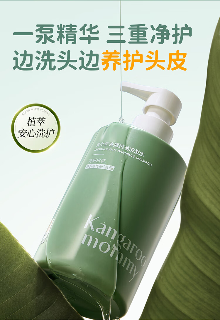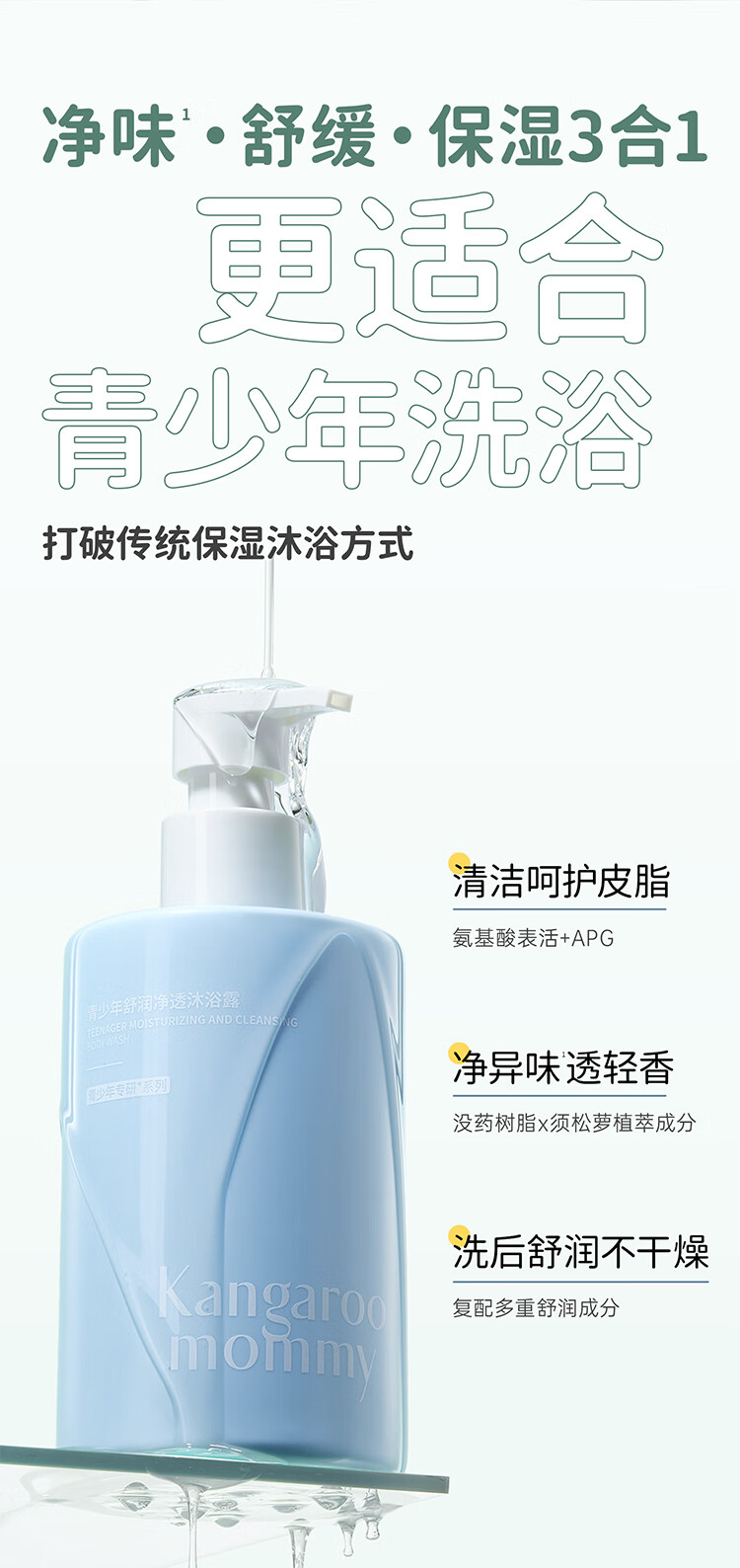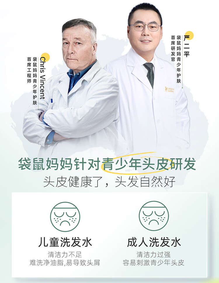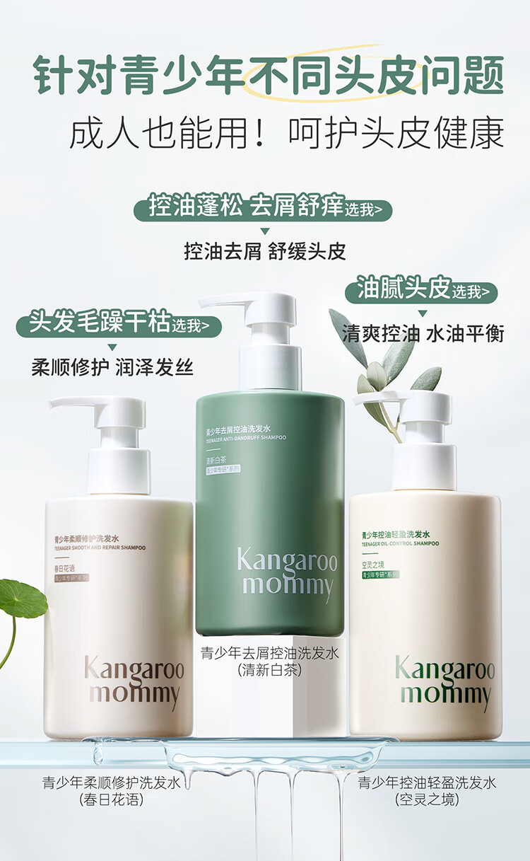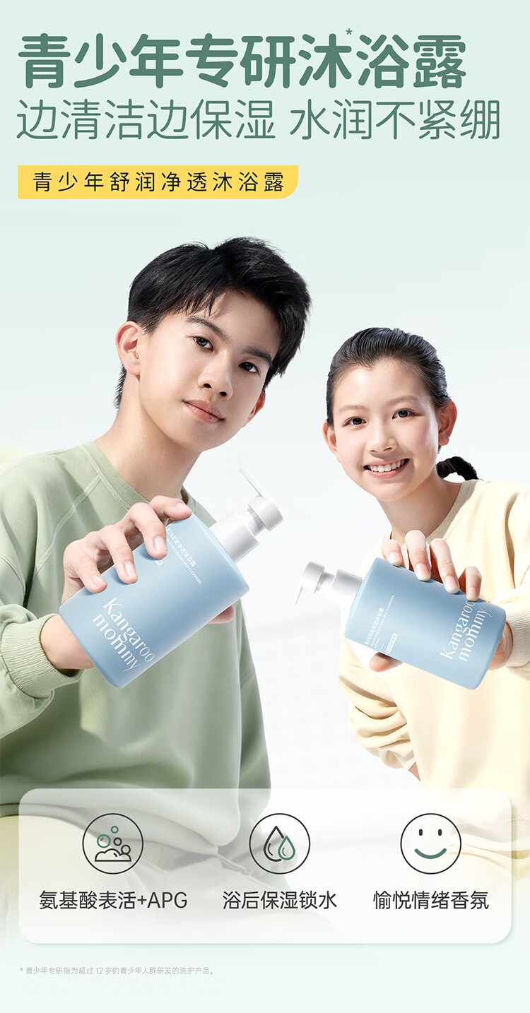 袋鼠妈妈青少年洗发水沐浴露套装 去屑控油清洁保湿儿童青春期学生专用
