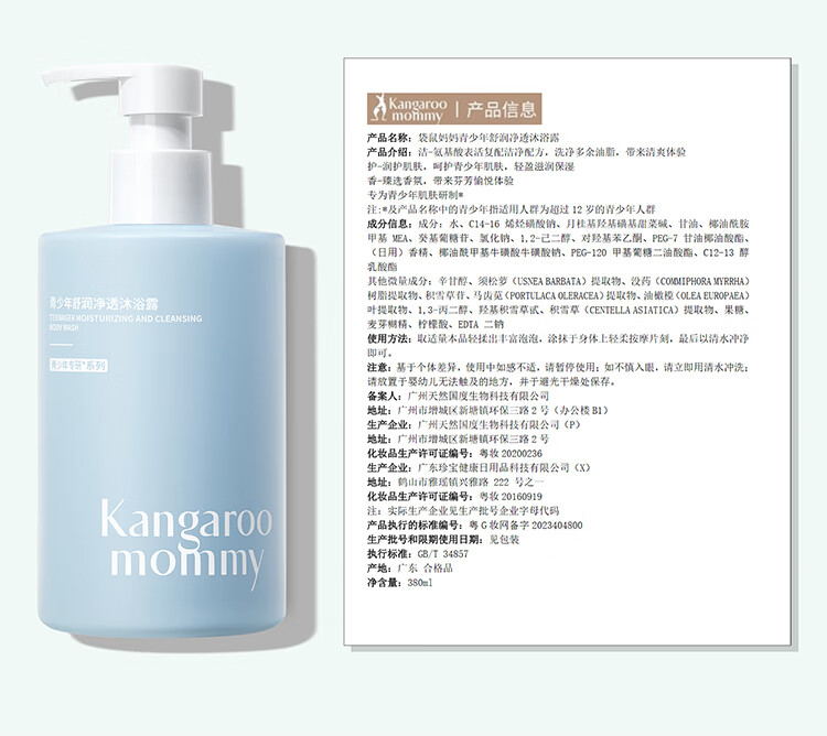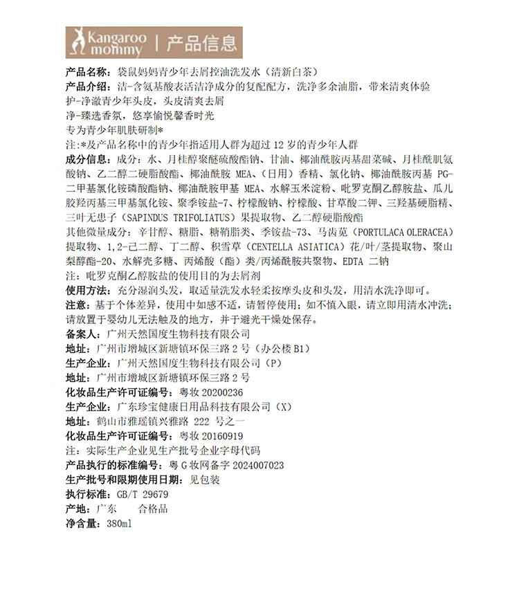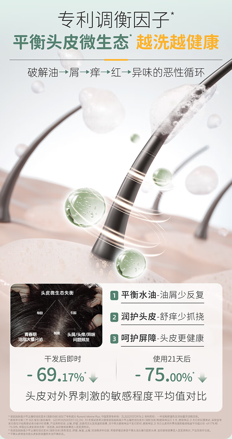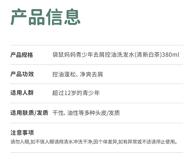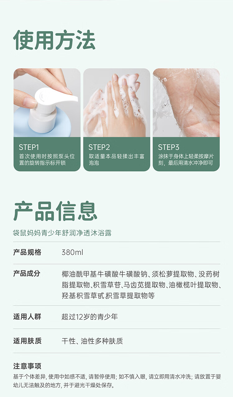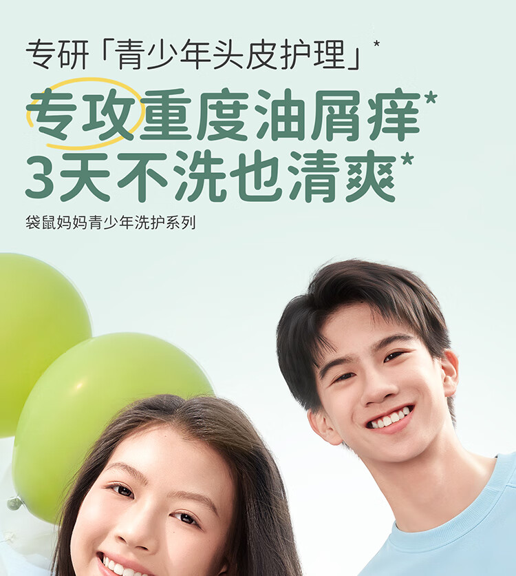 袋鼠妈妈青少年洗发水沐浴露套装 去屑控油清洁保湿儿童青春期学生专用
