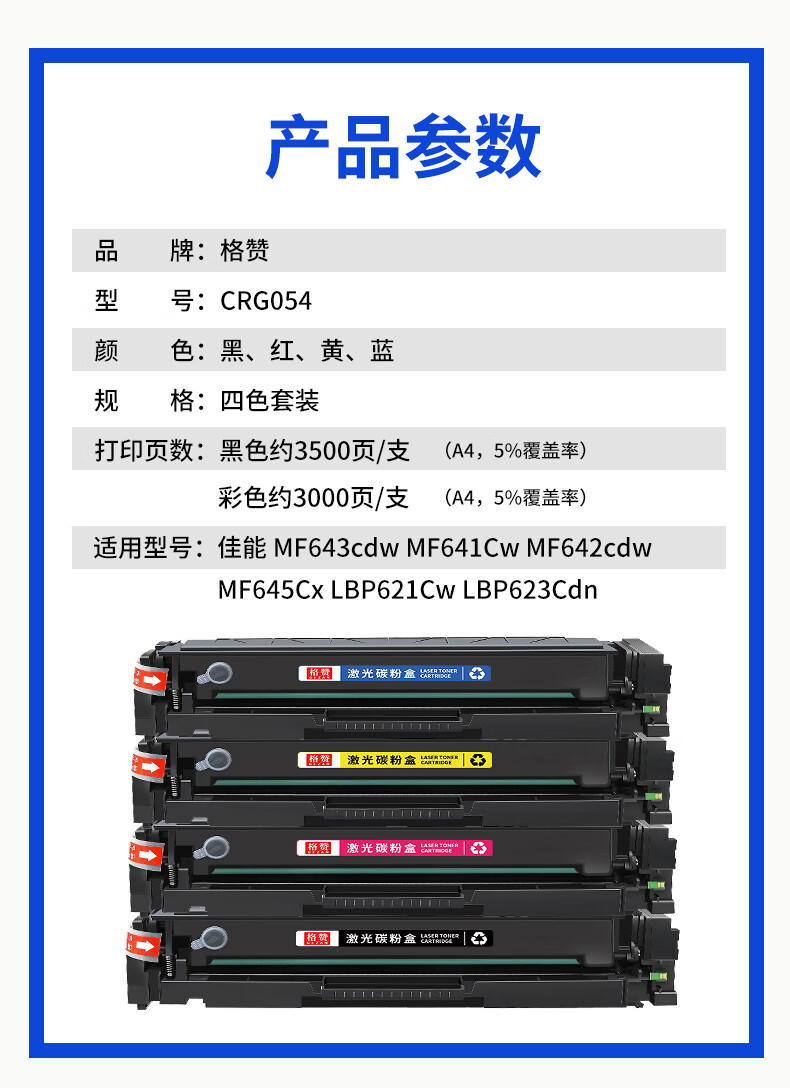 格赞CRG054硒鼓适用佳能mf643cdw硒鼓LBP621Cw 623cdn 623Cdw墨盒MF641Cw MF642cdw打印机MF645Cx粉盒四色大容量
