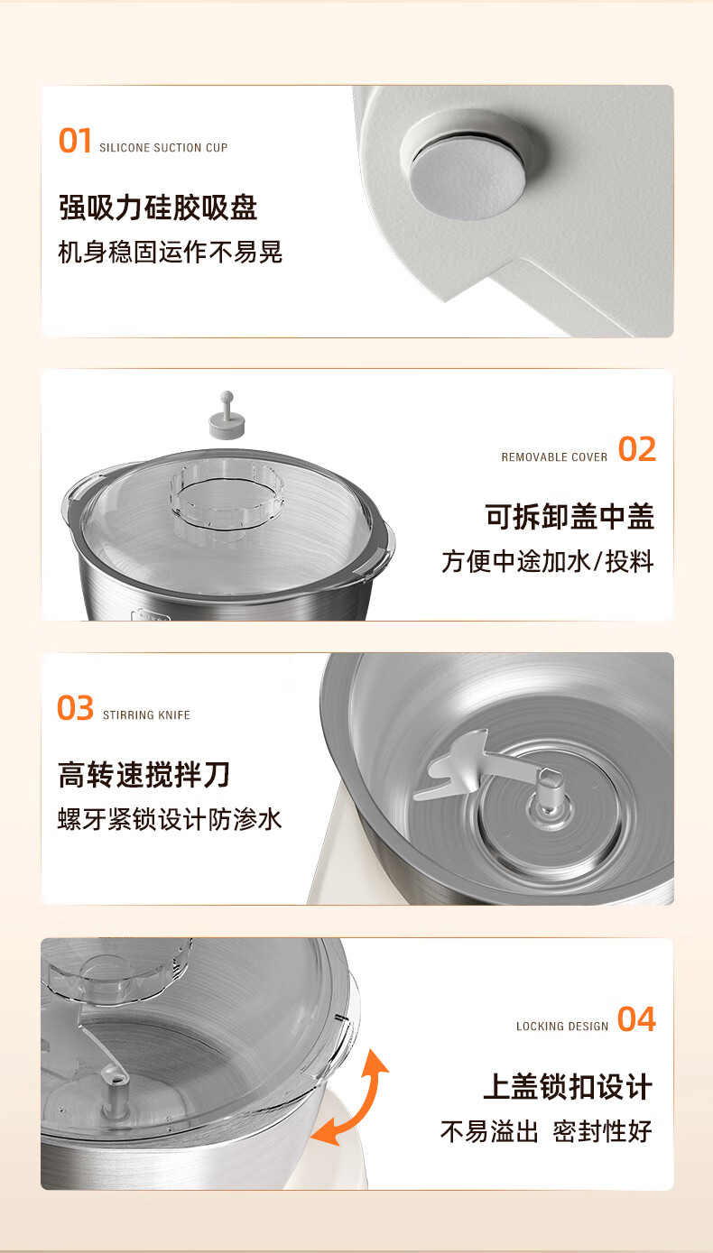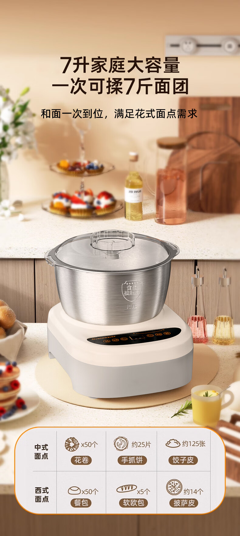 扬子和面机家用揉面机厨师机全自动搅面机多功能智能醒面发面机面包面粉搅拌机大容量活面机7升H-002