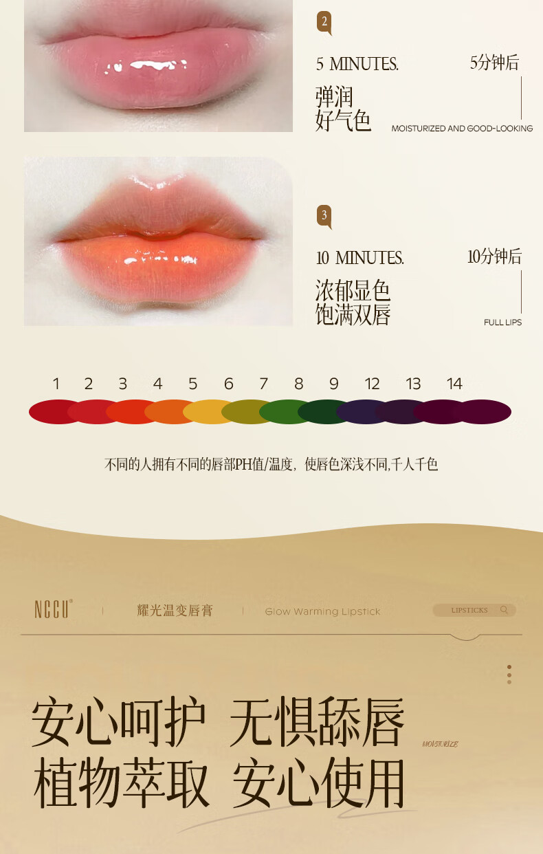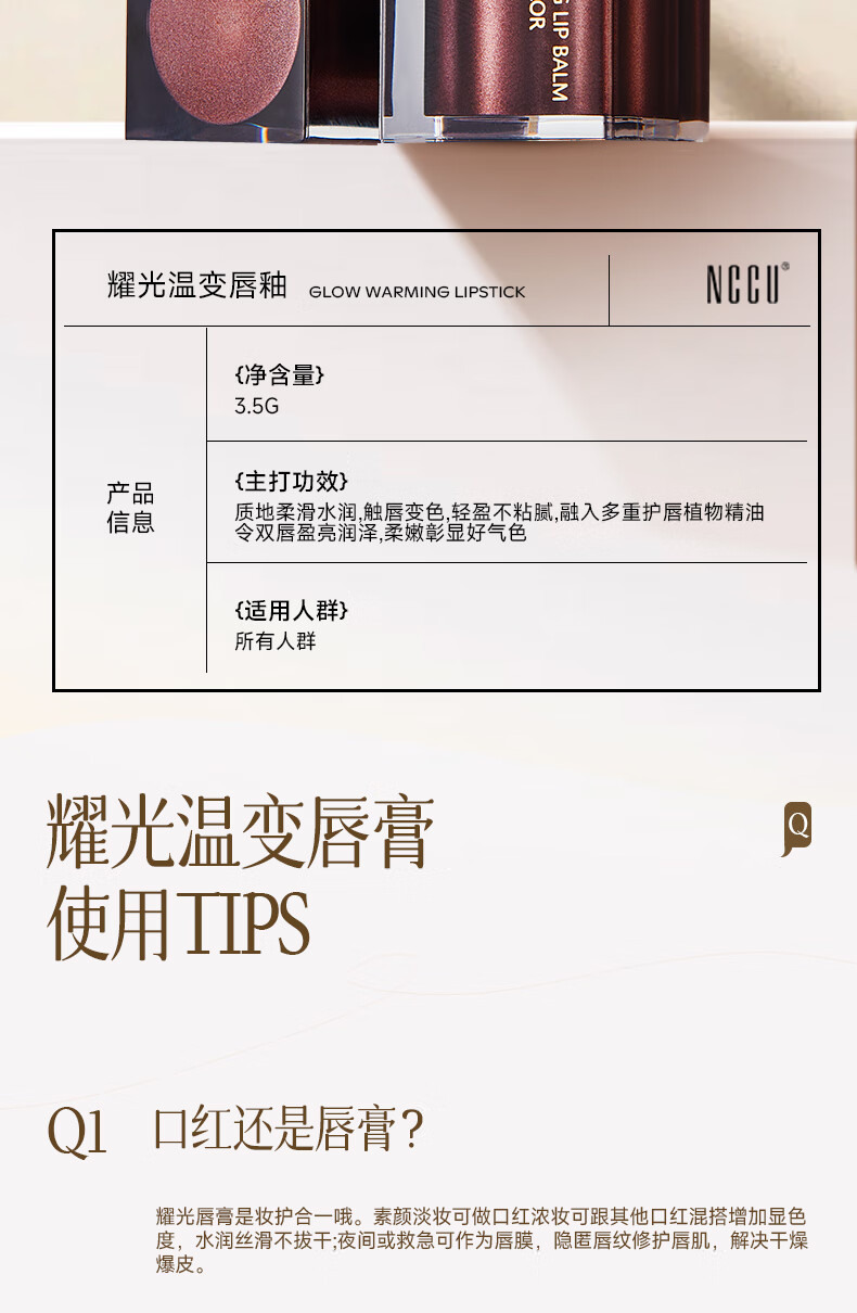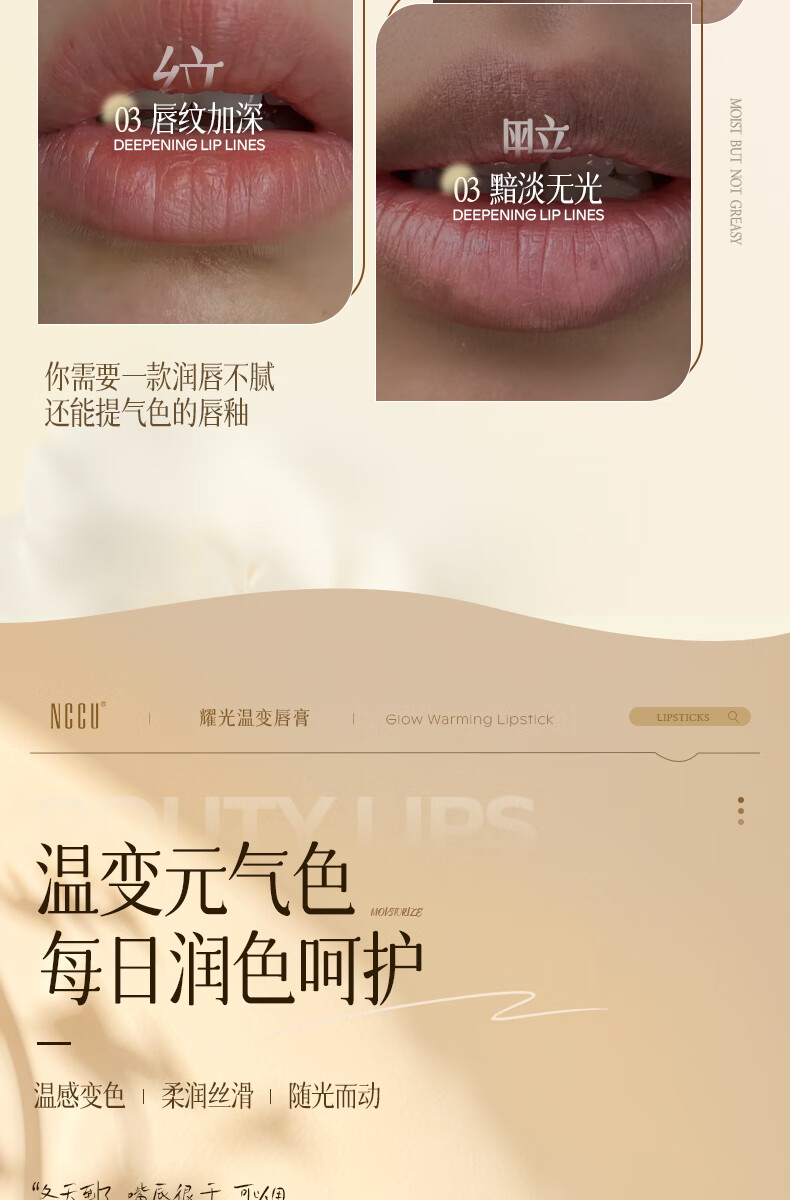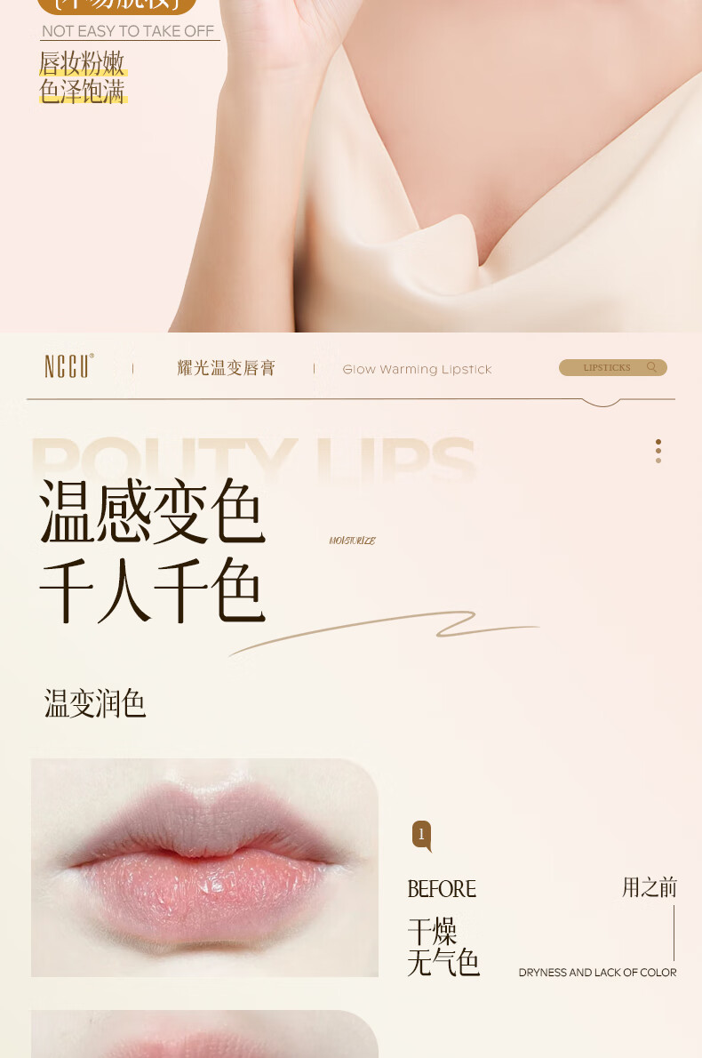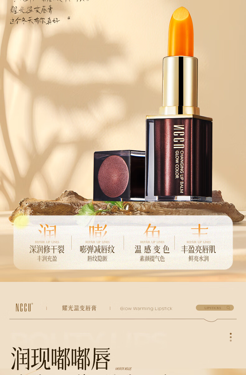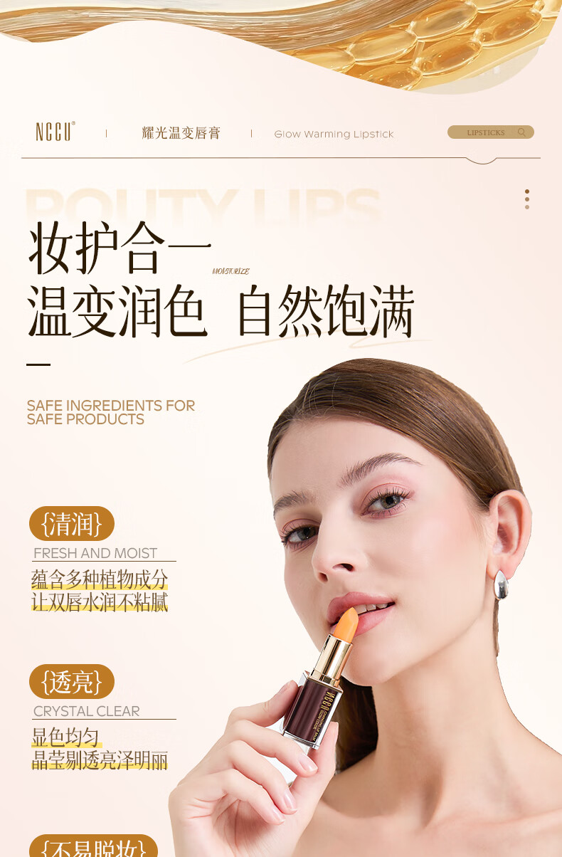 NCCU耀光变色唇膏口红滋润保湿补水防干裂隐匿唇纹打底不脱色3.5g