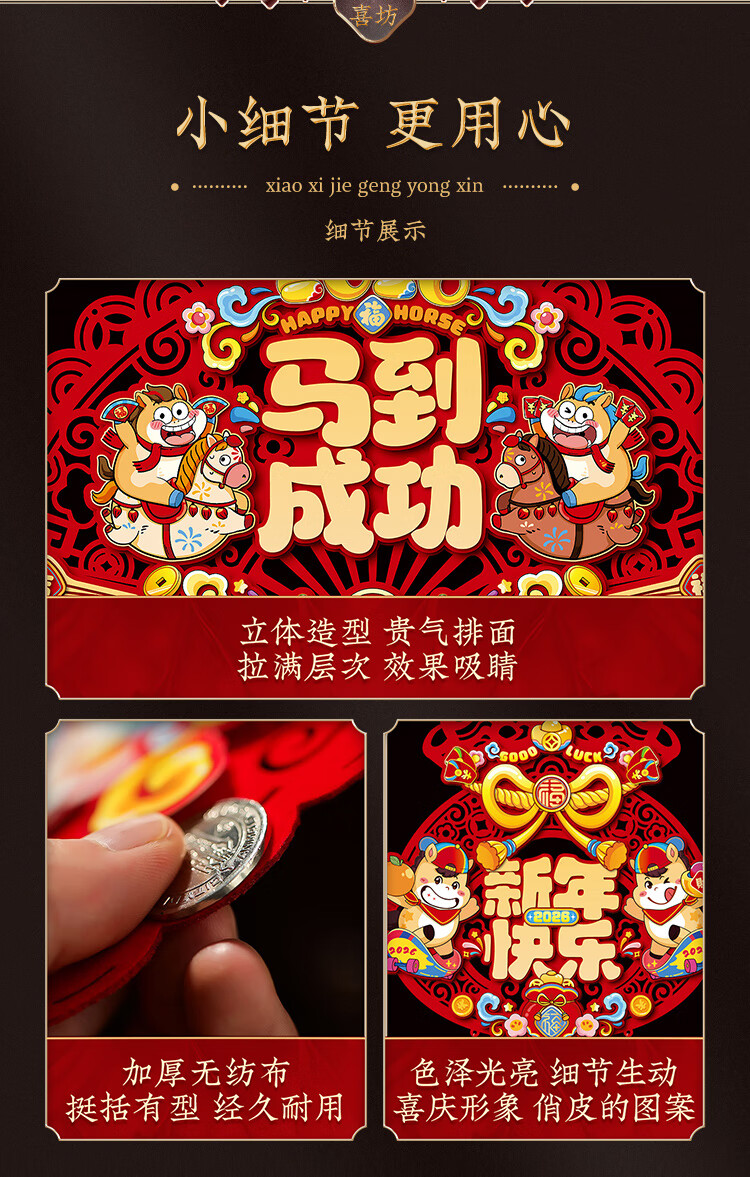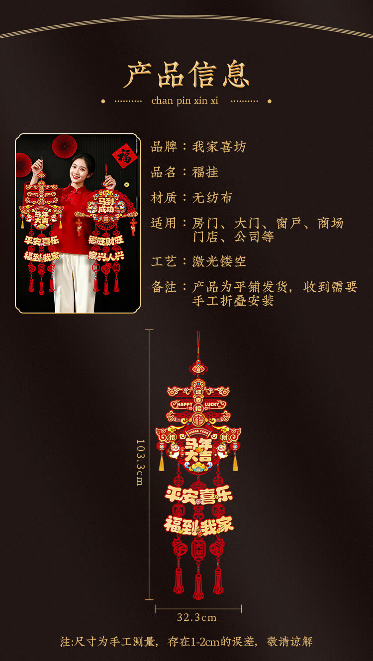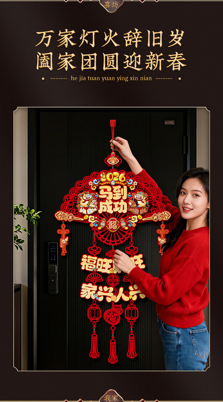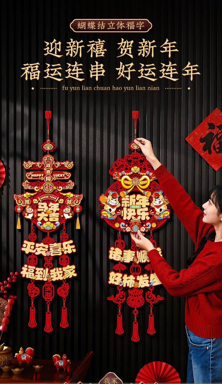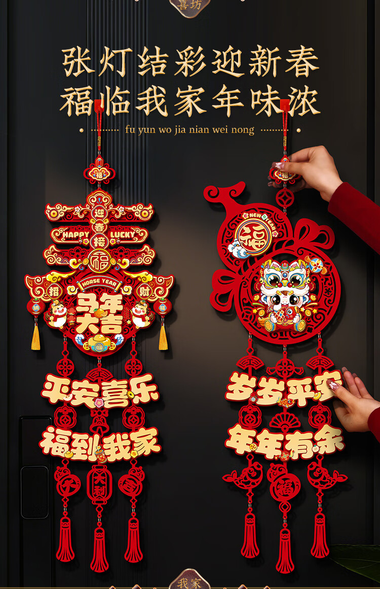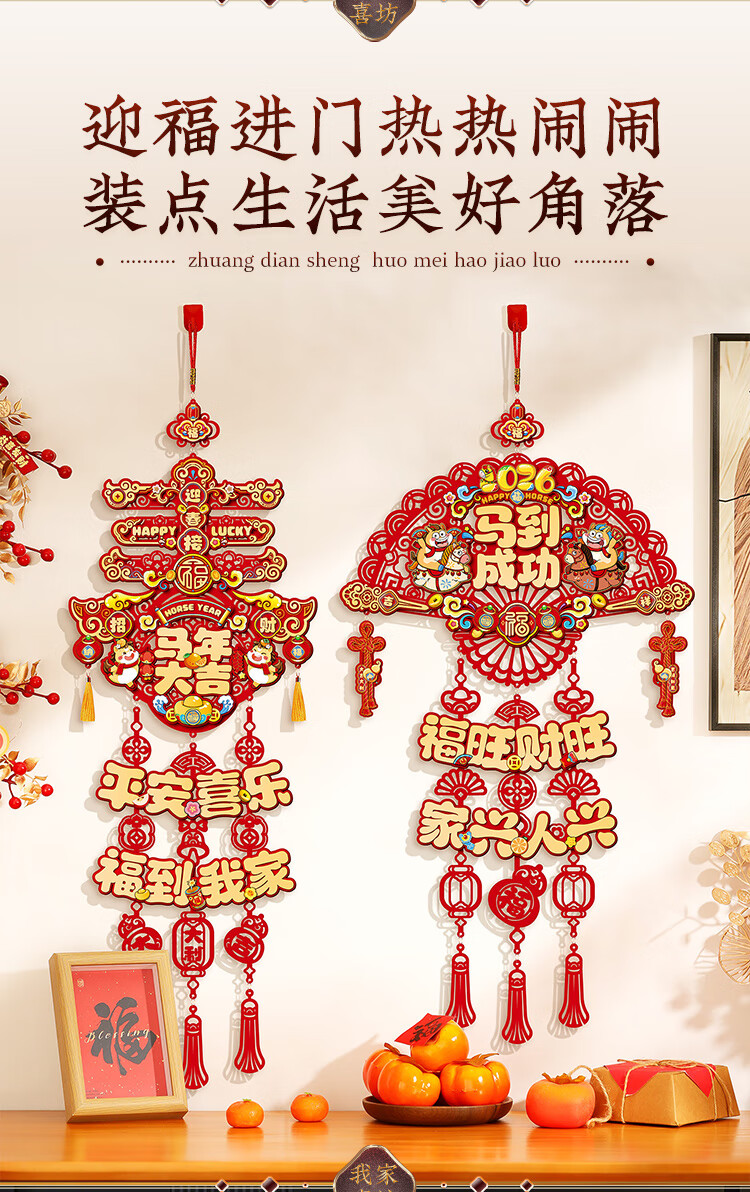 新年新款马年福字挂件饰品春节客厅入户大门过年家用生肖挂饰 三联挂【马年大吉款】