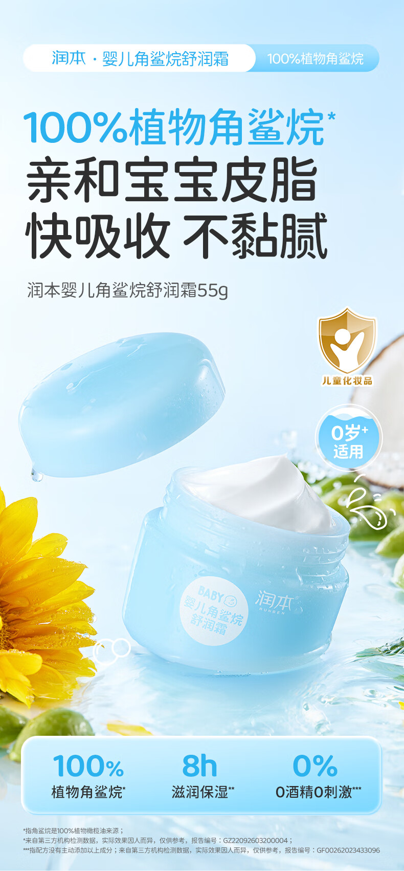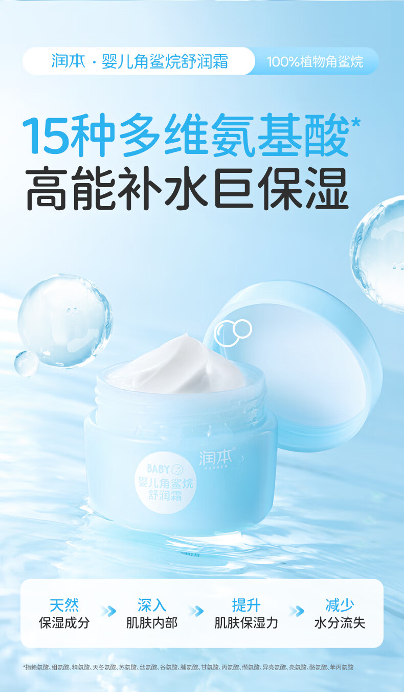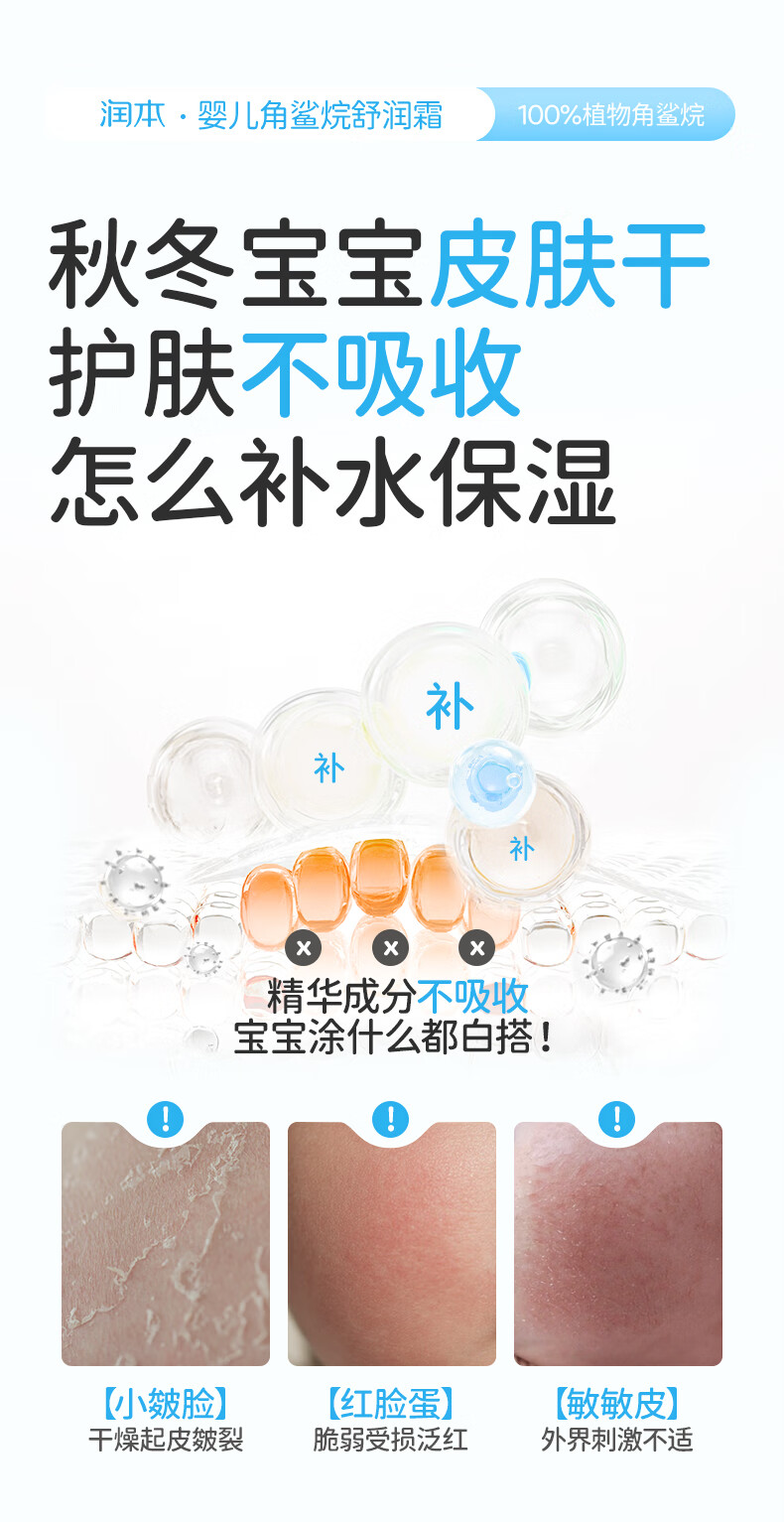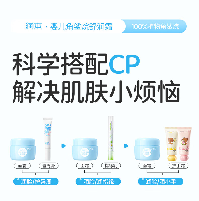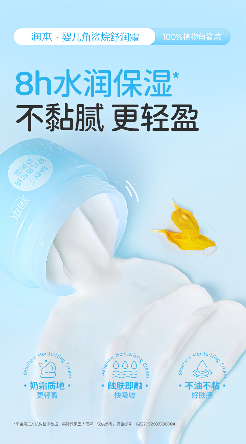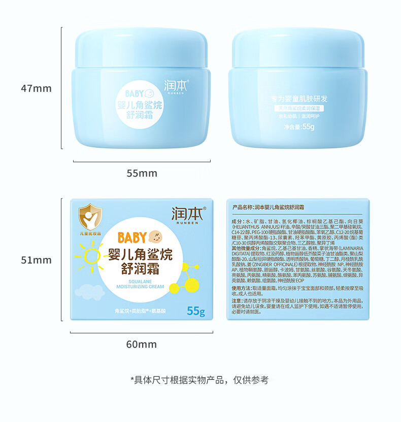 润本儿童面霜角鲨烷婴儿滋润补水保湿霜宝宝润肤霜秋冬季润肤乳 角鲨烷面霜 55g 2瓶 【2瓶更划算】