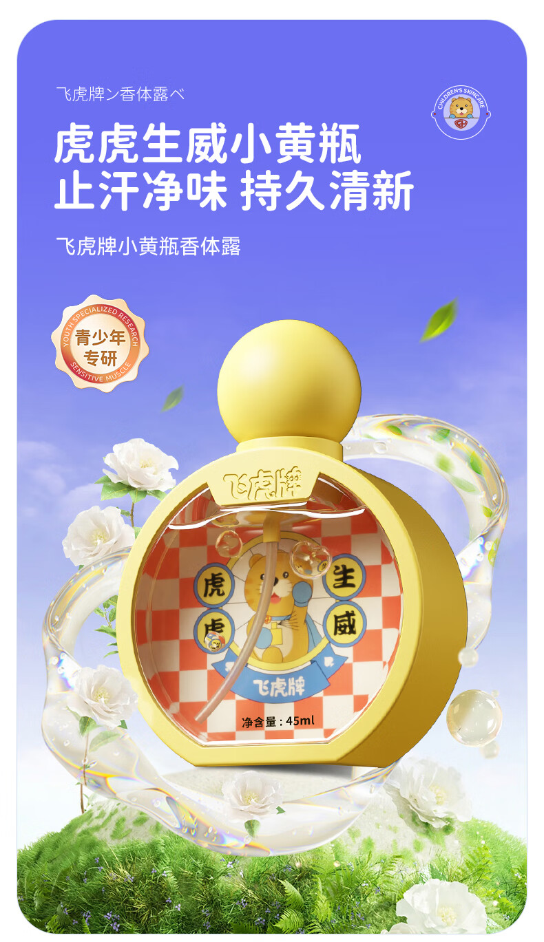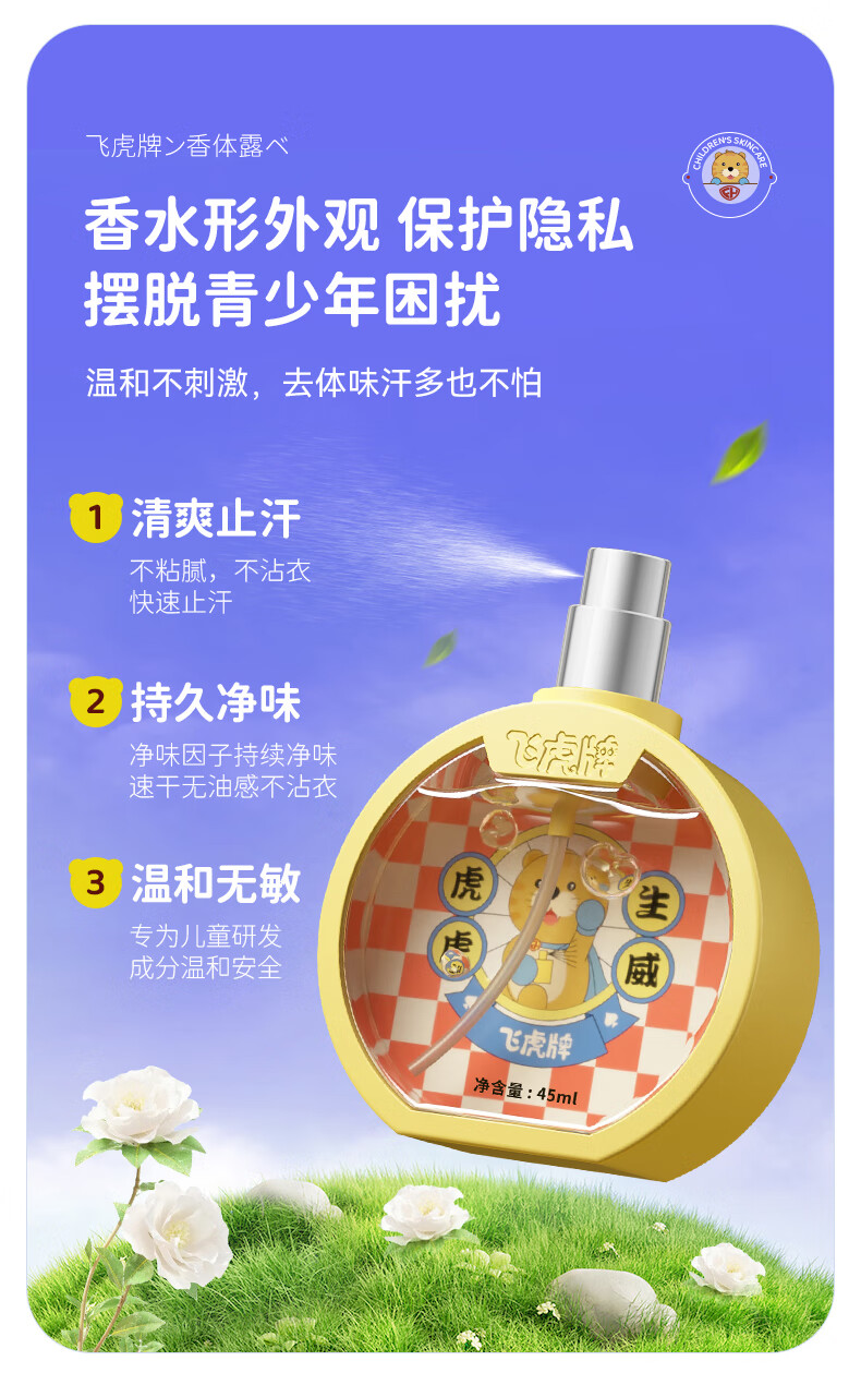 飞虎牌小黄瓶香体露腋下留香喷雾净味狐臭腋臭专用止汗露男女士45ml