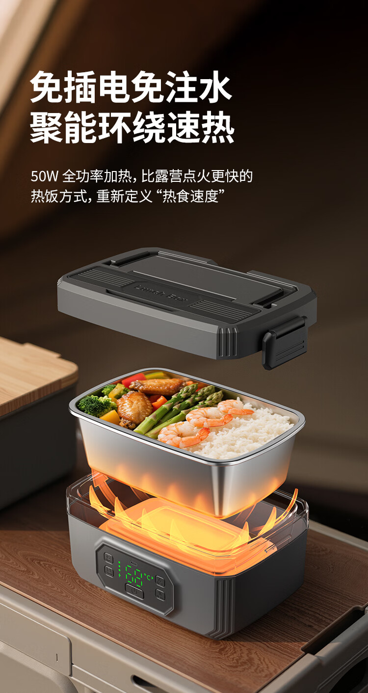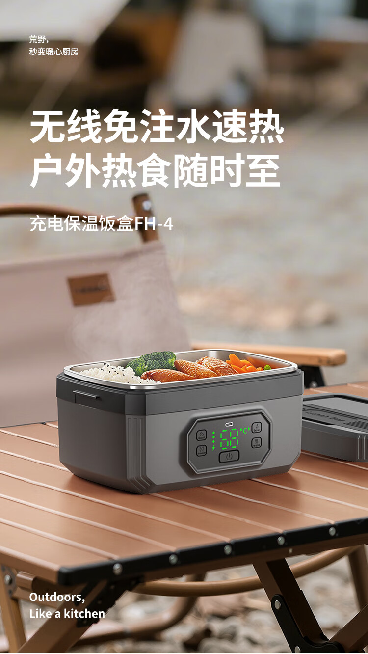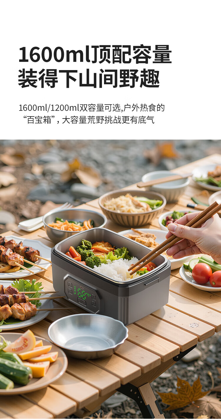 GBTW无线电热饭盒学生上班便携不插电加热免注水充电大容量户外保温自热饭盒 1.2L 【21000毫安+预约定时+6档保温】