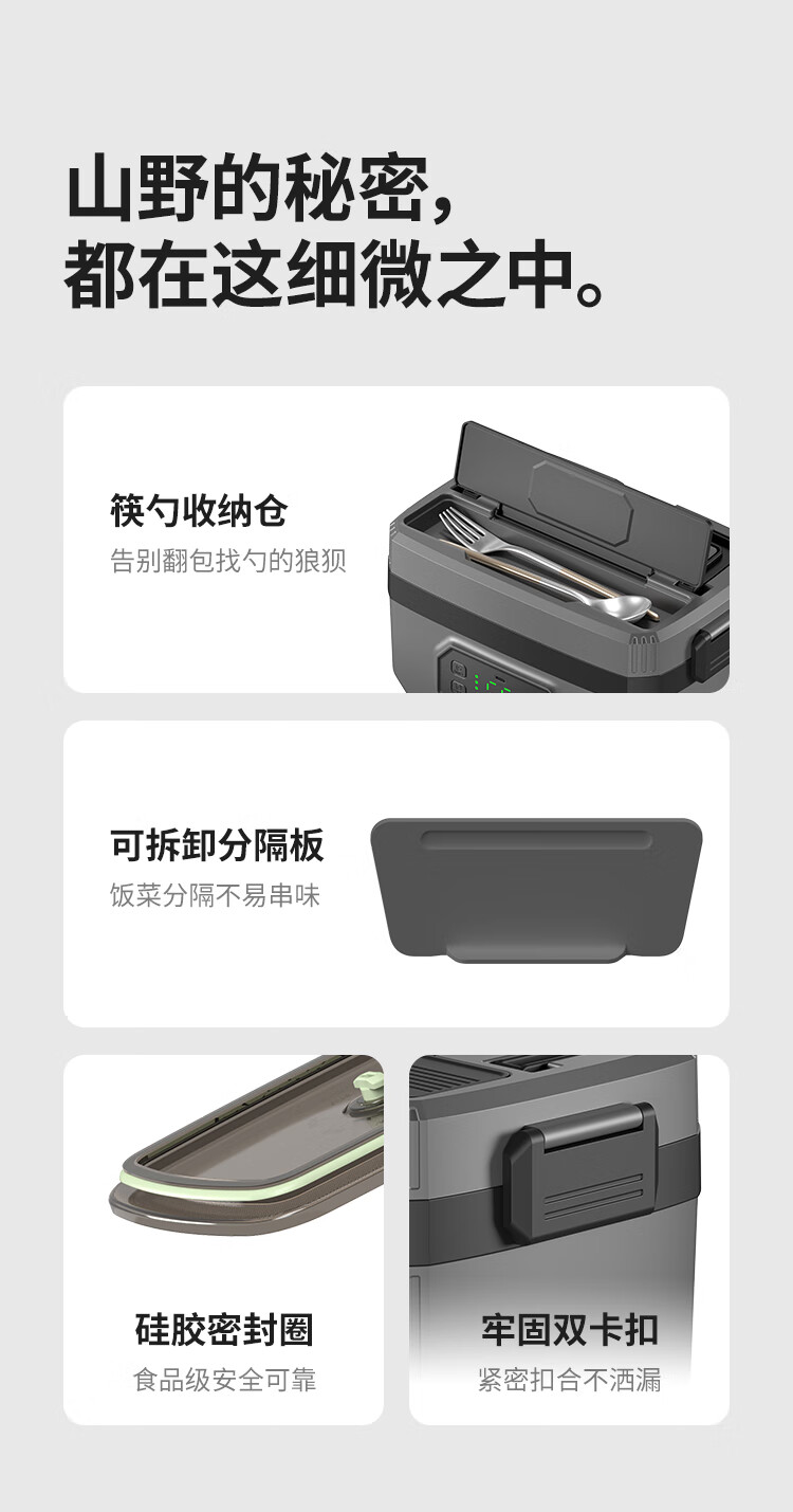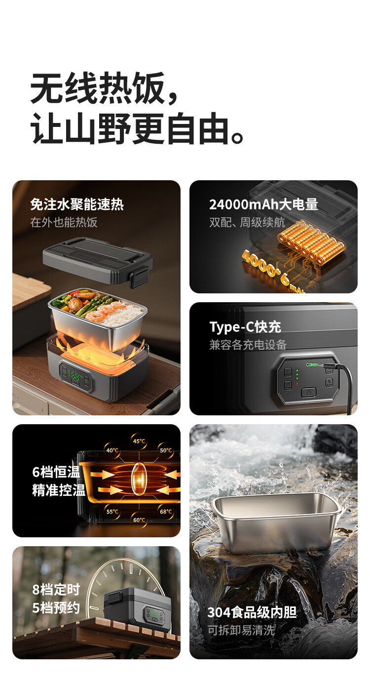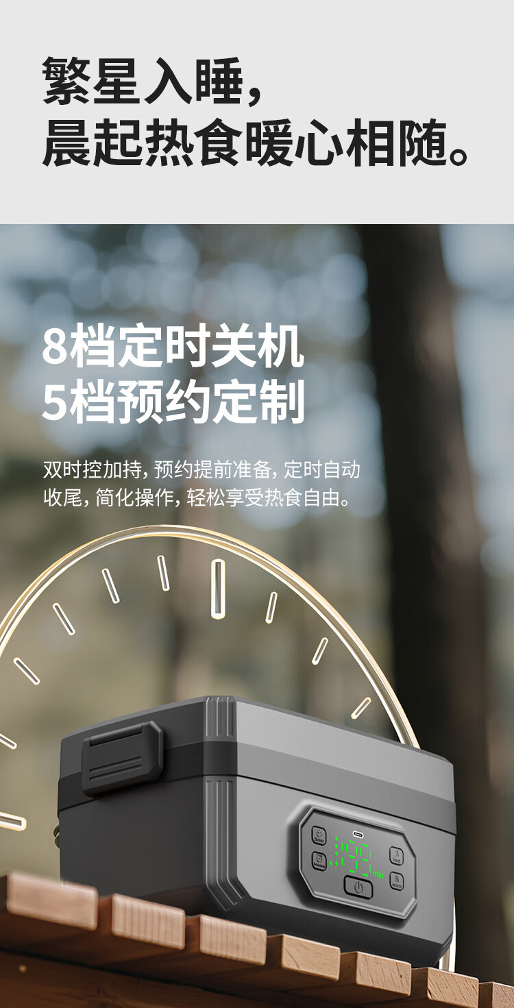 GBTW无线电热饭盒学生上班便携不插电加热免注水充电大容量户外保温自热饭盒 1.2L 【21000毫安+预约定时+6档保温】