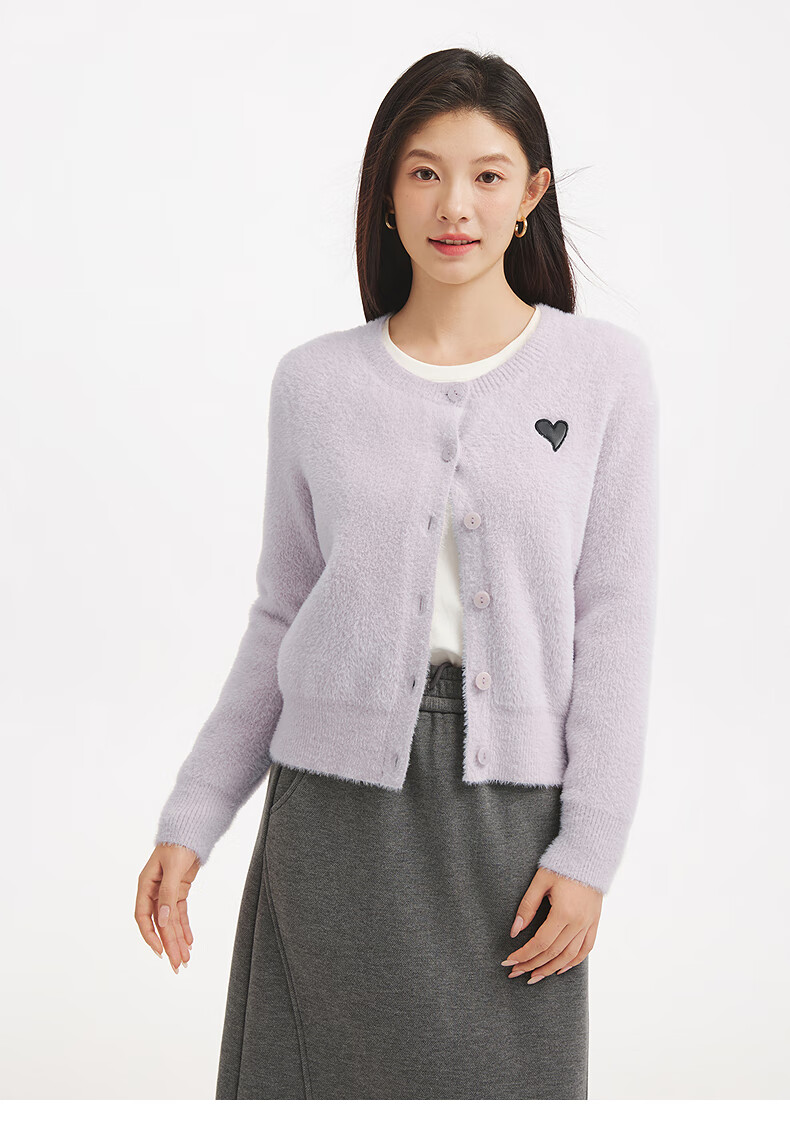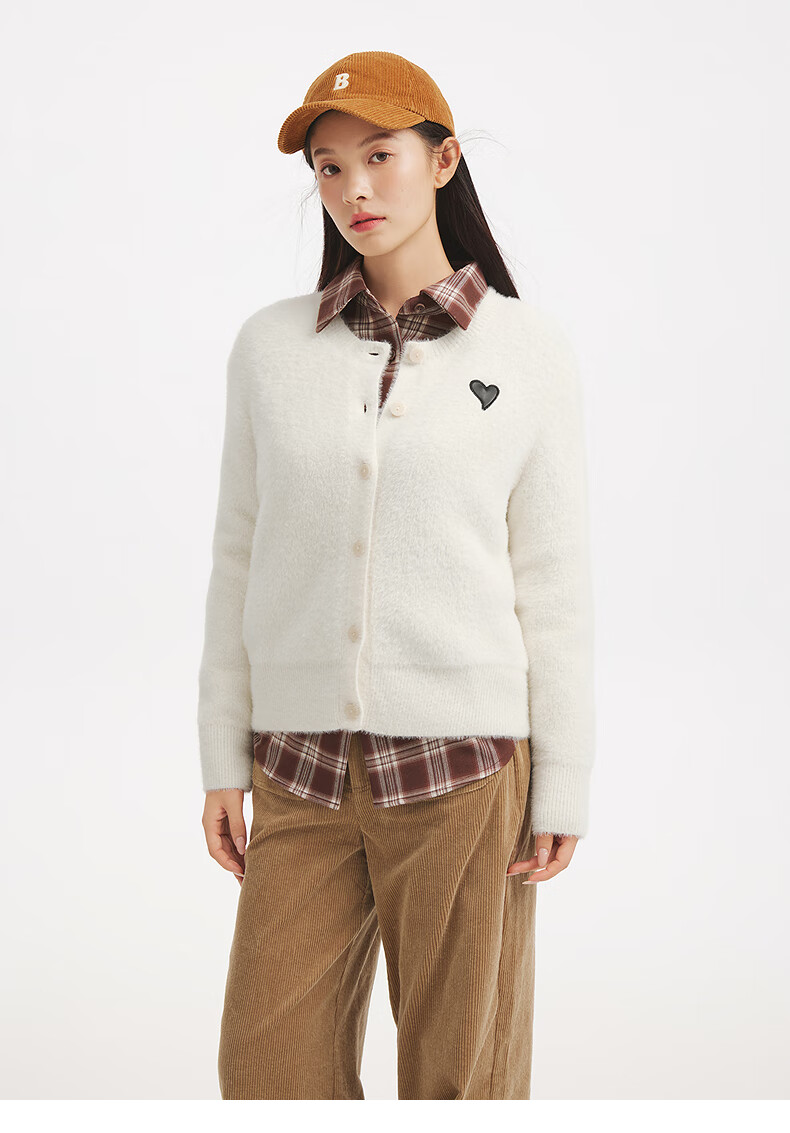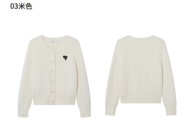 热风(Hotwind)女士毛绒开衫毛衣打底衫2025年冬季新款爱心绒感针织衫内搭 03米色 S