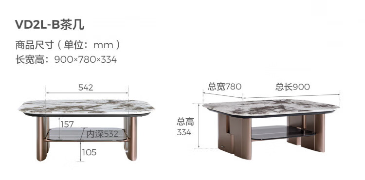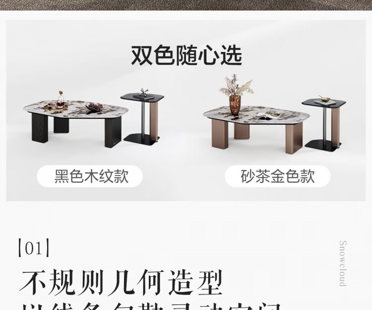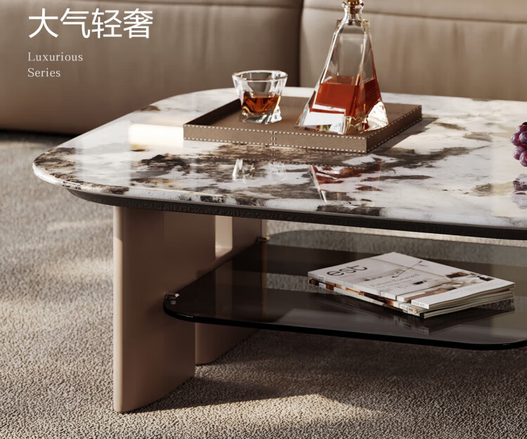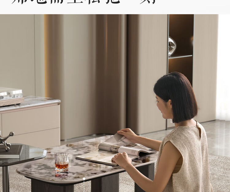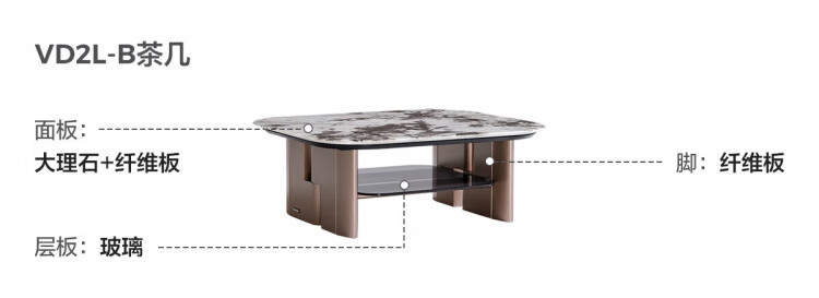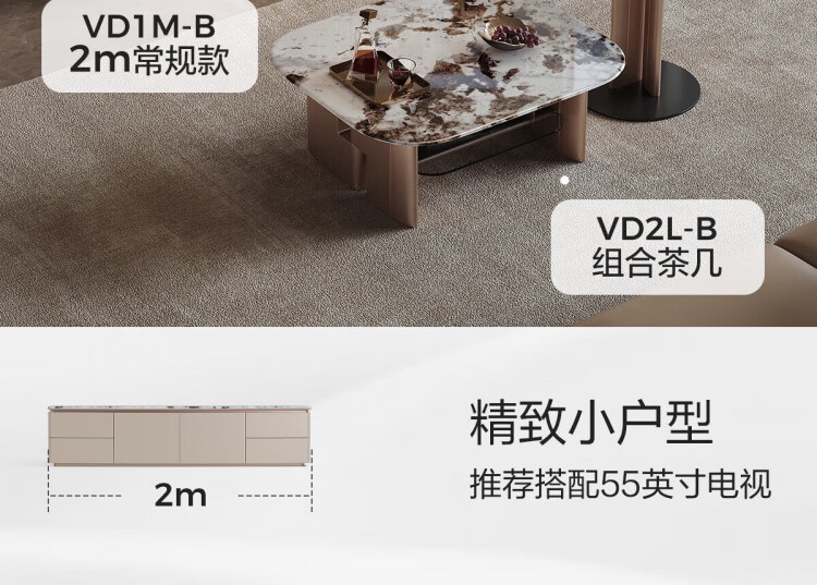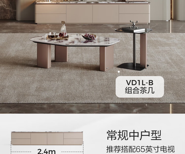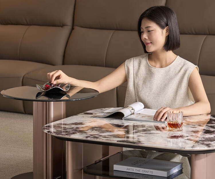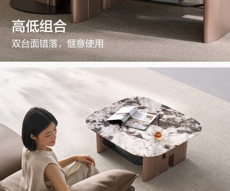 林氏家居大理石落地电视柜2025新款客厅家用感茶几轻臻奢系列VD1M 【组合】茶几+边几
