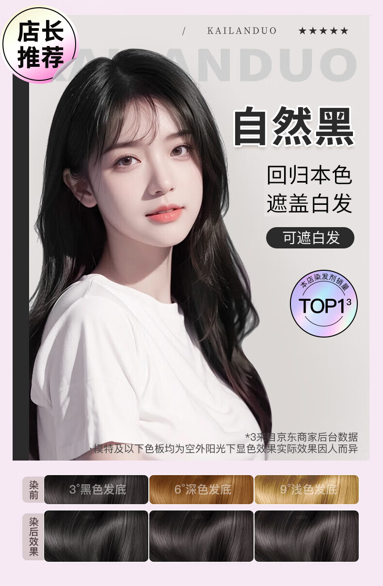 恺岚朵一梳黑染发剂染发梳染发膏纯黑植物一洗黑男女士通用自己在家染发 自然黑【不黑头皮】200ml/瓶